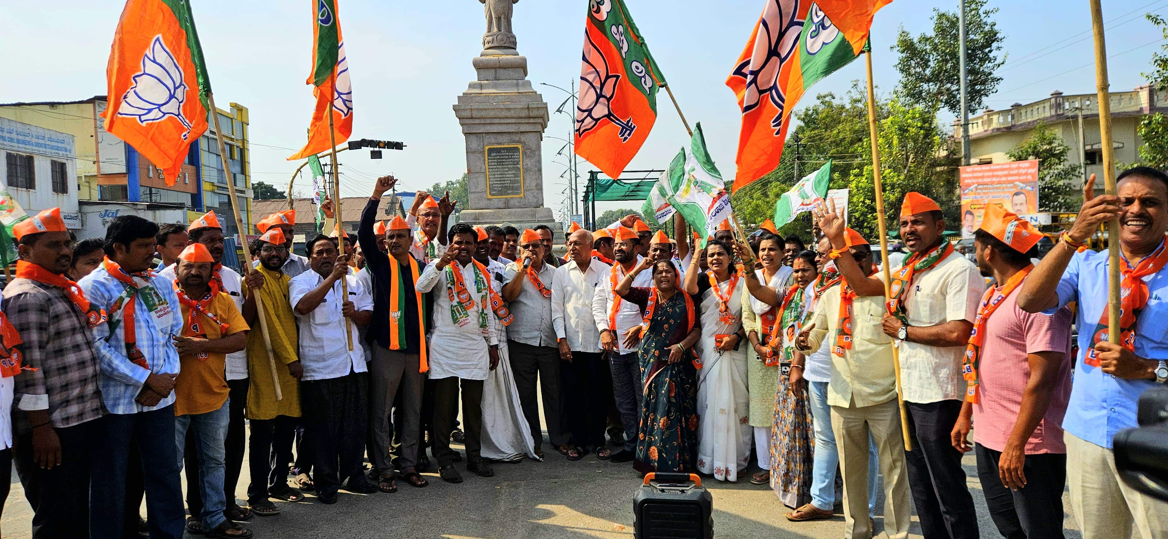 ಫಲಿತಾಂಶಗಳು ಹೊರಬಿದ್ದ ನಂತರ ಜೆಡಿಎಸ್ ಹಾಗೂ ಬಿಜೆಪಿ ನಾಯಕರು ಅಶೋಕ ವೃತ್ತದಲ್ಲಿ ಪಟಾಕಿ ಸಿಡಿಸಿ ಸಿಹಿ ಹಂಚಿದರು.ಕಾಂಗ್ರೆಸ್ ಪಕ್ಷವನ್ನು ಬಿಹಾರದ ಮತದಾರರು ಸಂಪೂರ್ಣ ತಿರಸ್ಕರಿಸಿದ್ದಾರೆ. ಇದು ಕರ್ನಾಟಕದಲ್ಲಿ ಆಡಳಿತದಲ್ಲಿರುವ ಕಾಂಗ್ರೆಸ್ ಪಕ್ಷಕ್ಕೆ ಎಚ್ಚರಿಕೆಯ ಗಂಟೆ ಎನ್ನುವ ಘೋಷಣೆ ಕೂಗಲಾಯಿತು.