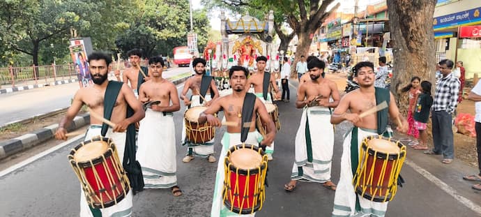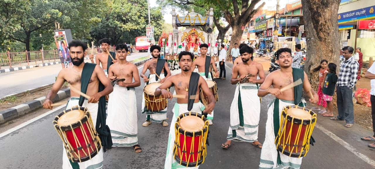 ಆಕರ್ಷಿಸಿದ ಕಾಂತಾರ ಚಿತ್ರದ ಪಂಜುರ್ಲಿ ದೈವ, ವರ್ಣರಂಜಿತ ವಿಶೇಷ ರಥದಲ್ಲಿ ರಾರಾಜಿಸಿದ ನಾಡದೇವತೆ, ಬೆಳ್ಳಿ ರಥದಲ್ಲಿ ಮಹಾರಾಜನ ದರ್ಬಾರ್, ಅಪರೂಪವಾಗಿ ಕಂಡುಬಂದ ನಾಗರಹೊಳೆ ಕಾಡು ಜನರು ಜೊತೆಗೆ ವಿಭಿನ್ನ, ವೈಶಿಷ್ಟ್ಯಪೂರ್ಣ ಜಾನಪದ ಕಲಾತಂಡಗಳೊಂದಿಗೆ ನಡೆದ ಮಂಡ್ಯ ದಸರಾ ಮೆರವಣಿಗೆ ವಿಜಯದಶಮಿಗೆ ಮೆರುಗು ನೀಡಿತ್ತು.ಕಳೆದ ಏಳು ವರ್ಷಗಳಿಂದ ಮಂಡ್ಯ ಯೂತ್ ಗ್ರೂಪ್ ಹಾಗೂ ಅನಿಲ್ ಆನಂದ್ ಡ್ರೀಮ್ ವರ್ಕ್ ಸಹಯೋಗದೊಂದಿಗೆ ಸಾಂಪ್ರದಾಯಿಕ ಮಂಡ್ಯ ದಸರಾ ಮುನ್ನಡೆದುಕೊಂಡು ಬಂದಿದೆ. ಅದೇ ರೀತಿ ಈ ಬಾರಿಯೂ ನಗರದ ಶ್ರೀ ಕಾಳಿಕಾಂಬ ದೇವಾಲಯದ ಆವರಣದಲ್ಲಿರುವ ಗಜೇಂದ್ರಮೋಕ್ಷ ಕೊಳದ ಬಳಿ ಮಧ್ಯಾಹ್ನ 3.50ಕ್ಕೆ ಸಲ್ಲುವ ಕುಂಭ ಲಗ್ನದಲ್ಲಿ ಮಂಡ್ಯ ಯೂತ್ ಗ್ರೂಪ್ ಅಧ್ಯಕ್ಷ ಡಾ.ಅನಿಲ್ ಆನಂದ್ ಬನ್ನಿಮರಕ್ಕೆ ಪೂಜೆ ನೆರವೇರಿಸಿದರು.
