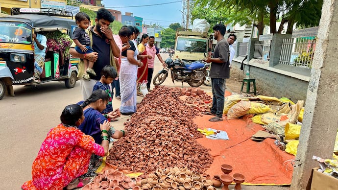 ಹೊಸಪೇಟೆ: ವಿಜಯನಗರ ಜಿಲ್ಲೆಯಾದ್ಯಂತ ಬೆಳಕಿನ ಹಬ್ಬ ದೀಪಾವಳಿ ಸಂಭ್ರಮ ಮನೆ ಮಾಡಿದ್ದು, ನಗರದ ಗಾಂಧಿ ವೃತ್ತದಲ್ಲಿ ವ್ಯಾಪಾರ, ವಹಿವಾಟು ಜೋರಾಗಿ ನಡೆದಿದೆ.ಪುನೀತ್ ರಾಜಕುಮಾರ ಜಿಲ್ಲಾ ಕ್ರೀಡಾಂಗಣದಲ್ಲಿ ಪಟಾಕಿ ವ್ಯಾಪಾರವೂ ಜೋರಾಗಿ ನಡೆದಿದೆ. ಮಳೆಯನ್ನು ಲೆಕ್ಕಿಸದೇ ಜನರು ಮುಗಿಬಿದ್ದು ಪಟಾಕಿಗಳನ್ನು ಖರೀದಿಸಿ; ಹಬ್ಬಕ್ಕೆ ಕಳೆ ತಂದರು.