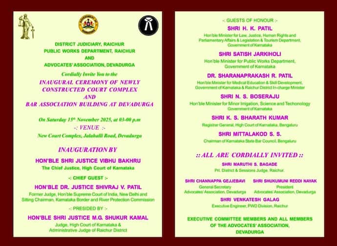 ಆಹ್ವಾನ ಪತ್ರಿಕೆಯಲ್ಲಿ ಸಚಿವರಾದ ಎಚ್.ಕೆ,ಪಾಟೀಲ್, ಸತೀಶ ಜಾರಕಿಹೊಳಿ, ಡಾ.ಶರಣಪ್ರಕಾಶ ಪಾಟೀಲ್, ಎನ್.ಎಸ್.ಬೋಸರಾಜು ಅವರ ಹೆಸರನ್ನು ಹಾಕಲಾಗಿದೆ ಇಷ್ಟೇ ಅಲ್ಲದೇ ಹೈಕೋರ್ಟ್ ನ್ಯಾಯಾಧೀಶರು, ರಾಜ್ಯ ಬಾರ್ ಕೌನ್ಸಿಲ್ ಮುಖ್ಯಸ್ಥರು, ಸುಪ್ರೀಂ ಕೋರ್ಟ್ ನಿವೃತ್ತ ನ್ಯಾಯಾಧೀಶರ ಹೆಸರುಗಳ ಜೊತೆಗೆ ಲೋಕೋಪಯೋಗಿ ಇಲಾಖೆಯ ಕಾರ್ಯನಿರ್ವಾಹಕ ಎಂಜಿನಿಯರ್ ಆದ ವೆಂಕಟೇಶ ಗಲಗ, ದೇವದುರ್ಗ ವಕೀಲರ ಸಂಘದ ಅಧ್ಯಕ್ಷರು, ಉಳಿದ ಪದಾಧಿಕಾರಿಗಳ ಹೆಸರನ್ನು ಹಾಕಿದ್ದಾರೆ. ಆದರೆ ಸ್ಥಳೀಯ ಶಾಸಕಿಯ ಹೆಸರನ್ನು ಎಗರಿಸಿದ್ದು ಹಲವರ ಕೆಂಗಣ್ಣಿಗೆ ಗುರಿಯಾಗಿದೆ.ವಿಧಾನಸಭಾ ಸಾರ್ವತ್ರಿಕ ಚುನಾವಣೆ ಸಮಯದಲ್ಲಿ ನೀತಿ ಸಂಹಿತೆ ಉಲ್ಲಂಘನೆಯ ಮಾಡಿದಕ್ಕೆ ಶಾಸಕಿ ಕರೆಮ್ಮ ಜಿ.ನಾಯಕ ಅವರ ಮೇಲೆ ಪ್ರಕರಣಗಳು ದಾಖಲಾಗಿದ್ದರಿಂದ, ಆಹ್ವಾನ ಪತ್ರಿಕೆಯಲ್ಲಿ ಅವರ ಹೆಸರನ್ನು ಕೈಬಿಡಲಾಗಿದೆ ಎಂದು ಹೇಳಲಾಗುತ್ತಿದೆ. ಆ ಲೆಕ್ಕದ ಪ್ರಕಾರ ಆಹ್ವಾನ ಪತ್ರಿಕೆಯಲ್ಲಿ ಹೆಸರಿರುವ ಸಚಿವರ ಮೇಲೂ ಕೇಸ್ಗಳಿವೆ ಆದರೆ ಅವರುಗಳ ಹೆಸರನ್ಯಾಕೆ ಹಾಕಲಾಗಿದೆ ಎನ್ನುವುದು ಶಾಸಕಿ ಹಾಗೂ ಅವರ ಬೆಂಬಲಿಗರು ಪ್ರಶ್ನಿಸುತ್ತಿದ್ದಾರೆ ? ಆಹ್ವಾನ ಪತ್ರಿಕೆಯಲ್ಲಿ ಕಟ್ಟಡ ನಿರ್ಮಿಸಿಕೊಟ್ಟ ಪಿಡಬ್ಲ್ಯೂಡಿ ಅಧಿಕಾರಿಯ ಹೆಸರನ್ನು ಸೇರಿಸಿದ್ದಾರೆ ಆದರೆ ಆಕ್ಷೇತ್ರವನ್ನು ಪ್ರತಿನಿಧಿಸುತ್ತಿರುವ ವಿಧಾನಸಭೆ ಸದಸ್ಯರನ್ನು ಪರಿಗಣಿಸದೇ ನಿರ್ಲಕ್ಷ್ಯ ವಹಿಸಿರುವುದು ಖಂಡನೀಯ ಸಂಗತಿಯಾಗಿದೆ ಎಂದು ಆಕ್ರೋಶ ವ್ಯಕ್ತಪಡಿಸುತ್ತಿದ್ದಾರೆ.
