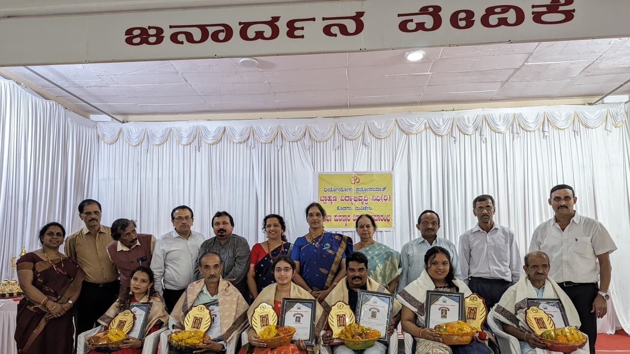 ಕನ್ನಡಪ್ರಭ ವಾರ್ತೆ ಮಡಿಕೇರಿಕೊಡಗು ಬ್ರಾಹ್ಮಣ ವಿದ್ಯಾಭಿವೃದ್ಧಿ ನಿಧಿಯ ವತಿಯಿಂದ ಆಯೋಜಿಸಲಾದ ವಿಪ್ರ ಕ್ರೀಡಾಕೂಟದ ಸಮಾರೋಪ ಸಮಾರಂಭ, ಸಾಧಕರಿಗೆ ಸನ್ಮಾನ ಹಾಗೂ ಕ್ರೀಡಾಕೂಟ ವಿಜೇತರಿಗೆ ಬಹುಮಾನ ವಿತರಣೆ ಕಾರ್ಯಕ್ರಮ ನಗರದ ಲಕ್ಷ್ಮೀ ನರಸಿಂಹ ಕಲ್ಯಾಣ ಮಂಟಪದಲ್ಲಿ ನಡೆಯಿತು.ಕೃಷಿ ಕ್ಷೇತ್ರದಲ್ಲಿನ ಸಾಧನೆಗೆ ಸಮುದಾಯದ ರವಿಶಂಕರ್ ಬಿ.ಪಿ., ಶಿಕ್ಷಣ ಕ್ಷೇತ್ರದಲ್ಲಿನ ಸಾಧನೆಗೆ ಸಹನಾ ದಿನೇಶ್ ಹಾಗೂ ರಕ್ಷಾ ಎನ್.ಕೆ., ಸಮಾಜ ಸೇವೆಗೆ ಮುರಳೀಧರ್ ಎಚ್.ಆರ್., ಧಾರ್ಮಿಕ ಕ್ಷೇತ್ರದಲ್ಲಿ ವೆಂಕಟರಮಣ ಭಟ್ ಹಾಗೂ ಶಾಸ್ತ್ರೀಯ ನೃತ್ಯದಲ್ಲಿನ ಸಾಧನೆಗೆ ಪ್ರೇಕ್ಷ ಭಟ್ ಅವರನ್ನು ಸನ್ಮಾನಿಸಲಾಯಿತು. ಎನ್.ಸಿ.ಸಿ. ಪರವಾಗಿ ದೆಹಲಿಯಲ್ಲಿ ಗಣರಾಜ್ಯೋತ್ಸವ ಸಂದರ್ಭ ನಡೆದ ಪಥಸಂಚಲನದಲ್ಲಿ ಭಾಗವಹಿಸಿದ್ದ ರಘುವಂಶಿ ಸಿ.ಎಸ್. ಹಾಗೂ ಆಯುಷ್ ಎಂ.ಡಿ. ಅವರನ್ನು ಗೌರವಿಸಲಾಯಿತು.ಪ್ರತಿಭಾ ಪುರಸ್ಕಾರ: ಕಳೆದ ವರ್ಷ ಎಸ್.ಎಸ್.ಎಲ್.ಸಿ.ಯಲ್ಲಿ ಅತ್ಯಧಿಕ ಅಂಕ ಗಳಿಸಿದ ಸಮುದಾಯದ ವಿದ್ಯಾರ್ಥಿಗಳಾದ ಸಾಕ್ಷಿ, ಪ್ರಣಮ್ಯ ಕಿರಣ್, ಶ್ರೀಲಕ್ಷ್ಮೀ, ಆಂಚಲ್ ಜೋಶಿ, ನಿರೂಪಮ ಹಾಗೂ ಪದವಿ ಶಿಕ್ಷಣದಲ್ಲಿ ಹೆಚ್ಚು ಅಂಕ ಗಳಿಸಿದ ಅಪೂರ್ವ, ಸುಪ್ರಿಯಾ ಹಾಗೂ ಸುಪ್ರಭಾ ಅವರಿಗೆ ಪ್ರತಿಭಾ ಪುರಸ್ಕಾರ ನೀಡಲಾಯಿತು.ವಿಜೇತರಿಗೆ ಬಹುಮಾನ: ವಿಪ್ರ ಕ್ರೀಡಾಕೂಟದ ಅಂಗವಾಗಿ ಹಲವು ದಿನಗಳಿಂದ ಸಮುದಾಯದ ಬಾಂಧವರಿಗೆ ಬ್ಯಾಡ್ಮಿಂಟನ್, ಟೇಬಲ್ ಟೆನ್ನಿಸ್, ಕ್ರಿಕೆಟ್, ಹಗ್ಗಜಗ್ಗಾಟ ಸೇರಿದಂತೆ ವಿವಿಧ ಒಳಾಂಗಣ ಕ್ರೀಡೆಗಳನ್ನು ಆಯೋಜಿಸಲಾಗಿತ್ತು. ಇದರಲ್ಲಿ ವಿಜೇತರಾದವರಿಗೆ ಬಹುಮಾನ ವಿತರಣೆ ಮಾಡಲಾಯಿತು.ಜಿಲ್ಲಾಮಟ್ಟದ ಮಹಿಳೆಯರ ಬ್ಯಾಡ್ಮಿಂಟನ್ನಲ್ಲಿ ಪ್ರಥಮ ಸ್ಥಾನ ಗಳಿಸಿದ ಈಶ್ವರಿ ಉದಯಶಂಕರ್ ಪ್ರಥಮ ಹಾಗೂ ಸೌಮ್ಯ ಸಂತೋಷ್ ಭಟ್ ದ್ವಿತೀಯ ಬಹುಮಾನದ ಟ್ರೋಫಿಗಳನ್ನು ತಮ್ಮದಾಗಿಸಿಕೊಂಡರು. ಮಕ್ಕಳ ವಿಭಾಗದಲ್ಲಿ ಅವನೀಶ್ ಕೃಷ್ಣ ಪ್ರಥಮ ಹಾಗೂ ಶಿಶಿರ್ ದ್ವಿತೀಯ ಸ್ಥಾನ ಗಳಿಸಿ ಟ್ರೋಫಿ ಪಡೆದುಕೊಂಡರು. ಬಾಲಕಿಯರ ವಿಭಾಗದಲ್ಲಿ ಸುಮೇಧ ಪ್ರಥಮ ಹಾಗೂ ಅನುಕ್ತ ದ್ವಿತೀಯ ಸ್ಥಾನ ಗಳಿಸಿದರು. ಪುರುಷರ ವಿಭಾಗದಲ್ಲಿ ಶ್ರೀನಿವಾಸ್ ಕುಶಾಲನಗರ ಪ್ರಥಮ ಹಾಗೂ ಶಶಿಕಾಂತ್ ದ್ವಿತೀಯ ಬಹುಮಾನ ಪಡೆದರು. ಪುರುಷರ ಡಬಲ್ಸ್ನಲ್ಲಿ ಅಚಲ್ ಮಯ್ಯ ಹಾಗೂ ಪ್ರಶಾಂತ್ ಮಯ್ಯ ಜೋಡಿ ಪ್ರಥಮ, ಡಾ.ರಾಘವನ್ ಹಾಗೂ ಎ.ವಿ. ಮಂಜುನಾಥ್ ಜೋಡಿ ದ್ವಿತೀಯ ಸ್ಥಾನ ಗಳಿಸಿತು. ಮಹಿಳೆಯರ ಡಬಲ್ಸ್ ವಿಭಾಗದಲ್ಲಿ ಸುಮನಾ ಶ್ರೀ ಹರಿ-ಸೌಮ್ಯ ಸಂತೋಷ್ ಭಟ್ ಜೋಡಿ ಪ್ರಥಮ ಹಾಗೂ ಸುಧಾ ಶಂಕರ್ ಪ್ರಸಾದ್ - ಈಶ್ವರಿ ಉದಯಶಂಕರ್ ಜೋಡಿ ದ್ವಿತೀಯ ಸ್ಥಾನ ಗಳಿಸಿದರು. ಟೇಬಲ್ ಟೆನ್ನಿಸ್ನಲ್ಲಿ ವಿಜೇತರಾದ ಹರಿಶಂಕರ್ ಹಾಗೂ ಸುಬ್ರಹ್ಮಣ್ಯ ಕೆ.ಪಿ. ಪ್ರಥಮ, ದ್ವಿತೀಯ ಬಹುಮಾನಗಳನ್ನು ಪಡೆದುಕೊಂಡರು.ಜಿಲ್ಲಾ ಮಟ್ಟದ ಪುರುಷರ ಕೇರಂನಲ್ಲಿ ಸಂತೋಷ್ ಕಾಲೂರು ಪ್ರಥಮ, ಶ್ಯಾಮ್ ಸುಂದರ್ ದ್ವಿತೀಯ ಬಹುಮಾನ ಗಳಿಸಿದರು.ಚೆಸ್ನಲ್ಲಿ ವಿಷ್ಣು ಶಾಸ್ತ್ರಿ ಪ್ರಥಮ, ಕಾವ್ಯಶ್ರೀ ದ್ವಿತೀಯ ಸ್ಥಾನ ಗಳಿಸಿದರು. ಮಹಿಳೆಯರಿಗೆ ಆಯೋಜಿಸಲಾದ ಮಡಿಕೆ ಒಡೆಯುವ ಸ್ಪರ್ಧೆಯಲ್ಲಿ ಶೈಲಜ ಪ್ರಥಮ ಹಾಗೂ ಚಂದ್ರಾವತಿ ಶ್ರೀನಿವಾಸ್ ದ್ವಿತೀಯ ಸ್ಥಾನ ಗಳಿಸಿದರು. ಪುರುಷರಿಗೆ ಆಯೋಜಿಸಲಾದ ಮಡಿಕೆ ಒಡೆಯುವ ಸ್ಪರ್ಧೆಯಲ್ಲಿ ಜಗದೀಶ್ ಬಿ.ಕೆ. ಪ್ರಥಮ ಹಾಗೂ ಸುದೀಪ್ ದ್ವಿತೀಯ ಸ್ಥಾನ ಗಳಿಸಿದರು. ಮಹಿಳೆಯರಿಗೆ ಆಯೋಜನೆಗೊಂಡಿದ್ದ ಸಂಗೀತ