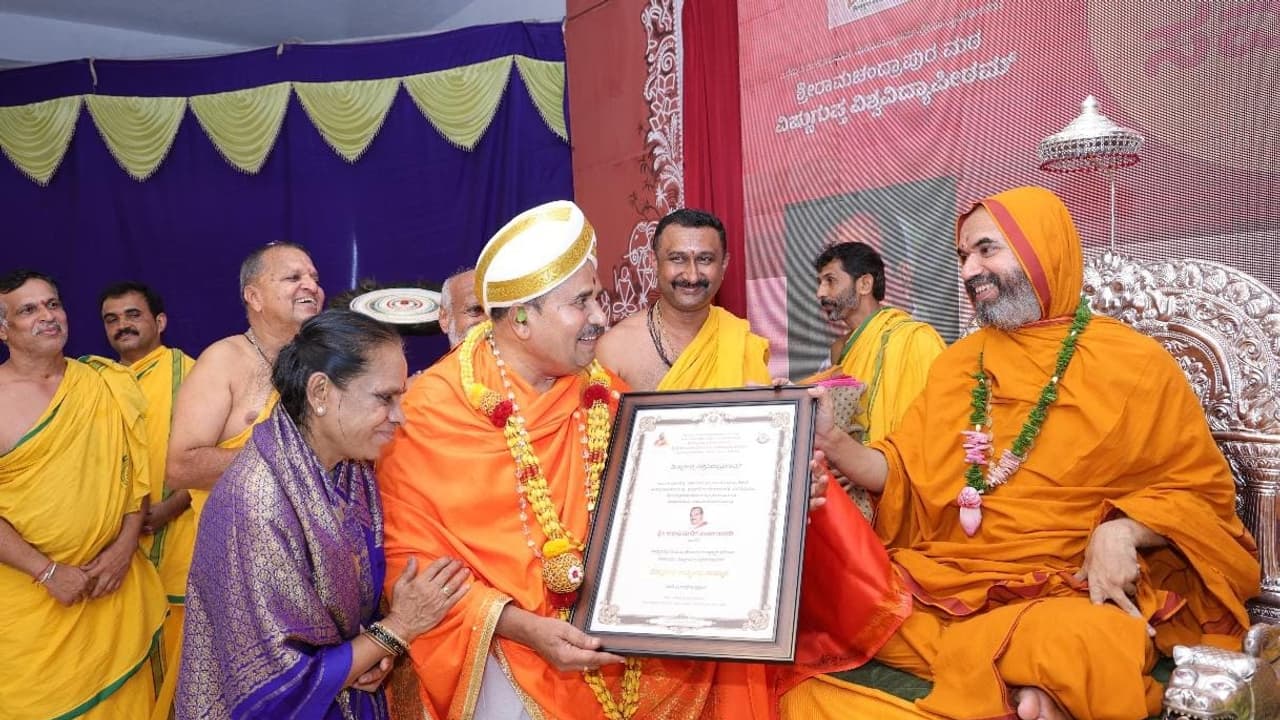 ಪ್ರಶಸ್ತಿ ಸ್ವೀಕರಿಸಿದ ಅರಳುಮಲ್ಲಿಗೆ ಪಾರ್ಥಸಾರಥಿ ಮಾತನಾಡಿ, ಏಳೆಂಟು ವರ್ಷಗಳಿಂದ ಕಲ್ಲುಮುಳ್ಳುಗಳಿಂದ ಕೂಡಿದ್ದ ನೆಲದಲ್ಲಿ ಇಡೀ ಜಗತ್ತೇ ಬೆರಗಿನಿಂದ ನೋಡುವಂತೆ ವಿಷ್ಣುಗುಪ್ತ ವಿಶ್ವವಿದ್ಯಾಪೀಠವನ್ನು ಕಟ್ಟಿ ಬೆಳೆಸಿರುವುದು ನಾವೆಲ್ಲರೂ ಸಾಕ್ಷಿಗಳಾಗಿರುವ ಪವಾಡ. ಶಂಕರರು ಮೂರು ಬಾರಿ ಇಲ್ಲಿ ಓಡಾಡಿದ ಪರಮ ಪವಿತ್ರ ಸ್ಥಳ ಇದು. ಪ್ರಾಚೀನ ಕಾಲದಿಂದ ಇದ್ದ ಮಲ್ಲಿಕಾರ್ಜುನ ಇಲ್ಲಿಗೆ ಸಾಧು ಸಂತರು, ಸಾಧಕರನ್ನು ಅನುಗ್ರಹಿಸುತ್ತಿದ್ದ. ಇಂದು ಇಡೀ ಜಗತ್ತು ಅಚ್ಚರಿಪಡುತ್ತಿದೆ. ಜ್ಞಾನ, ಚಿಂತನೆ, ವಿದ್ಯಾ ಬುದ್ಧಿ ದಾನದ ಕೇಂದ್ರವಾಗಿ ರೂಪುಗೊಂಡಿದೆ ಎಂದರು.ವಿಷ್ಣುಸಹಸ್ರನಾಮ ಗ್ಲೋಬಲ್ ಫೌಂಡೇಷನ್ನ ಮುಖ್ಯಸ್ಥರಾದ ಮಂಗಳಾ ಭಾಸ್ಕರ್, ವಿವಿವಿ ಗೌರವಾಧ್ಯಕ್ಷ ಡಾ. ಡಿ.ಡಿ. ಶರ್ಮಾ, ವಿವಿವಿ ಕೇಂದ್ರೀಯ ಸಮಿತಿ ಗೌರವಾಧ್ಯಕ್ಷ ಡಾ. ಆರ್.ಎಸ್. ಹೆಗಡೆ ಹರಗಿ, ಅಧ್ಯಕ್ಷ ಎಸ್.ಎಸ್. ಹೆಗಡೆ, ಉದ್ಯಮಿ ಜಿ.ಎಂ. ಹೆಗಡೆ, ಹವ್ಯಕ ಮಹಾಮಂಡಲ ಪ್ರಧಾನ ಕಾರ್ಯದರ್ಶಿ ಉದಯಶಂಕರ ಭಟ್ ಮಿತ್ತೂರು, ಚಾತುಮಾಸ್ಯ ಸೇವಾ ಸಮಿತಿ ಅಧ್ಯಕ್ಷ ಮಂಜುನಾಥ ಸುರ್ವಣಗದ್ದೆ, ಪ್ರಧಾನ ಕಾರ್ಯದರ್ಶಿ ಶ್ರೀಕಾಂತ ಪಂಡಿತ್, ವಿವಿವಿ ಹಿರಿಯ ಲೋಕ ಸಂಪರ್ಕಾಧಿಕಾರಿ ಜಿ.ಕೆ. ಹೆಗಡೆ, ಜಿ.ವಿ. ಹೆಗಡೆ, ಕಾರ್ಯದರ್ಶಿ ಜಿ.ಕೆ. ಮಧು, ಶ್ರೀಶ ಶಾಸ್ತ್ರಿ, ಅರವಿಂದ ಬಂಗಲಗಲ್ಲು, ದೈವಜ್ಞರಾದ ಕೇಶವ ಭಟ್ ಮಿತ್ತೂರು ಮತ್ತಿತರರು ಉಪಸ್ಥಿತರಿದ್ದರು.