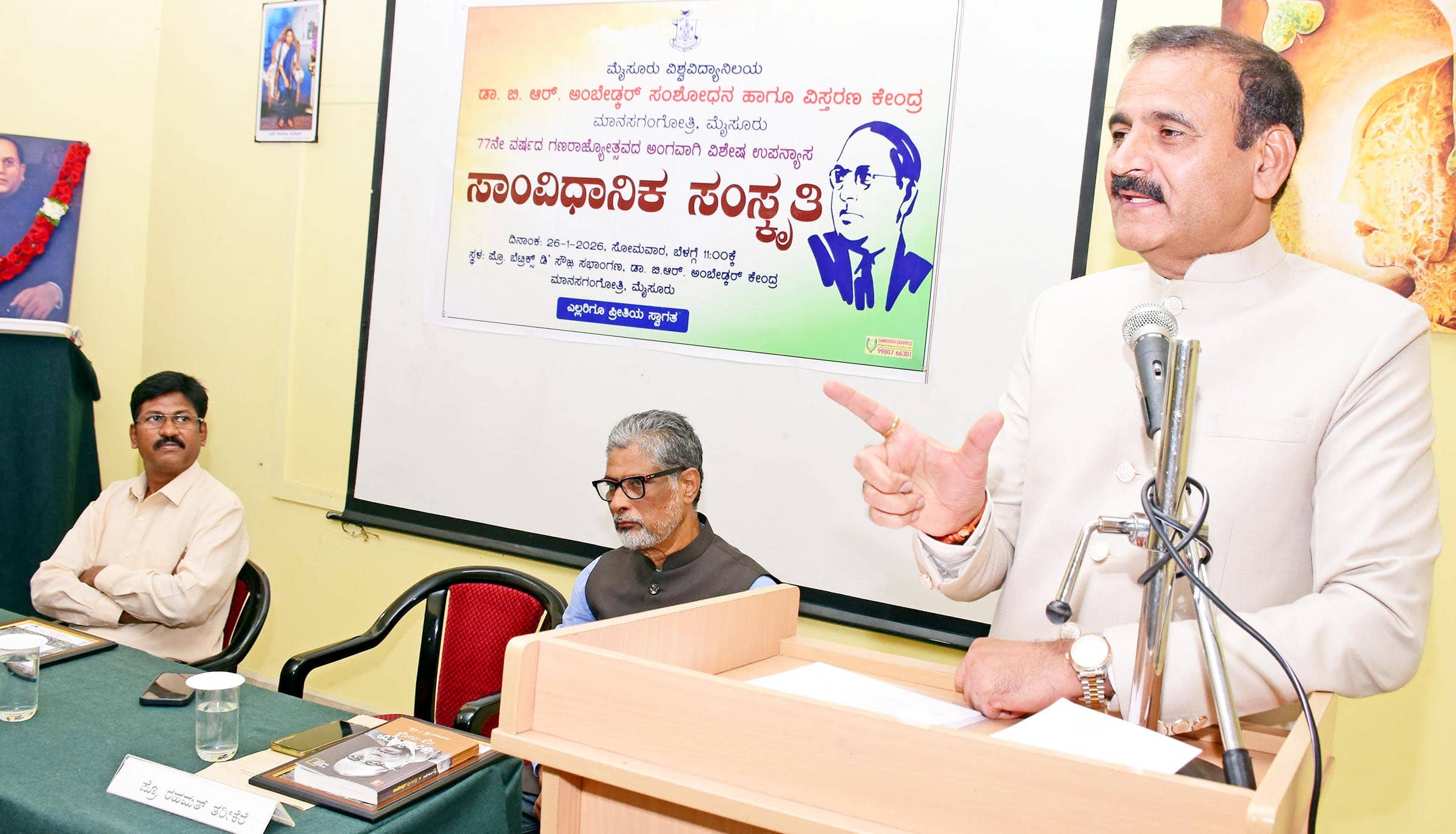 ಕನ್ನಡಪ್ರಭ ವಾರ್ತೆ ಮೈಸೂರುಸಮಾನತೆ ರಾಜಕೀಯವಾಗಿ ಮಾತ್ರವಲ್ಲ, ಸಾಮಾಜಿಕ, ಆರ್ಥಿಕ ಜೀವನ, ಆಲೋಚನ ಕ್ರಮದಲ್ಲಿ ಬರಬೇಕು ಎಂದು ಮೈಸೂರು ವಿವಿ ಡಾ.ಬಿ.ಆರ್. ಅಂಬೇಡ್ಕರ್ ಸಂಶೋಧನ ಹಾಗೂ ವಿಸ್ತರಣ ಕೇಂದ್ರದ ಸಂದರ್ಶಕ ಪ್ರಾಧ್ಯಾಪಕ ಪ್ರೊ. ರಹಮತ್ ತರೀಕೆರೆ ಅಭಿಪ್ರಾಯಪಟ್ಟರು.ಡಾ.ಬಿ.ಆರ್. ಸಂಶೋಧನ ಹಾಗೂ ವಿಸ್ತರಣ ಕೇಂದ್ರದ ವತಿಯಿಂದ ಸೋಮವಾರ ಆಯೋಜಿಸಿದ್ದ 77ನೇ ಗಣರಾಜ್ಯೋತ್ಸವ ಕಾರ್ಯಕ್ರಮದಲ್ಲಿ ಸಾಂವಿಧಾನಿಕ ಸಂಸ್ಕೃತಿ ವಿಷಯ ಕುರಿತು ಅವರು ಮಾತನಾಡಿದರು. ಸ್ವಾತಂತ್ರ್ಯ, ಸಮಾನತೆ, ಸೋದರತ್ವವನ್ನು ಒಳಗೊಂಡ ಜೀವನ ಪದ್ದತಿ ಭಾರತಕ್ಕೆ ಬರಬೇಕು. ಇಲ್ಲವಾದರೆ ಬೇರೆ ಮೌಲ್ಯಗಳಿಗೆ ಅರ್ಥ ಬರುವುದಿಲ್ಲ. ಸಂವಿಧಾನದಲ್ಲಿ ಅಡಕವಾದ ಈ ವಿಚಾರಗಳು ಸಾಕಾರಗೊಳ್ಳಬೇಕಾದರೆ ಅದಕ್ಕೆ ಸಾಂಸ್ಕೃತಿ ತಳಹದಿ ಮುಖ್ಯ. ಅಂಬೇಡ್ಕರ್ಅವರು ಸಂವಿಧಾನಿಕವಾಗಿ ದೊರೆತಿರುವ ಶೈಕ್ಷಣಿಕ ಸಂಸ್ಥೆಗಳನ್ನು ಸ್ಥಾಪಿಸಿಕೊಳ್ಳುವ ಹಕ್ಕು, ಧಾರ್ಮಿಕ ಹಕ್ಕನ್ನು ದಿನ ನಿತ್ಯದ ಬದುಕಿನಲ್ಲಿ ಹೇಗೆ ಅಳವಡಿಸಿಕೊಳ್ಳಬೇಕು. ಅದರಿಂದ ಆಗುವ ಅನುಕೂಲತೆ ಕುರಿತು ಹೇಳಿದ್ದಾರೆ. ಈ ರೀತಿಯ ಜೀವನ ವಿಧಾನದಲ್ಲಿ ಸಂಸ್ಕೃತಿ ಪ್ರಭಾವವಿದೆ ಎಂದರು.ಸಂವಿಧಾನದಲ್ಲಿ ಇರುವ ಪ್ರಮುಖ ವಿಚಾರಗಳಲ್ಲಿ ಸಂಸ್ಕೃತಿ ಅಡಕವಾಗಿದೆ. ಸಂವಿಧಾನದಲ್ಲಿರು ಪೀಠಿಕೆ, ಮೂಲಭೂತ ಹಕ್ಕು ಮತ್ತು ಕರ್ತವ್ಯ ಮಾರ್ಗದರ್ಶಕ ಸೂತ್ರಗಳಲ್ಲಿ ಸಂಸ್ಕೃತಿ ಇದೆ. ಈ ನಾಲ್ಕು ಸಂಗತಿಗಳಲ್ಲಿ ಮೂಲಭೂತ ಕರ್ತವ್ಯಕ್ಕೆ ಅಂಬೇಡ್ಕರ್ಹೆಚ್ಚು ಒತ್ತು ನೀಡಿದ್ದಾರೆ. ಅದರ ಭಾಗವಾದ ರಾಷ್ಟ್ರಧ್ವಜ, ರಾಷ್ಟ್ರದ ಹೋರಾಟವನ್ನು ಗೌರವಿಸುವುದು, ಭಾಷಿಕ ಮತ್ತು ಪ್ರಾಂತ್ಯ ವೈವಿಧ್ಯವನ್ನು ಗುರುತಿಸುವಾಗ ಸಂಸ್ಕೃತಿ ಬರುತ್ತದೆ ಎಂದರು.ವಿಚಾರ, ಅಭಿವ್ಯಕ್ತಿ, ನಂಬಿಕೆ, ಧರ್ಮ ಮತ್ತು ಉಪಾಸನದಲ್ಲಿ ಸಮಾನತೆ ಬೇಕು ಎಂದು ಸಂವಿಧಾನ ಹೇಳುತ್ತದೆ. ಇದು ನಮ್ಮ ಭಾರತದ ಸಂಸ್ಕೃತಿಯ ಒಂದು ಭಾಗವೂ ಕೂಡ. ಹಾಗೆಯೇ ಬಹುತ್ವದ ಸಂಸ್ಕೃತಿ, ಧಾರ್ಮಿಕ ಸಾಮರಸ್ಯ ವಿಚಾರದಲ್ಲಿ ಸಾಂಸ್ಕೃತಿಕ ನೆಲಗಟ್ಟನ್ನು ನಾವು ಕಾಣುತ್ತೇವೆ ಎಂದು ಅವರು ತಿಳಿಸಿದರು.ಸಂವಿಧಾನದಂತಹ ಆದರ್ಶವನ್ನು ಅಳವಡಿಸಿಕೊಳ್ಳುವುದು ಮುಖ್ಯವಲ್ಲ. ಅದನ್ನು ಬಳಕೆ ಮಾಡುವವರು ಯಾವ ರೀತಿ ಬಳಕೆ ಮಾಡಿಕೊಳ್ಳುತ್ತಾರೆ ಎಂಬುದು ಬಹಳ ಮುಖ್ಯ. ಎಷ್ಟೇ ಉಪಯೋಕ್ತವಾದ ಆದರ್ಶವನ್ನು ಜಾರಿಗೆ ತಂದರೂ ಅದನ್ನು ಬಳಕೆ ಮಾಡುವವರು ತಿರಸ್ಕರಿಸಿದರೆ ಅದಕ್ಕೆ ಬೆಲೆ ಇರುವುದಿಲ್ಲ ಎಂದರು.ಮೈಸೂರು ವಿವಿ ಕುಲಪತಿ ಪ್ರೊ.ಎನ್.ಕೆ. ಲೋಕನಾಥ್ಕಾರ್ಯಕ್ರಮ ಉದ್ಘಾಟಿಸಿ ಮಾತನಾಡಿ, ಯುವಕರು ಹೆಚ್ಚಾಗಿ ಸಂವಿಧಾನದ ಬಗ್ಗೆ ತಿಳಿದುಕೊಂಡು ನಿತ್ಯ ಜೀವನದಲ್ಲಿ ಅಳವಡಿಸಿಕೊಳ್ಳಬೇಕು ಎಂದು ಸಲಹೆ ನೀಡಿದರು.ಕಾರ್ಯಕ್ರಮದಲ್ಲಿ ಮೈಸೂರು ವಿಶ್ವವಿದ್ಯಾಲಯ ಡಾ.ಬಿ.ಆರ್. ಸಂಶೋಧನ ಹಾಗೂ ವಿಸ್ತರಣ ಕೇಂದ್ರದ ನಿರ್ದೇಶಕ ಡಾ.ಎಸ್. ನರೇಂದ್ರಕುಮಾರ್ ಮೊದಲಾದವರು ಇದ್ದರು.