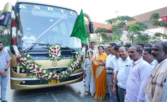 ದಾವಣಗೆರೆ ಕೆಎಸ್ಆರ್ಟಿಸಿ ಬಸ್ ನಿಲ್ದಾಣದಲ್ಲಿ ಬುಧವಾರ ನೂತನ ವೋಲ್ವೊ ಬಸ್ಗೆ ಚಾಲನೆ ನೀಡಿದರು.ದಾವಣಗೆರೆಯಿಂದ ಬೆಳಿಗ್ಗೆ 10 ಗಂಟೆಗೆ ಹೊರಡುವ ಈ ಬಸ್ ಚಿತ್ರದುರ್ಗ, ತುಮಕೂರು, ದಾಬಸ್ಪೇಟೆ ಮಾರ್ಗವಾಗಿ ಮಧ್ಯಾಹ್ನ 1 ಗಂಟೆಗೆ ಹಾಗೂ ಸಂಜೆ 5 ಗಂಟೆಗೆ ಹೊರಟು ರಾತ್ರಿ 10 ಗಂಟೆಗೆ ದೇವನಹಳ್ಳಿ ಕೆಂಪೇಗೌಡ ಅಂತಾರಾಷ್ಟ್ರೀಯ ವಿಮಾನ ನಿಲ್ದಾಣ ತಲುಪಲಿದೆ. ಹಾಗೆಯೇ ಕೆಂಪೇಗೌಡ ವಿಮಾನ ನಿಲ್ದಾಣದಿಂದ ಮಧ್ಯರಾತ್ರಿ 12.45ಕ್ಕೆ ಹೊರಟು ಅದೇ ಮಾರ್ಗವಾಗಿ ಮುಂಜಾನೆ 5.45ಕ್ಕೆ ಹಾಗೂ ಬೆಳಗ್ಗೆ 10 ಗಂಟೆಗೆ ಹೊರಡುವ ಬಸ್ ಮಧ್ಯಾಹ್ನ 3 ಗಂಟೆಗೆ ದಾವಣಗೆರೆ ಬಸ್ ನಿಲ್ದಾಣ ಸೇರಲಿರುವ ಬಸ್ ಇದೇ ಮಾರ್ಗವಾಗಿ ಪ್ರತಿನಿತ್ಯ ಸಂಚರಿಸಲಿದೆ ಎಂದರು.