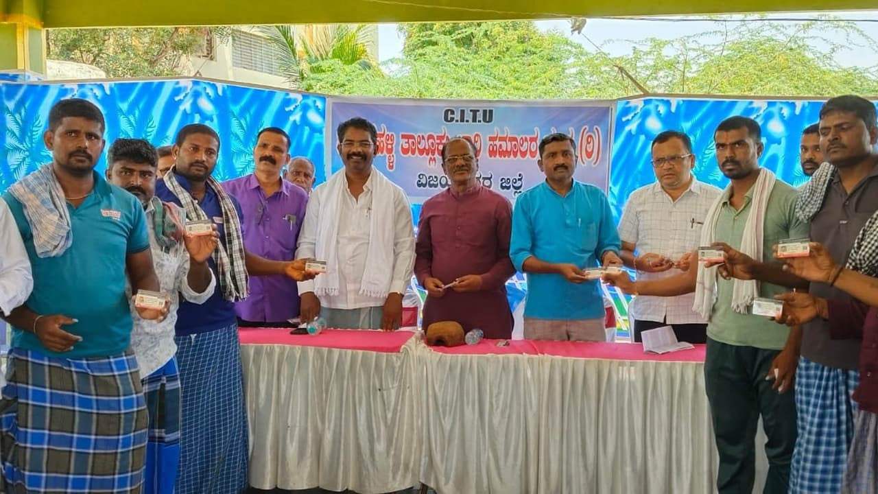 ಪಟ್ಟಣದ ಕೋಟೆ ಕಾಳಮ್ಮ ದೇವಸ್ಥಾನದ ಆವರಣದಲ್ಲಿ ಭಾನುವಾರ ಹರಪನಹಳ್ಳಿ ತಾಲೂಕು ಲಾರಿ ಹಮಾಲರ ಸಂಘ (ಸಿಐಟಿಯು) ಸದಸ್ಯರಿಗೆ ಸದಸ್ಯತ್ವ ಕಾರ್ಡ್ ವಿತರಣೆ ಹಾಗೂ ರಾಜಕೀಯ ಜಾಗೃತಿ ಕಾರ್ಯಕ್ರಮವನ್ನು ಅಕ್ಕಿ ಮೂಟೆ ಹೊರಿಸುವ ಮೂಲಕ ಉದ್ಟಾಟಿಸಿ ಮಾತನಾಡಿದರು.ದುಡಿಯುವ ವರ್ಗಕ್ಕೆ ಸರ್ಕಾರಗಳು, ಅನುದಾನ ಮೀಸಲೀಡಬೇಕು. ದುಡಿಯುವ ಜನರಿಗೆ ಆರೋಗ್ಯ ವಿಮೆ ಅಗತ್ಯವಾಗಿದೆ ಎಂದ ಅವರು, ಹಮಾಲರು ಕೂಡ ಆರ್ಥಿಕ ಸಬಲರಾಗಲು ಮುಂದೆ ಬರಬೇಕು. ತಮ್ಮ ಮಕ್ಕಳಿಗೆ ಸರ್ಕಾರದ ಯೋಜನೆಗಳನ್ನು ಬಳಸಿಕೊಂಡು ಉತ್ತಮ ಶಿಕ್ಷಣವನ್ನು ಕೊಡಿಸುವ ಮುಖಾಂತರ ಉತ್ತಮ ಭವಿಷ್ಯ ರೂಪಿಸಬೇಕು ಎಂದರು.