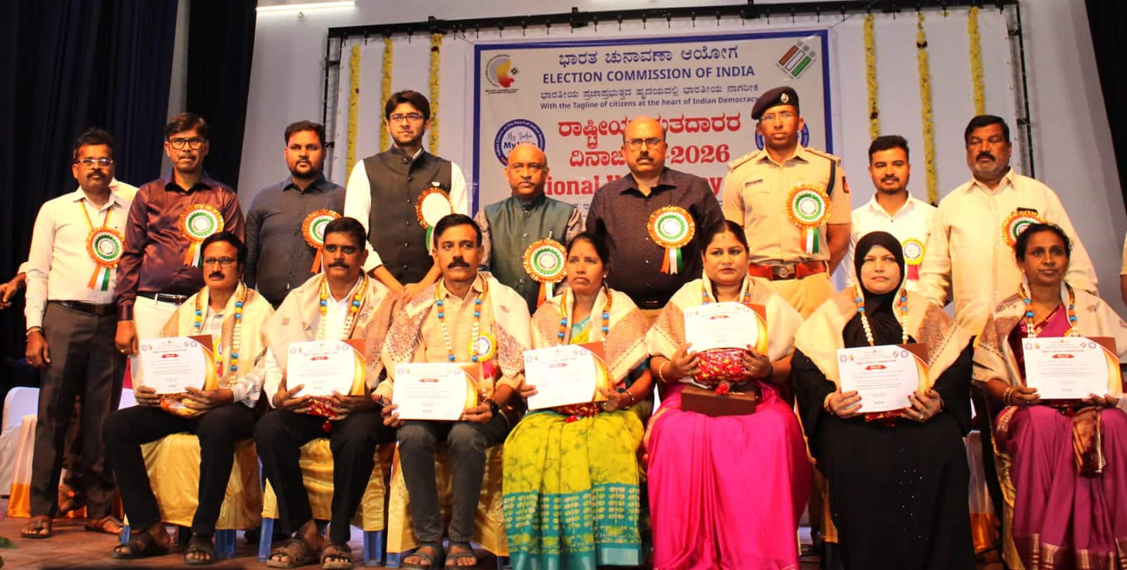 ಚಿತ್ರದುರ್ಗದ ಶ್ರೀ ಶಿವಶರಣ ಮಾದಾರ ಚೆನ್ನಯ್ಯ ಸಭಾ ಭವನದಲ್ಲಿ ನಡೆದ ರಾಷ್ಟ್ರೀಯ ಮತದಾರರ ದಿನಾಚರಣೆ ಅಂಗವಾಗಿ ಉತ್ತಮವಾಗಿ ಕಾರ್ಯನಿರ್ವಹಿಸಿದ ಮತಗಟ್ಟೆ ಮಟ್ಟದ ಅಧಿಕಾರಿಗಳಿಗೆ ಸನ್ಮಾನಿಸಲಾಯಿತು.