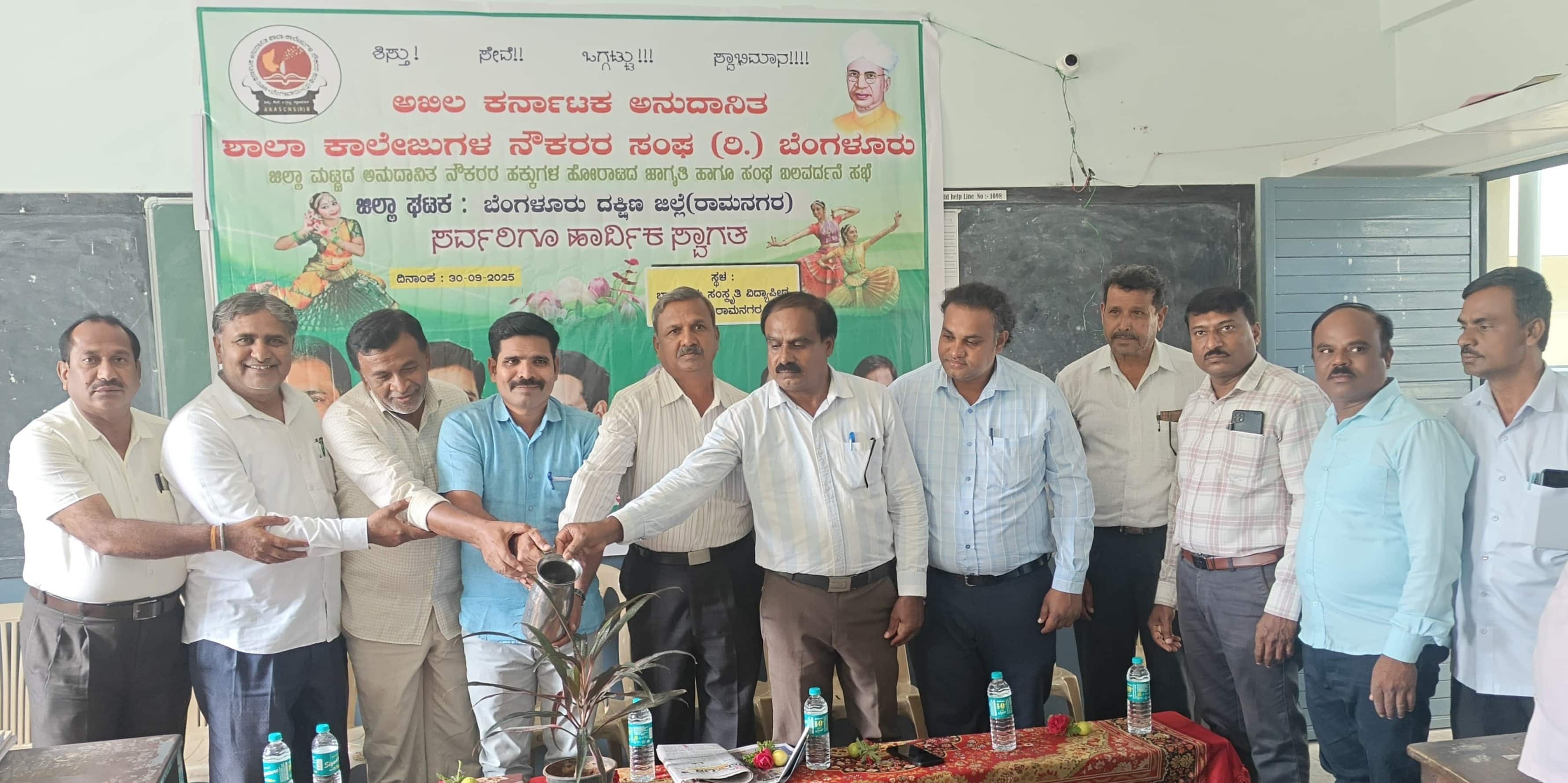 2ಕೆಆರ್ ಎಂಎನ್ 2.ಜೆಪಿಜಿರಾಮನಗರದ ಭಾರತೀಯ ಸಂಸ್ಕೃತಿ ವಿದ್ಯಾಪೀಠ ಶಿಕ್ಷಣ ಸಂಸ್ಥೆಯಲ್ಲಿ ನಡೆದ ಅನುದಾನಿತ ಶಾಲಾ-ಕಾಲೇಜುಗಳ ನೌಕರರ ಜಿಲ್ಲಾ ಮಟ್ಟದ ಸಭೆಯನ್ನು ಅತಿಥಿಗಳು ಉದ್ಘಾಟಿಸಿದರು.