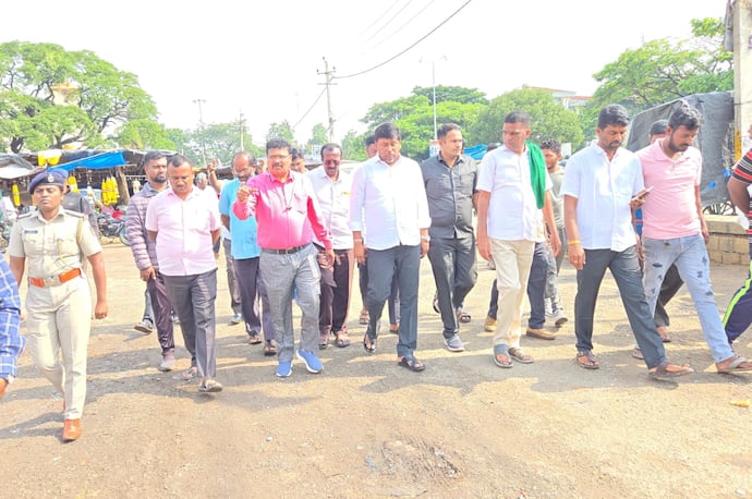 ರೈತರಿಗೆ ತೊಂದರೆ ಆಗದಿರಲಿಆಗ ಸ್ಥಳದಲ್ಲಿದ್ದ ನಗರಸಭೆ ಕಮೀಷನರ್ರಿಗೆ ಅನಧಿಕೃತ ಅಂಗಡಿಗಳನ್ನು ತೆರವುಗೊಳಿಸಿ, ಆದರೆ ಲಕ್ಷಾಂತರ ರೂಪಾಯಿ ಬಂಡವಾಳ ಹಾಕಿ ಬೆಳೆದಿರುವ ಹೂ ಬೆಳೆಗಾರರಿಗೆ ತೊಂದರೆಯಾಗದಂತೆ ಕ್ರಮವಹಿಸಿ. ಜೊತೆಗೆ ಇಂದಿರಾ ಕ್ಯಾಂಟೀನ್ ಪಕ್ಕದ ಸ್ಥಳ ಅಭಿವೃದ್ಧಿಪಡಿಸಿ ಪಾರ್ಕಿಂಗ್ ವ್ಯವಸ್ಥೆ ಮಾಡಿ ಎಂದು ಸೂಚಿಸಿದರು.