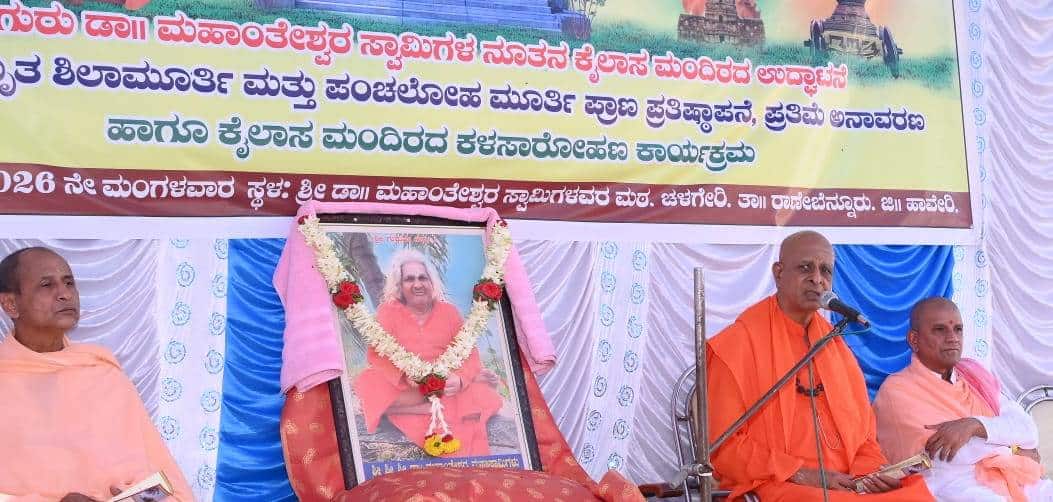 ರಾಣಿಬೆನ್ನೂರು ತಾಲೂಕು ಚಳಗೇರಿಯ ಲಿಂ.ಡಾ. ಮಹಾಂತೇಶ್ವರ ಸ್ವಾಮಿಗಳ ಶ್ರೀಮಠದಲ್ಲಿ ಮಂಗಳವಾರ ನಡೆದ ಗುರುಗಳ ನೂತನ ಕೈಲಾಸ ಮಂದಿರ ಉದ್ಘಾಟನೆ. ಪೂಜ್ಯರ ಅಮೃತ ಶಿಲಾಮೂರ್ತಿ, ಪಂಚಲೋಹ ಮೂರ್ತಿ ಪ್ರಾಣ ಪ್ರತಿಷ್ಠಾಪನೆ, ಕೈಲಾಸ ಮಂದಿರದ ಕಳಸಾರೋಹಣ, ನಾಗದೇವತಾ ಮೂರ್ತಿಗಳಿಗೆ ಪೂಜಾ ಅಭಿಷೇಕ ಮತ್ತು ಧಾರ್ಮಿಕ ವಿಧಿ ವಿಧಾನಕಾರ್ಯಕ್ರಮದ ಸಾನಿಧ್ಯವಹಿಸಿದ್ದ ಅವರು ಆಶೀರ್ವಚನ ನೀಡಿದರು.ಆ ದೇಶಗಳಿಗೆ ಹೋಲಿಸಿದರೆ ನಮ್ಮ ಭಾರತದಲ್ಲಿ ಯಾಕೆ ಶಾಂತಿ ಇದೆ ಎಂದರೆ ಇಲ್ಲಿ ಧರ್ಮ ಇದೆ. ನಮ್ಮಂತ ಗುರುಗಳು, ಪೀಠಗಳು ಇವೆ. ತಪ್ಪು ಮಾರ್ಗದಲ್ಲಿ ನಡೆದರೆ ನಾವು ಬುದ್ಧಿ ಹೇಳುತ್ತೇವೆ.ನಿಮ್ಮಂತ ಭಕ್ತರ ಬೆಂಬಲವೂ ಸ್ವಾಮಿಗಳಿಗೆ ಸದಾ ಇದೆ. ಸಮಾಜದಲ್ಲಿ ಒಳ್ಳೆಯದನ್ನೇ ಮಾಡಬೇಕು ಹೊರತು ಮಠವನ್ನು ದೊಡ್ಡದನ್ನಾಗಿ ಮಾಡಬೇಕೆಂದು ಭಾವಿಸಬೇಡಿ. ಬದಲಾಗಿ ಕಾಯಕವೇ ಕೈಲಾಸ ಎಂಬ ತತ್ವವನ್ನು ನಂಬಿಕೊಂಡು, ಭಿಕ್ಷಾಟನೆಯ ದಾರಿ ಹಿಡಿಯದೆ, ತಾವು ದುಡಿದಂತ ಒಂದು ದಿವ್ಯಚೇತನದಲ್ಲಿ ನೀವು ಹೋಗಬೇಕು ಎಂದರು. ಸಾನಿಧ್ಯವಹಿಸಿದ್ದ ಚನ್ನಗಿರಿ ತಾಲೂಕು ವಡ್ನಾಳು ವಿಶ್ವಕರ್ಮ ಮಹಾ ಸಂಸ್ಥಾನ ಸಾವಿತ್ರಿ ಪೀಠದ ಶಂಕರಾತ್ಮಾನಂದ ಸರಸ್ವತಿ ಮಹಾಸ್ವಾಮಿಗಳು ಮಾತನಾಡಿ, "ತುಂಬಿದ ಕೂಡ ಎಂದೆಂದೂ ತುಳುಕುವುದಿಲ್ಲ. ಖಾಲಿ ಕೊಡವು ಸಹ ತುಳುಕುವುದಿಲ್ಲ” ಅದೇ ರೀತಿ ತುಂಬಿದ ಸಭೆಯಲ್ಲಿಯೂ ಗದ್ದಲವಿಲ್ಲವೆಂದರೆ, ಮಹಾಂತೇಶ್ವರ ಸ್ವಾಮಿಗಳು ತುಂಬಿದಕೊಡವಿದ್ದಂತೆ. ಏಕೆಂದರೆ ತುಂಬಾ ಸರಳವಾದ ಜೀವನ ಅವರದು. ಜೀವನದಲ್ಲಿ ಏನೂ ಅಪೇಕ್ಷೆ ಪಡದೆ, ಸಾವಿರಾರು ಜನ ಭಕ್ತರ ಆರಾಧ್ಯ ದೈವ ಎಂದರೆ ತಪ್ಪಾಗಲಾರದು. ಸ್ವಾಮಿಗಳು ದೇಹದಿಂದ ದೂರವಾದರೂ ಸಹ ನಿಮ್ಮೂರಿನ ಸುತ್ತಲೂ ನಿಮ್ಮೆಲ್ಲರ ಹೃದಯದಲ್ಲಿ ಅಡಗಿದ್ದಾರೆ. ಸ್ವಾಮಿಗಳ ನಿಷ್ಠೆ, ಸರಳ ಜೀವನ ಅವರ ಪರಂಪರೆಯನ್ನು ಮುಂದುವರಿಸಿಕೊಂಡು ಹೋಗಿರಿ ಎಂದು ತಿಳಿ ಹೇಳಿದರು.ಗೋಕಾಕ್ ತಾಲೂಕು ಘೋಡಗೇರಿಯ ಶಿವಾನಂದ ಮಠದ ಮಲ್ಲಯ್ಯ ಸ್ವಾಮಿಗಳ ಕೈಲಾಸ ಮಂದಿರ ಉದ್ಘಾಟಿಸಿದರು. ರಟ್ಟಿಹಳ್ಳಿ ಕಬ್ಬಿಣಕಂತಿ ಮಠದ ಶಿವಲಿಂಗ ಶಿವಾಚಾರ್ಯ ಮಹಾಸ್ವಾಮಿಗಳಿಂದ ಪ್ರಾಣ ಪ್ರತಿಷ್ಠಾಪನೆ ಕಾರ್ಯ ನೆರವೇರಿತು, ಐರಣಿ ಹೊಳೆಮಠದ ಬಸವರಾಜ ದೇಶಿಕೇಂದ್ರ ಮಹಾಸ್ವಾಮಿಗಳಿಂದ ಕೈಲಾಸ ಮಂದಿರದ ಗೋಪುರದ ಕಳಸಾರೋಹಣ ಕಾರ್ಯಕ್ರಮ ಜರುಗಿತು.ಖಂಡೇರಾಯನಹಳ್ಳಿಯ ಆರೂಢ ತಪೋಭೂಮಿಯ ಗುರು ನಾಗರಾಜನಂದ ಮಹಾಸ್ವಾಮಿಗಳು, ರಾಣಿಬೆನ್ನೂರಿನ ವಿರಕ್ತಮಠದ ಗುರು ಬಸವ ಮಹಾಸ್ವಾಮಿಗಳ ನೇತೃತ್ವದಲ್ಲಿ ಡಾ. ಮಹಾಂತೇಶ್ವರ ಮಹಾಸ್ವಾಮಿಗಳ ನೂತನ ಮೂರ್ತಿ ಅನಾವರಣ ಕಾರ್ಯಕ್ರಮ ಜರುಗಿತು. ಅಧ್ಯಕ್ಷತೆಯನ್ನುರಾಮದುರ್ಗದ ಅವರಾದಿ ಫಲಹಾರೇಶ್ವರ ಸಂಸ್ಥಾನ ಮಠದ ಶಿವಮೂರ್ತಿ ಮಹಾಸ್ವಾಮಿಗಳು ವಹಿಸಿದ್ದರು. ಮಾಜಿ ಶಾಸಕರಾದ ಅರುಣಕುಮಾರ ಪೂಜಾರ, ಹಾವೇರಿ ಜಿಲ್ಲಾ ಜೆಡಿಎಸ್ ಅಧ್ಯಕ್ಷರಾದ ಮಂಜುನಾಥ ಗೌಡಶಿವಣ್ಣನವರ, ರಾಣಿಬೆನ್ನೂರು ತಾಲೂಕು ತಹಸಿಲ್ದಾರ್ ಭಗವಾನ್, ಚಳಗೇರಿ ಗ್ರಾಮ ಲೆಕ್ಕಾಧಿಕಾರಿ ಎ.ಸಿ. ರುದ್ರೇಶ್, ಮುಖಂಡರುಗಳಾದ ಸಣ್ಣತಮ್ಮಪ್ಪ ಬಾಕಿ, ಜಟ್ಟೆಪ್ಪಕರೇಗೌಡರ್, ಮೌಲಾಸಾಬ್ ಫ್ಲಾಟ್, ರಾಯಪ್ಪ ತೆಂಬದ ಆಗಮಿಸಿದ್ದರು. ನೇತ್ರಾವತಿ ಯತ್ತಿನಮನಿ ಸ್ವಾಗತಿಸಿದರು. ನಿವೃತ್ತ ಶಿಕ್ಷಕ ಹನುಮಂತಪ್ಪ ಕನ್ನಮ್ಮನವರ್ ಪ್ರಾಸ್ತಾವಿಕವಾಗಿ ಮಾತನಾಡಿದರು. ನಿವೃತ್ತ ಶಿಕ್ಷಕ ಸೋಮನಗೌಡರ್ ಕಾರ್ಯಕ್ರಮ ನಿರೂಪಿಸಿದರು.