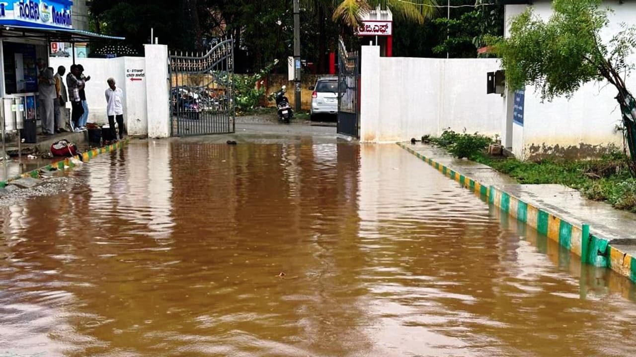ಕೆಜಿಎಫ್ನ ಮಿನಿ ವಿಧಾನಸೌಧದ ಸುತ್ತ ಚರಂಡಿ ನಿರ್ಮಾಣ ವೈಜ್ಞಾನಿಕ ರೀತಿಯಲ್ಲಿ ಮಾಡಿರುವ ಕಾರಣ ಸಣ್ಣ ಮಳೆ ಬಂದರೂ ಕಟ್ಟಡದ ಆವರಣದ ಮುಖ್ಯ ದ್ವಾರದಲ್ಲಿ ಮೊಣಕಾಲುದ್ದದ ನೀರು ತುಂಬಿಕೊಂಡು ಕೆರೆಯಂತಾಗುತ್ತದೆ