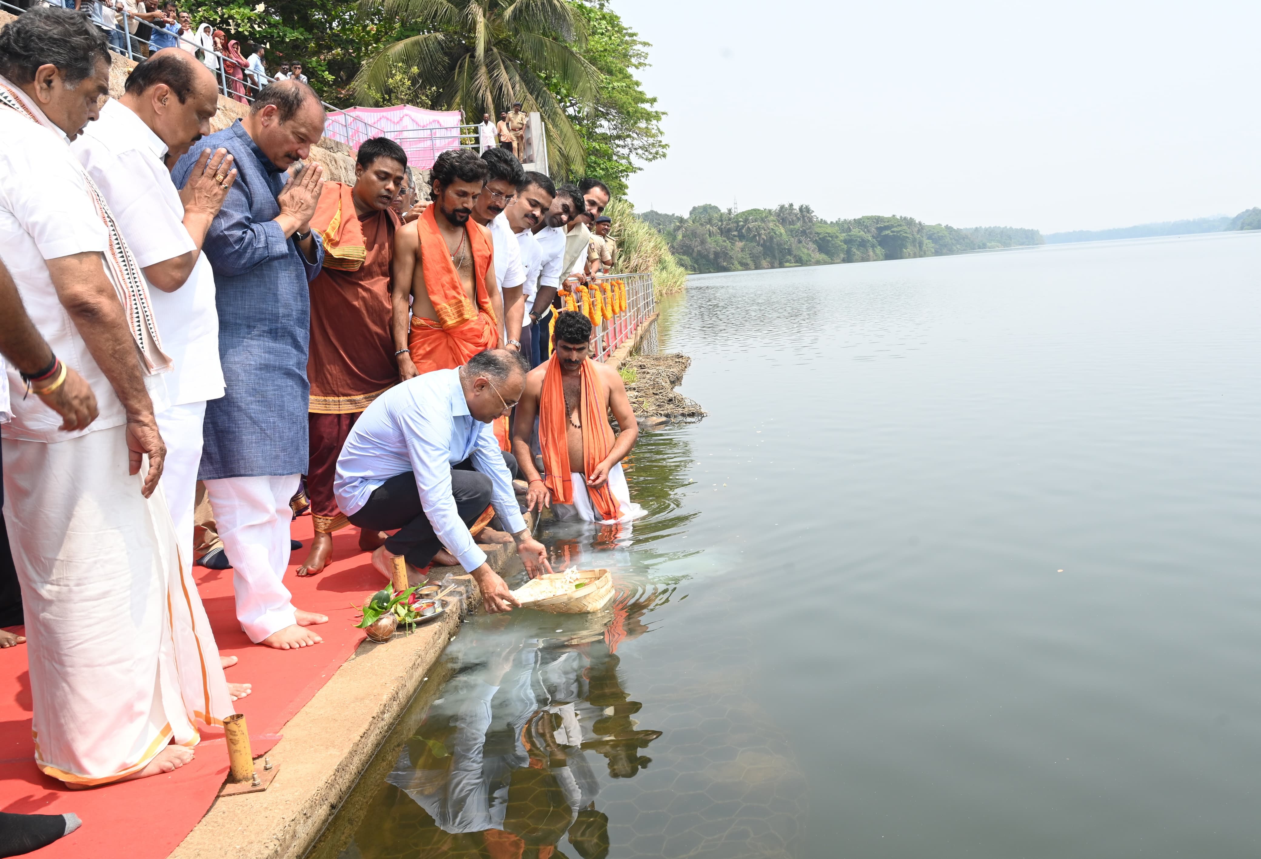 ಮಂಗಳೂರು: ಜೂನ್ ತಿಂಗಳವರೆಗೆ ಮಂಗಳೂರು ನಗರಕ್ಕೆ ನೀರಿನ ಕೊರತೆಯಾಗದಂತೆ ಸೂಕ್ತ ಕ್ರಮ ಕೈಗೊಳ್ಳಬೇಕು ಎಂದು ಜಿಲ್ಲಾ ಉಸ್ತುವಾರಿ ಸಚಿವ ದಿನೇಶ್ ಗುಂಡೂರಾವ್ ಅಧಿಕಾರಿಗಳಿಗೆ ಸೂಚನೆ ನೀಡಿದ್ದಾರೆ.ನಗರಕ್ಕೆ ನೀರು ಪೂರೈಕೆಯಾಗುವ ತುಂಬೆ ಕಿಂಡಿ ಅಣೆಕಟ್ಟಿನ ಬಳಿ ಗಂಗಾಪೂಜೆ ನೆರವೇರಿಸಿ ಅವರು ಮಾತನಾಡಿದರು.