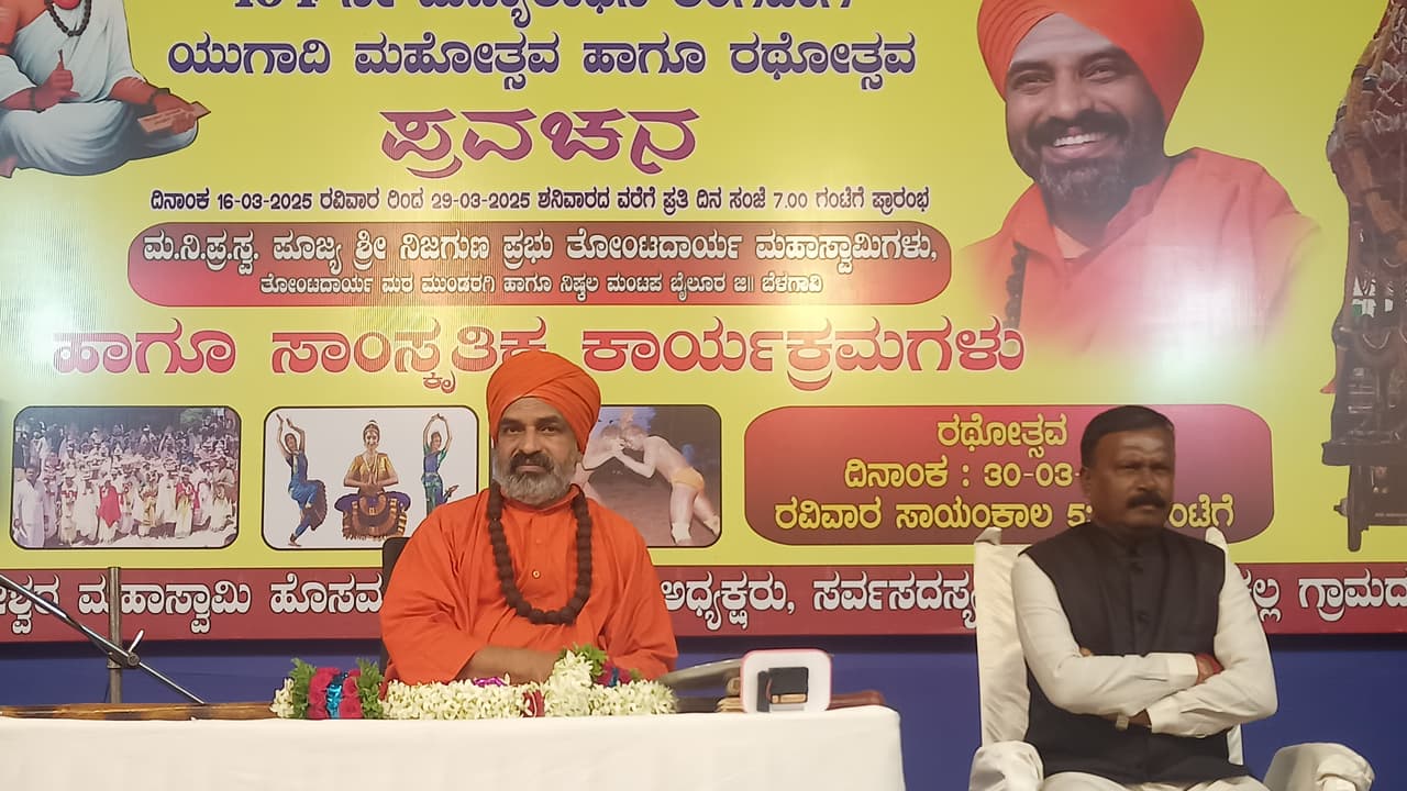 ಬುದ್ಧ, ಬಸವ, ಶರಣರು, ಸಂತರು, ತತ್ವಜ್ಞಾನಿಗಳು ಈ ಪ್ರಕೃತಿ ತತ್ವ ತಿಳಿ ಹೇಳಿದರೂ ಯತಾರ್ಥ ಜ್ಞಾನ ಅರಿಯುವಲ್ಲಿ ವಿಫಲನಾಗಿ, ತನ್ನತನವಿದವನಂತೆ ಪರಿತಪಿಸುತ್ತಿದ್ದಾನೆ. ಧಾರ್ಮಿಕ ಮುಖಂಡರು ಧರ್ಮದ ಚೌಕಟ್ಟಿಗೆ, ರಾಜಕೀಯ ಮುಖಂಡರು ಮುಲಾಜಿನಲ್ಲಿ ಕಟ್ಟಿ ಹಾಕುತ್ತ ಬಂದಿದ್ದರಿಂದ ಸರಿಯಾದ ದಾರಿ ಯಾವುದು ಎನ್ನುವುದನ್ನೇ ಮರೆತಿದ್ದಾನೆ. ಜಾತಿ, ಧರ್ಮ, ಆಸ್ತಿ, ಅಂತಸ್ತು, ಪ್ರತಿಷ್ಠೆಯೇ ಜೀವನ ಎಂದು ಭಾವಿಸಿದ್ದರಿಂದ ಅತೃಪ್ತಜೀವಿಯಾಗಿದ್ದಾನೆ ಎಂದು ಶ್ರೀಗಳು ವಿಶ್ಲೇಷಿಸಿದರು.ಪ್ರಾಣಿ, ಪಕ್ಷಿ ಸಂಕುಲ ತನ್ನ ಸ್ವಾಭಿಮಾನ ಕಳೆದುಕೊಳ್ಳದೇ ಬದುಕಿವೆ. ಆದರೆ ಮನುಷ್ಯ ಸ್ವಾಭಿಮಾನ ಮರೆತು ಪರಾವಲಂಬಿಯಾಗಿದ್ದಾನೆ. ಹೇರಲ್ಪಟ್ಟ ಧರ್ಮ ಅವನನ್ನು ಸಹಜವಾಗಿ ನಗುವುದಕ್ಕೂ ಲಾಪಿಂಗ್ ಕ್ಲಬ್ ಆಶ್ರಯಿಸುವಂತೆ ಮಾಡಿದೆ. ಯಾರ ಮನೆಯಲ್ಲೂ ಇಂದು ನೆಮ್ಮದಿ ಉಳಿಸಿಲ್ಲ. ಮಠ, ಮಂದಿರಗಳನ್ನು ಸುತ್ತಿ ಸುಸ್ತಾಗುತ್ತಿದ್ದಾನೆಯೇ ಹೊರತು ದೇವರ ಕೊಡುಗೆಯಾದ ತನ್ನ ದೇಹವನ್ನು ದೇವಾಲಯ ಎಂದು ಭಾವಿಸುತ್ತಿಲ್ಲ. ಹಾಗಾಗಿ ದೇಹವೇ ದೇಗುಲ, ಶಿರವೇ ಹೊನ್ನಕಳಶ ಎಂದ ಬಸವಣ್ಣನ ಮಾತು ಇಂದು ಮನದಟ್ಟಾಗಬೇಕಿದೆ ಎಂದರು.