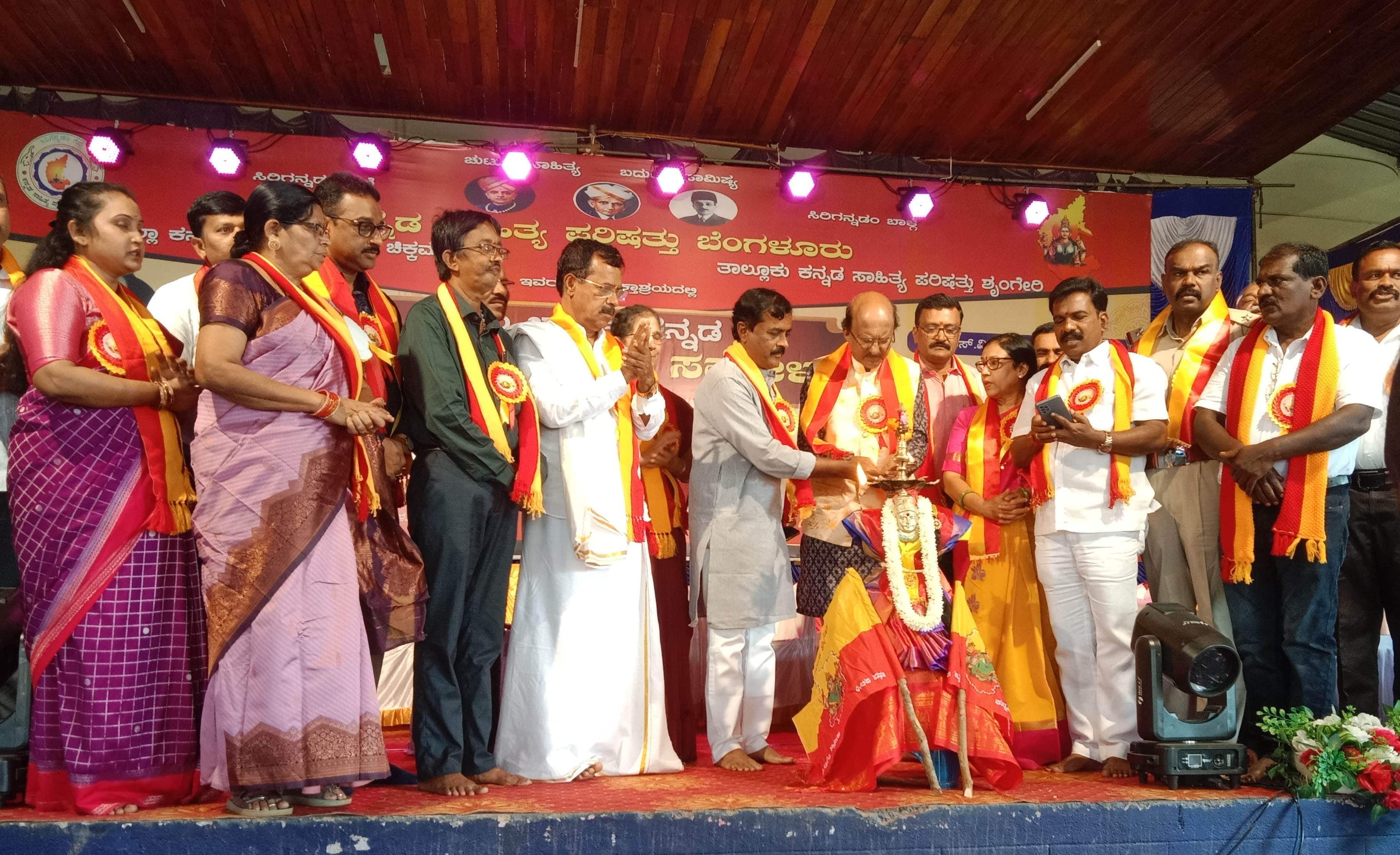 4 ಶ್ರೀ ಚಿತ್ರ 1-ಶೃಂಗೇರಿ ಪಟ್ಟಣದ ಕನ್ನಡ ಭವನದಲ್ಲಿ ನಡೆದ ಅಖಿಲ ಭಾರತ ಮಟ್ಟದ ಚುಟುಕು ಸಾಹಿತ್ಯ ಸಮ್ಮೇಳನವನ್ನು ಜಿಲ್ಲಾ ಕನ್ನಡ ಸಾಹಿತ್ಯ ಪರಿಷತ್ ಅಧ್ಯಕ್ಷ ಸೂರಿ ಶ್ರೀನಿವಾಸ್ ಉದ್ಘಾಟಿಸಿದರು. ಚುಟುಕು ಸಾಹಿತಿ ಎಚ್.ದುಂಡಿರಾಜ್, ಸುಧಾಕರ ಶೆಟ್ಟಿ,ಬಿ. ಶಿವಶಂಕರ್ ಮತ್ತಿತರರು ಇದ್ದರು.