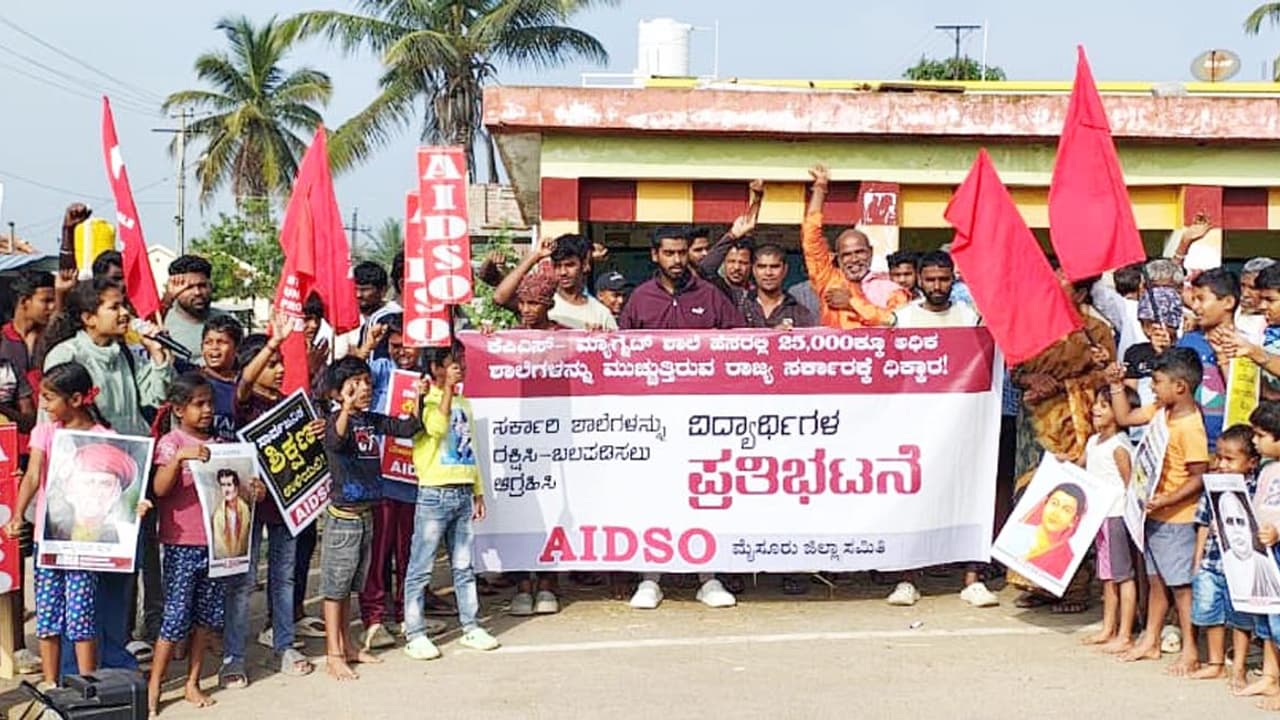 ಕೆಪಿಎಸ್- ಮ್ಯಾಗ್ನೆಟ್ ಹೆಸರಿನಲ್ಲಿ ಮುಚ್ಚಲು ಹೊರಟಿರುವ ಮೈಸೂರು ತಾಲೂಕು ಬಡಗಲಹುಂಡಿ ಗ್ರಾಮದ ಸರ್ಕಾರಿ ಶಾಲೆಯನ್ನು ಉಳಿಸಲು ಆಗ್ರಹಿಸಿ ಹಾಗೂ ನಮ್ಮೂರ ಶಾಲೆಯನ್ನು ಯಾವುದೇ ಕಾರಣಕ್ಕೂ ಮುಚ್ಚಲು ಬಿಡುವುದಿಲ್ಲ ಎಂದು ಬಡಗಲಹುಂಡಿ ಗ್ರಾಮಸ್ಥರು ಎಐಡಿಎಸ್ಒ ಸಂಘಟನೆಯ ನೇತೃತ್ವದಲ್ಲಿ ಪ್ರತಿಭಟಿಸಿದರು.ಈ ವೇಳೆ ಎಐಡಿಎಸ್ಒ ಜಿಲ್ಲಾ ಕಾರ್ಯದರ್ಶಿ ನಿತಿನ್ ಮಾತನಾಡಿ, ಕೆಪಿಎಸ್ ಮ್ಯಾಗ್ನೆಟ್ ಯೋಜನೆ ಹೆಸರಲ್ಲಿ 40000 ಹೆಚ್ಚಿನ ಸರ್ಕಾರಿ ಶಾಲೆಗಳನ್ನು ರಾಜ್ಯ ಸರ್ಕಾರ ಮುಚ್ಚಲು ಮುಂದಾಗಿದೆ. ಈ ಯೋಜನೆ ಭಾಗವಾಗಿ ವರಕೊಡು ಹಿರಿಯ ಪ್ರಾಥಮಿಕ ಶಾಲೆಯನ್ನು ಮ್ಯಾಗ್ನೆಟ್ ಶಾಲೆಯನ್ನಾಗಿಸಿ ಬಡಗಲಹುಂಡಿ ಗ್ರಾಮದ ಶಾಲೆಯನ್ನು ಅಲ್ಲಿಗೆ ಸೇರಿಸಲಾಗುತ್ತಿದೆ. 50 ದಾಖಲಾತಿ ಹೊಂದಿರುವ ಈ ಶಾಲೆಯನ್ನು ಮುಚ್ಚುತ್ತಿರುವ ಸರ್ಕಾರವು ಬಡ ರೈತ, ಕಾರ್ಮಿಕರ ಮಕ್ಕಳಿಗೆ ಅನ್ಯಾಯ ಮಾಡುತ್ತಿದೆ ಎಂದು ಆಕ್ರೋಶ ವ್ಯಕ್ತಪಡಿಸಿದರು.