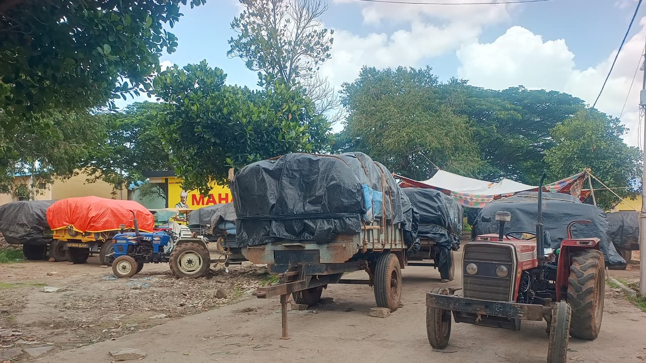 ಗೋಣಿಚೀಲವೇ ಇಲ್ಲ:ಕಳೆದ ಜೂ. 1ರ ತನಕ ರಾಗಿ ಖರೀದಿ ಮಾಡುತ್ತಿದ್ದ ವ್ಯವಸ್ಥಾಪನಾ ಮಂಡಳಿ ಜೂ. 2 ರಿಂದ ಗೋಣಿ ಚೀಲದ ಕೊರತೆ ಇರುವ ಕಾರಣಕ್ಕೆ ರಾಗಿ ಖರೀದಿ ಮಾಡಲು ಸಾಧ್ಯವಿಲ್ಲ. ತಾತ್ಕಾಲಿಕವಾಗಿ ನಿಲ್ಲಿಸಲಾಗಿದೆ ಎಂದು ಸೂಚನಾ ಫಲಕದಲ್ಲಿ ಹಾಕಿದೆ. ಈಗಾಗಲೇ ನಾಲ್ಕೈದು ದಿನ ಕಳೆದಿವೆ. ಕೇವಲ ಚೀಲ ಇಲ್ಲ ಅನ್ನೋ ಕಾರಣಕ್ಕೆ ಖರೀದಿ ನಿಲ್ಲಿಸಿದರೆ ರೈತರ ಗತಿ ಏನು? ಖರೀದಿ ಸ್ಥಳದಲ್ಲಿ ರಾಗಿ ತುಂಬಿದ ಸುಮಾರು ನೂರಕ್ಕೂ ಹೆಚ್ಚು ಟ್ರ್ಯಾಕ್ಟರ್ ಗಳು ನಿಂತಿವೆ. ಐದಾರು ದಿನಗಳಿಂದ ನಿಂತಿರುವ ಟ್ರ್ಯಾಕ್ಟರ್ ಗೆ ಬಾಡಿಗೆ ಕೊಡುವವರು ಯಾರು?. ಯಾವ ಕ್ಷಣದಲ್ಲಿ ಪ್ರಾರಂಭವಾಗುವುದೋ ಎಂಬ ಕಾರಣಕ್ಕೆ ಬೆಳೆಗಾರರು ತಮ್ಮ ರಾಗಿಯ ಬಳಿ ಕಾಯುತ್ತಾ ಕುಳಿತಿದ್ದಾರೆ. ಅವರ ಜೀವನ ಹೇಗೆ ? ಕೇವಲ ಇಪ್ಪತ್ತೈದು ರು. ಬೆಲೆಯ ರಾಗಿ ಚೀಲಕ್ಕಾಗಿ ಪ್ರತಿ ದಿನ ಸಾವಿರಾರು ರುಪಾಯಿ ಬಾಡಿಗೆಗೆ ಹಣ ತೆರಬೇಕಲ್ಲಾ ಎಂಬ ಚಿಂತೆ ರೈತರಲ್ಲಿ ಕಾಡುತ್ತಿದೆ. ಜೊತೆಗೆ ಖರೀದಿಯ ಸಮಯ ಮುಗಿದರೆ ನಮ್ಮ ಗತಿ ಏನು ಎಂಬ ಚಿಂತೆಯೂ ಸಹ ರೈತರಲ್ಲಿ ಮನೆ ಮಾಡಿದೆ.