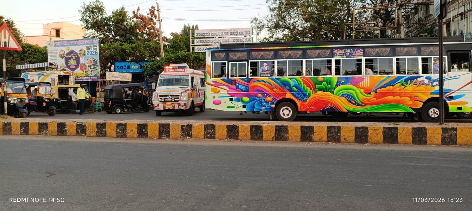 ಆಸ್ಪತ್ರೆಯಿಂದ ಆಂಬ್ಯುಲೆನ್ಸ್ ವಾಹಗಳು ಹೊರ ಬರಲು ಸಾಧ್ಯವಾಗದಷ್ಟರ ಮಟ್ಟಿಗೆ ಖಾಸಗಿ ಬಸ್ಸುಗಳು ಅಡ್ಡಿ ನಿಂತಿರುವುದು.
