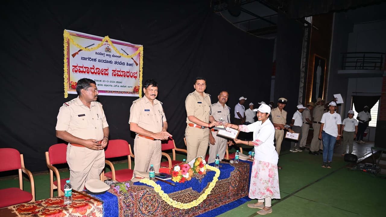 ಸಾಗರದಲ್ಲಿ ನಡೆದ ನಾಗರಿಕ ಬಂದೂಕು ತರಬೇತಿ ಶಿಬಿರದಲ್ಲಿ ಹೆಚ್ಚು ಅಂಕ ಪಡೆದವರನ್ನು ಜಿಲ್ಲಾ ಎಸ್ಪಿ ಮಿಥುನ್ಕುಮಾರ್ ಅಭಿನಂದಿಸಿದರು.