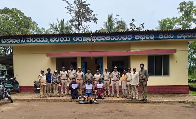 ತಾಲೂಕಿನ ಮುಡೇಬೈಲ್ನ ಶಂಕರ ಲಕ್ಷ್ಮಣ ನಾಯ್ಕ, ಗಂಗಾಧರ ಗಣಪತಿ ಗೌಡ, ಶಂಕರ ಬೊಮ್ಮ ಗೌಡ ಬಂಧಿತರು. ರವಿ ಮಾದೇವ ಗೌಡ ಹಾಗೂ ಗಣಪತಿ ಬೊಮ್ಮು ಗೌಡ ಪರಾರಿಯಾದ ಆರೋಪಿಗಳು. ಐವರು ಸೇರಿಕೊಂಡು ಬನವಾಸಿ ವಲಯದ ಎಕ್ಕಂಬಿ ಶಾಖೆಯ ಬಿಸಲಕೊಪ್ಪ ಸಮೀಪದ ಮುಡೇಬೈಲ ಮಾಲ್ಕಿ ಸರ್ವೇನಂಬರ್ನಲ್ಲಿ ಕಾಡು ಹಂದಿ ಬೇಟೆಯಾಡಿದ ಖಚಿತ ಮಾಹಿತಿ ಮೇರೆಗೆ ಅರಣ್ಯಾಧಿಕಾರಿಗಳು ಮುಡೇಬೈಲ್ನ ಆರೋಪಿ ಶಂಕರ ನಾಯ್ಕ ಮನೆಗೆ ತೆರಳಿ ಶೋಧಿಸಿದಾಗ ಮನೆಯಲ್ಲಿ ಅರೆ ಬೇಯಿಸಿದ 6 ಕೆಜಿ ಕಾಡುಹಂದಿ ಮಾಂಸ, ಪೂರ್ತಿ ಬೇಯಿಸಿದ 6 ಕೆಜಿ ಕಾಡುಹಂದಿ ಮಾಂಸ ಮತ್ತು 0.550 ಕೆಜಿ ಆಮೆಯ ಮಾಂಸ ವಶಪಡಿಸಿಕೊಂಡಿದ್ದಾರೆ. ಮೂವರನ್ನು ಬಂಧಿಸಲಾಗಿದ್ದು, ದಾಳಿ ಸಂದರ್ಭದಲ್ಲಿ ಇಬ್ಬರು ಪರಾರಿಯಾಗಿ ತಲೆಮರೆಸಿಕೊಂಡಿದ್ದಾರೆ.ಉಪ ಅರಣ್ಯ ಸಂರಕ್ಷಣಾಧಿಕಾರಿ ಸಂದೀಪ ಹಿಂದೂರಾವ್ ಸೂರ್ಯವಂಶಿ, ಸಹಾಯಕ ಅರಣ್ಯ ಸಂರಕ್ಷಣಾಧಿಕಾರಿ ಎಸ್.ಎಸ್. ನಿಂಗಾಣಿ ಮಾರ್ಗದರ್ಶನದಲ್ಲಿ ಭವ್ಯಾ ನಾಯ್ಕ, ಬನವಾಸಿ ವಲಯ ಅರಣ್ಯಾಧಿಕಾರಿ ನೇತೃತ್ವದಲ್ಲಿ ನಡೆದ ಕಾರ್ಯಾಚರಣೆಯಲ್ಲಿ ಉಪವಲಯ ಅರಣ್ಯಾಧಿಕಾರಿಗಳಾದ ಗಜೇಂದ್ರ ಮೊಗೇರ, ಬಾಲರಾಜ ಡಿ, ಯಶೋಧಾ ನಾಯ್ಕ, ಮಂಜುನಾಥ ಗಂಗಮತ ಗಸ್ತು ಅರಣ್ಯ ಪಾಲಕರಾದ ಭೋಜು ಚೌಹಾಣ್, ಅಮೃತ್ ಅರಿಬೆಂಚಿ, ಕನಕಪ್ಪ ತಳವಾರ, ಮಲ್ಲಿಕಾರ್ಜುನ ಗುದಗಿ, ರಮೇಶ ಎಚ್.ಸಿ., ಅರಣ್ಯ ವೀಕ್ಷಕರಾದ ಈಶ್ವರಪ್ಪ ಎಚ್.ಎಸ್. ಹಾಗೂ ಮಂಜುನಾಥ ನಾಯ್ಕ ಭಾಗವಹಿಸಿದ್ದರು.