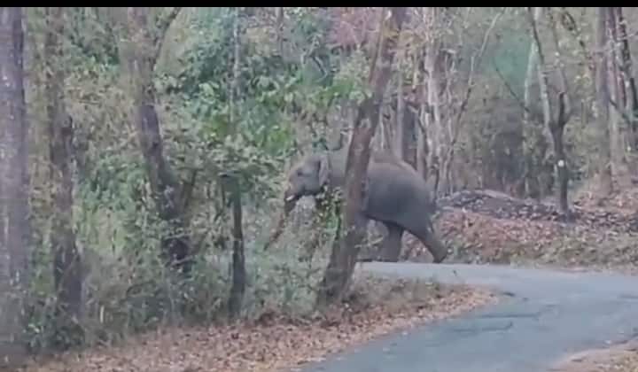 ೨೫ಬಿಹೆಚ್ಆರ್ ೪: ಬಾಳೆಹೊನ್ನೂರಿನ ಎಲೆಕಲ್ಲು-ಅಂಡವಾನೆ ಬಳಿ ರಸ್ತೆ ದಾಟುತ್ತಿದ್ದ ಕಾಡಾನೆ.