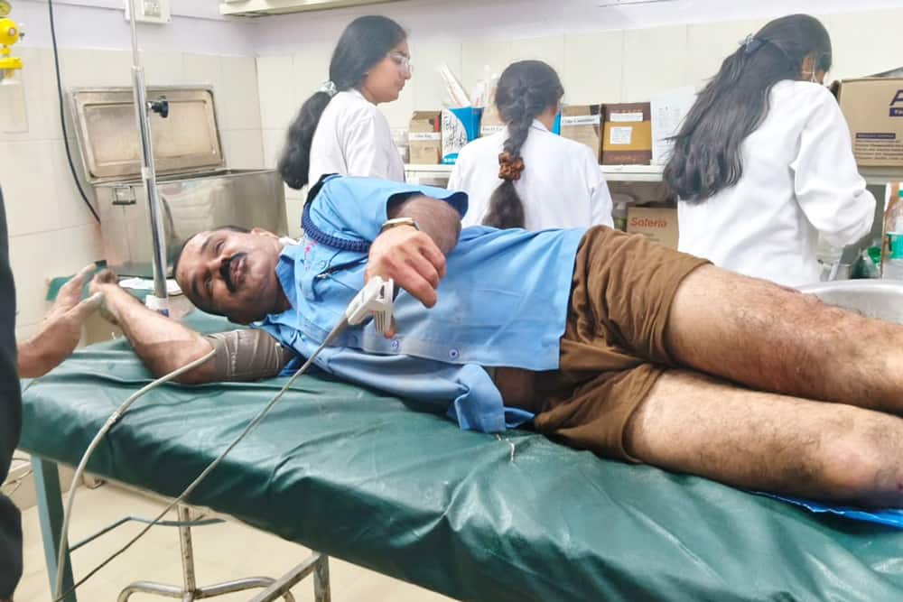 ಕನ್ನಡಪ್ರಭ ವಾರ್ತೆ ನಾಪೋಕ್ಲುಮದೆನಾಡು ಗ್ರಾಮದಲ್ಲಿ ಕಾಡಾನೆ ಹಿಂಡು ದಾಳಿ ಮಾಡಿ ಬೈಕ್ ಸವಾರ ತೀವ್ರವಾಗಿ ಗಾಯಗೊಂಡು ಜೀವಪಾಯದಿಂದ ಪಾರಾ ಘಟನೆ ಭಾನುವಾರ ಸಂಜೆ ನಡೆದಿದೆ. ಮದೆ ನಾಡು ಗ್ರಾಮದ ನಿವಾಸಿ ಭರತ್ ಕುಮಾರ್ (50) ಕಾಡಾನೆ ದಾಳಿಗೆ ಒಳಗಾದ ದುರ್ದೈವಿ.