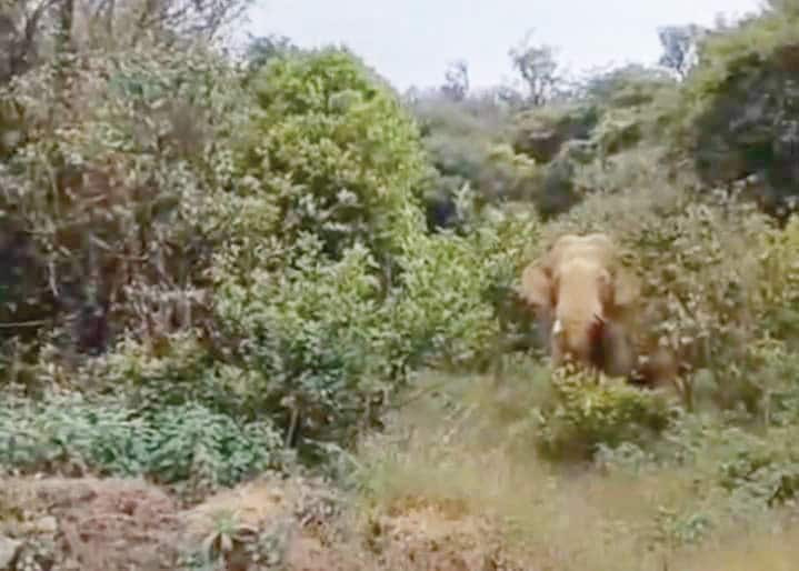 ಶೃಂಗೇರಿ ತಾಲೂಕಿನ ಕೆರೆ ಪಂಚಾಯಿತಿ ಗಂಗಾಮೂಲ ರಸ್ತೆಯಂಚಿನಲ್ಲಿ ಕಾಡಾನೆ ಓಡಾಡುತ್ತಿರುವುದು.