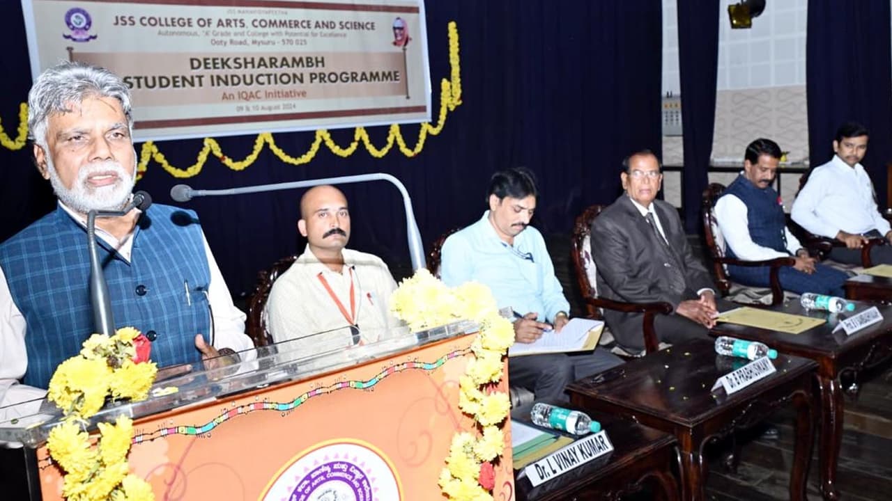 ಇಂದು ಯುವಕರು ಸ್ಪಷ್ಟ ಗುರಿಗಳಿಲ್ಲದೆ ದಾರಿ ತಪ್ಪುತ್ತಿದ್ದಾರೆ. ಜೀವನವೆಂಬ ಸಾವಿರ ಮೈಲಿಗಳ ಯಾನ ಆರಂಭವಾಗುವುದು ಒಂದು ಹೆಜ್ಜೆಯಿಂದ. ಆ ಒಂದು ಹೆಜ್ಜೆ ನಿಮ್ಮ ಮುಂದಿನ ಬಹು ದೊಡ್ಡ ಜೀವನಕ್ಕೆ ನಾಂದಿಯಾಗುತ್ತದೆ. ಪ್ರೇರಣೆ ಯಾರಿಂದಲೋ ಪಡೆಯುವುದಲ್ಲ: ನಿಮ್ಮೊಳಗೇ ಹುಟ್ಟಬೇಕು. ನಿಶ್ಚಿತ ಗುರಿ ಸಮಯಪಾಲನೆ, ಶಿಸ್ತು, ಪ್ರಶ್ನಿಸುವ ಗುಣ, ಕುತೂಹಲ, ಆಳವಾದ ದೃಷ್ಟಿಕೋನ, ಪೂರ್ವಸಿದ್ಧತೆ, ಭವಿಷ್ಯದ ಕನಸು ಇವುಗಳನ್ನು ಉತ್ತಮ ವಿದ್ಯಾರ್ಥಿಯು ಮೈಗೂಡಿಸಿಕೊಳ್ಳಬೇಕು. ಇಂದು ಪದವಿಗಿಂತ ಪದವೀಧರರಿಗೆ ಮೌಲ್ಯವಿದೆ ಎಂದರು.ಕಾರ್ಯಕ್ರಮದ ಅಧ್ಯಕ್ಷತೆ ವಹಿಸಿದ್ದ ಕಾಲೇಜಿನ ಮುಖ್ಯ ಕಾರ್ಯನಿರ್ವಾಹಕ ಪ್ರೊ.ಬಿ.ವಿ. ಸಾಂಬಶಿವಯ್ಯ ಕಾಲೇಜಿನ ಕಿರು ಪರಿಚಯವನ್ನು ಮಾಡಿಕೊಟ್ಟು ಮಾತನಾಡಿ, ವಿದ್ಯಾರ್ಥಿಗಳು ಕಾಲೇಜಿನ ಸೌಲಭ್ಯಗಳನ್ನು ಸದ್ಬಳಕೆ ಮಾಡಿಕೊಳ್ಳಬೇಕು. ಯುಜಿಸಿಯ ನಿಯಮಕ್ಕನುಸಾರವಾಗಿ ದೀಕ್ಷಾರಂಭ ಕಾರ್ಯಕ್ರಮವನ್ನು ಪ್ರಥಮ ವರ್ಷದ ವಿದ್ಯಾರ್ಥಿಗಳಿಗಾಗಿ ಆಚರಿಸಿಕೊಂಡು ಬರಲಾಗುತ್ತಿದೆ.