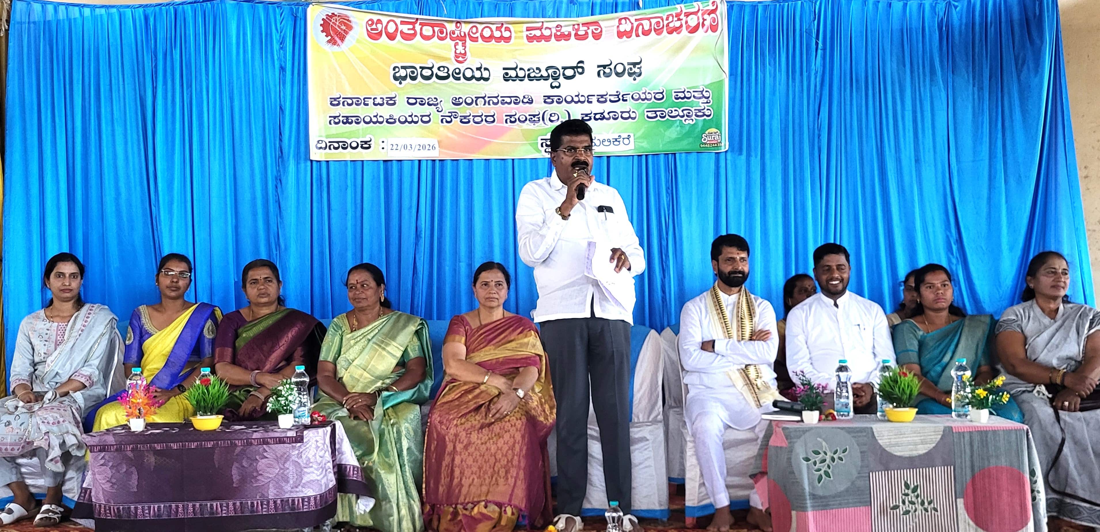 ಕಡೂರು ತಾಲೂಕಿನ ಹುಲೀಕೆರೆಯಲ್ಲಿ ಅಂಗನವಾಡಿ ಕಾರ್ಯಕರ್ತೆಯರ ಮತ್ತು ಸಹಾಯಕಿಯರ ನೌಕರರ ಭಾರತೀಯ ಮಜ್ದೂರ್ ಸಂಘ ಏರ್ಪಡಿಸಿದ್ದ ಅಂತಾರಾಷ್ಟ್ರೀ ಯ ಮಹಿಳಾ ದಿನಾಚರಣೆಯಲ್ಲಿ ಶಾಸಕ ತಮ್ಮಯ್ಯ ಮಾತನಾಡಿದರು. ಜೊತೆಯಲ್ಲಿ ಶಾಸಕ ಸಿ. ಟಿ. ರವಿ ಹಾಗೂ ಇತರರು ಇದ್ದಾರೆ.