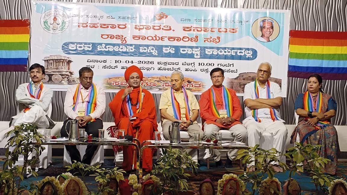 ಹೊಸಪೇಟೆಯ ಕೊಟ್ಟೂರು ಸಂಸ್ಥಾನ ಮಠದ ಜ.ಬಸವಲಿಂಗ ಸ್ವಾಮೀಜಿ ಕಾರ್ಯಕ್ರಮದ ಸಾನ್ನಿಧ್ಯ ವಹಿಸಿಕೊಂಡು ಆಶೀವರ್ಚನ ನೀಡಿ ಮಾತನಾಡಿ ನಮ್ಮ ಸಂಸ್ಕೃತಿಯನ್ನು ಗಟ್ಟಿಯಾಗಿ ಉಳಿಸಿ, ಬೆಳಸಿದರೆ ಮಾತ್ರ ಸಹಕಾರ ಚಳವಳಿಯು ಗಟ್ಟಿಯಾಗಿ ಬೆಳೆಯಲು ಸಾಧ್ಯವಾಗಲಿದೆ. ಸಹಕಾರ ಎಂಬುದೇ ಮಾನವ ಬದುಕಿನ ಮೂಲ ತಿರುಳು. ಸಹಕಾರವಿಲ್ಲದೇ ಜೀವನದಲ್ಲಿ ಯಾರೂ, ಏನನ್ನೂ ಸಾಧಿಸಲಾರರು. ಪರಸ್ಪರ ಸಹಕಾರದೊಂದಿಗೆ ಇದ್ದಾಗ ಮಾತ್ರ ಸಹಕಾರ ಚಳುವಳಿಯೂ ಗಟ್ಟಿಯಾಗಿ ಉಳಿಯುತ್ತದೆ ಎಂದು ಅವರು ಹೇಳಿದರು.ಸಹಕಾರ ಭಾರತಿ ರಾಜ್ಯ ಪ್ರಧಾನ ಕಾರ್ಯದರ್ಶಿ ಪ್ರಭುದೇವ ಚೌರಾಸಿಯಾ, ರಾಜ್ಯ ಪ್ರಧಾನ ಕಾರ್ಯದರ್ಶಿ ನರಸಿಂಹ ಕಾಮತ್, ಕಾರ್ಯಕಾರಿಣಿ ಸಮಿತಿ ಸಂಚಾಲಕ ಜಿ.ನಂಜನಗೌಡ, ರಾಜ್ಯ ಮಹಿಳಾ ಪ್ರಮುಖ್ ವಿದ್ಯಾಪೈ, ವಿಜಯನಗರ ಜಿಲ್ಲಾ ಅಧ್ಯಕ್ಷ ಕರಿಬಸವರಾಜ್ ಬದಾಮಿ ಉಪಸ್ಥಿತರಿದ್ದರು.