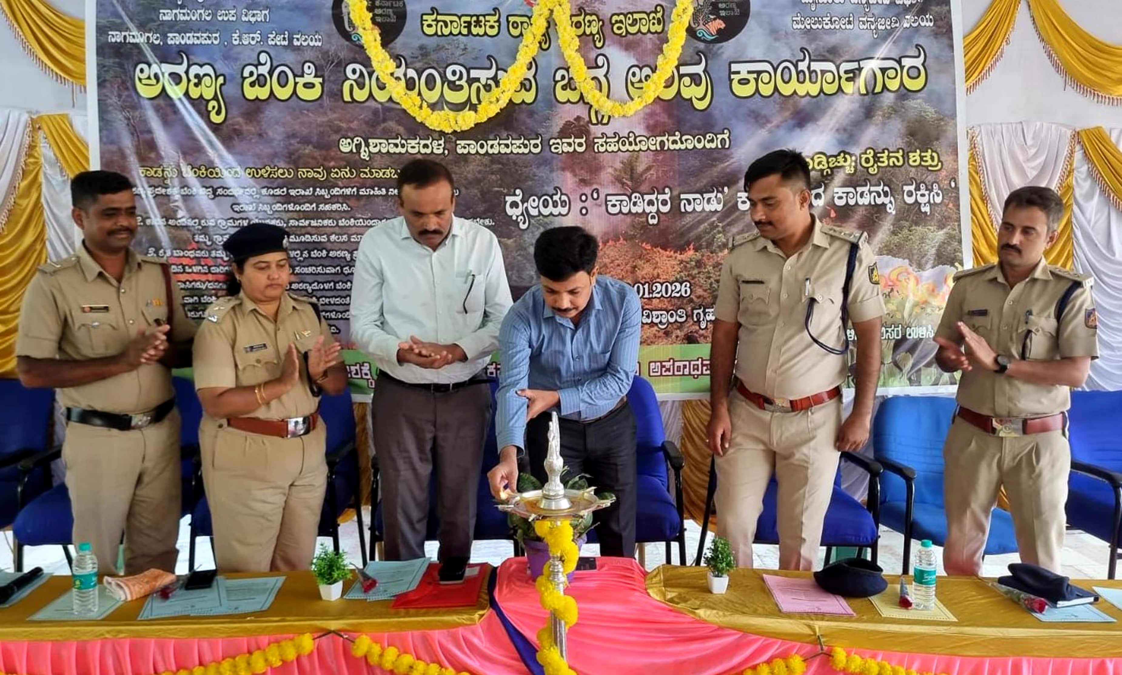 ಪ್ರತಿ ದಿನ ಬೆಳಗ್ಗೆ 6 ರಿಂದ ಸಂಜೆ 6 ತನಕ ಹದ್ದಿನ ಕಣ್ಣಿಟ್ಟು ಸಿಬ್ಬಂದಿ ಕಾವಲು ಕಾಯಬೇಕು. ಒಂದು ವೇಳೆ ಬೆಂಕಿ ಅವಘಡ ಸಂಭವಿಸಿದಾಗ ಅದನ್ನು ನಿಯಂತ್ರಿಸಲು ಅನುಕೂಲವಾಗುವಂತೆ ಬೆಂಕಿ ನಂದಿಸುವ ಬೋಯರ್ಸ್, ಸ್ಪ್ರೇಯರ್ಸ್, ಫೈರ್ ಬೇಯರ್ಸ್ಗಳನ್ನು ಸಿದ್ಧಗೊಳಿಸಲಾಗಿದೆ. ಇದೆಲ್ಲದರ ನಡುವೆ ಅರಣ್ಯ ಸಿಬ್ಬಂದಿ, ಫೈರ್ ವಾಚರ್ ಅಗ್ನಿಶಾಮಕ ದಳ ನಮಗೆ ನೆರವಾಗಲಿದೆ ಎಂದರು.ವೇದಿಕೆಯಲ್ಲಿ ವನ್ಯಜೀವಿವಲಯದ ಪಾಂಡವಪುರ ವಲಯ ಅರಣ್ಯಾಧಿಕಾರಿ ಎಂ.ಸಿ.ಯೋಗೇಶ್, ನಾಗಮಂಗಲ ಉಪವಿಭಾಗದ ಸಹಾಯಕ ಅರಣ್ಯಸಂರಕ್ಷಣಾಧಿಕಾರಿ ಶಿವರಾಮು, ಸಂಪನ್ಮೂಲ ವ್ಯಕ್ತಿ ಕಾಂತರಾಜು, ಕೆ.ಆರ್.ಪೇಟೆ ವಲಯ ಅರಣ್ಯಾಧಿಕಾರಿ ಅನಿತಾ, ಮೇಲುಕೋಟೆ ಅರಣ್ಯವಲಯದ ವಲಯ ಸಂರಕ್ಷಣಾಧಿಕಾರಿ ಪ್ರಶಾಂತ್, ಅರಣ್ಯಾಧಿಕಾರಿ ಕೋಟ್ರೇಶ್ ಸೇರಿದಂತೆ ಹಲವು ಅಧಿಕಾರಿಗಳು ಮತ್ತು ಸಿಬ್ಬಂದಿ ಪಾಲ್ಗೊಂಡಿದರು.