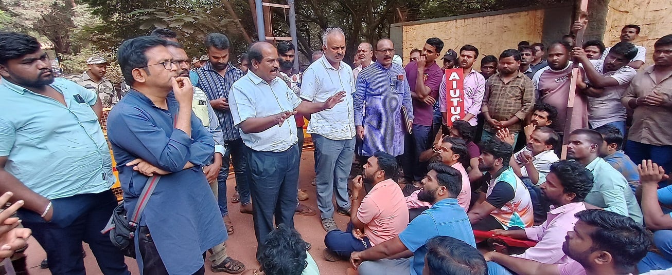 ಈ ಹಿನ್ನೆಲೆಯಲ್ಲಿ ಹೊಸ ಗುತ್ತಿಗೆದಾರರು ಕೂಡಲೆ ಕಾರ್ಖಾನೆ ಆರಂಭಿಸಿ, ಕಾರ್ಮಿಕರನ್ನು ಕೆಲಸಕ್ಕೆ ತೆಗೆದುಕೊಳ್ಳುವ ನಿಟ್ಟಿನಲ್ಲಿ ಮೂಲ ಮಾಲೀಕರಾದ ಎನ್ಎಂಡಿಸಿ ಸಂಸ್ಥೆಯು ಕ್ರಮಕೈಗೊಳ್ಳಬೇಕು. ಅಲ್ಲಿಯವರೆಗೂ ಈಗ ಕೆಲಸದಲ್ಲಿರುವ ಗುತ್ತಿಗೆ ಕಾರ್ಮಿಕರಿಗೆ ಅವರಿಗೆ ನೀಡಬೇಕಾದ ಕನಿಷ್ಠ ವೇತನ, ಪಿಎಫ್ ಮತ್ತಿತರ ಕಾನೂನಾತ್ಮಕ ಸೌಲಭ್ಯ ನೀಡಬೇಕು. ಕೆಲಸಕ್ಕೆ ತೆಗೆದುಕೊಳ್ಳದಿದ್ದಲ್ಲಿ, ದೊಡ್ಡ ಮಟ್ಟದ ಹೋರಾಟಕ್ಕೆ ಸಜ್ಜಾಗಬೇಕಾಗುತ್ತದೆ ಎಂದು ಎಚ್ಚರಿಸಿದರು.ಎಐಯುಟಿಯುಸಿ ರಾಜ್ಯ ಉಪಾಧ್ಯಕ್ಷ ಚಂದ್ರಶೇಖರ ಮೇಟಿ ಮಾತನಾಡಿ, ಬೇಡಿಕೆ ಈಡೇರುವವರೆಗೂ ಕಾರ್ಮಿಕರು ಒಗ್ಗಟ್ಟಾಗಿ ಹಂತ ಹಂತವಾಗಿ ಹೋರಾಟ ರೂಪಿಸಬೇಕು ಎಂದರು.