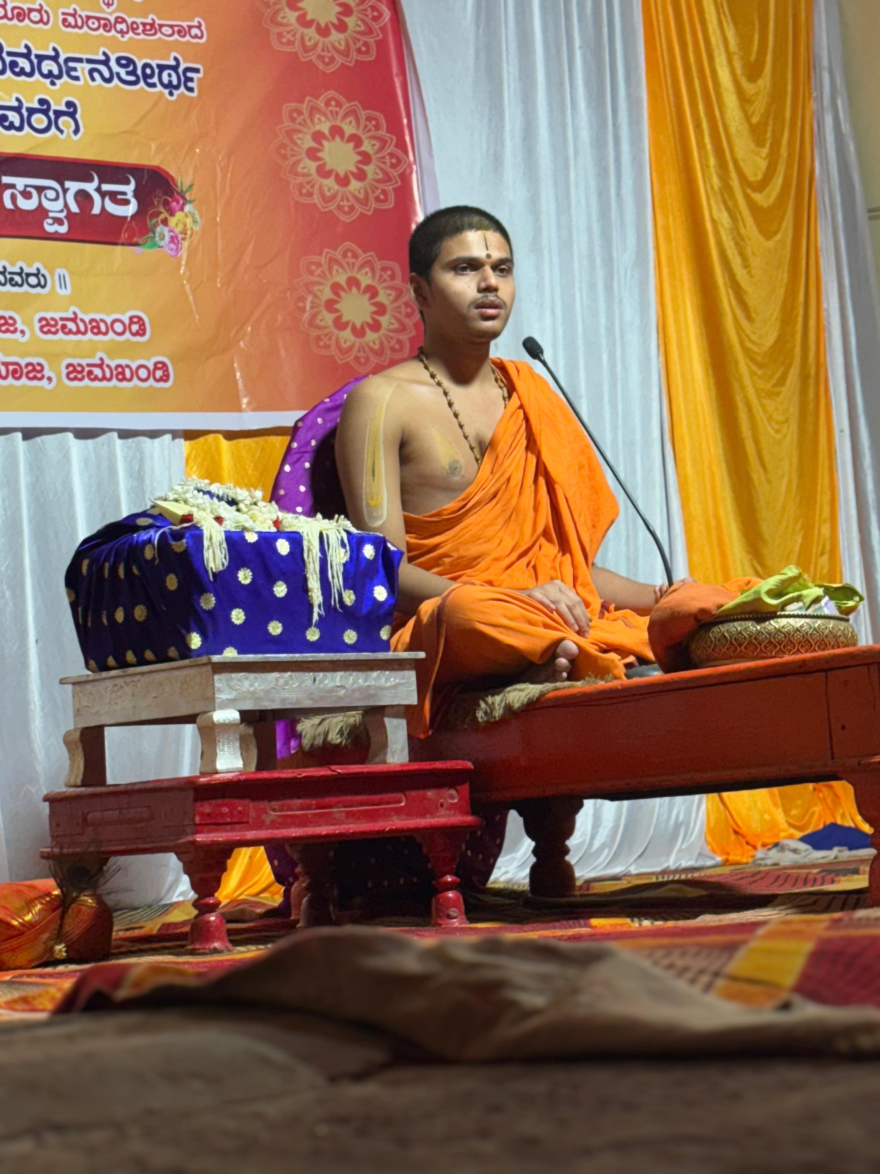 ಮೆರವಣಿಗೆ: ತೆರೆದ ಸಾಲಂಕೃತ ವಾಹನದಲ್ಲಿ ಲಕ್ಕನಕೆರೆಯ ವೆಂಕಟರಮಣ ದೇವಸ್ಥಾನ ದಿಂದ ಶ್ರೀಗಳನ್ನು ಪೂರ್ಣಕುಂಭ ಮೆರವಣಿಗೆ ಯ ಮೂಲಕ ಸ್ವಾಗತಿಸಲಾಯಿತು. ನ್ಯಾಯವಾದಿ ನಿತಿನ ಹುಲ್ಯಾಳಕರ ಅವರ ಮನೆಯಲ್ಲಿ ಸಂಜೆಯ ತೊಟ್ಟಿಲು ಸೇವೆ ನಡೆಯಿತು. ಸೋಮವಾರ ಬೆಳಗ್ಗೆ ಪಾದಪೂಜೆ, ರಘೋತ್ತಮರಾಯರ ಮಠದಲ್ಲಿ ಸಂಸ್ಥಾನ ಪೂಜೆ, ಮಹಾಪ್ರಸಾದ ಫಲ ಮಂತ್ರಾಕ್ಷತೆ ವಿತರಣೆ ಕಾರ್ಯಕ್ರಮಗಳು ನಡೆದವು. ಬ್ರಾಹ್ಮಣ ಸಮಾಜದ ಮುಖಂಡರು, ಮಹಿಳೆಯರು, ಯುವಕರು ಭಾಗವಹಿಸಿದ್ದರು.