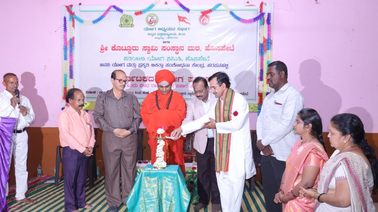 ಇಲ್ಲಿನ ಕೊಟ್ಟೂರುಸ್ವಾಮಿ ಮಠದಲ್ಲಿ ಹಂಪಿ ಕನ್ನಡ ವಿಶ್ವವಿದ್ಯಾನಿಲಯದ ಯೋಗ ಅಧ್ಯಯನ ವಿಭಾಗ, ಹರಪನಹಳ್ಳಿಯ ಜನನಿ ಯೋಗ ಮತ್ತು ಪ್ರಕೃತಿ ಚಿಕಿತ್ಸಾ ಆಸ್ಪತ್ರೆ ಹಾಗೂ ಸಂಶೋಧನಾ ಕೇಂದ್ರ, ಪತಂಜಲಿ ಯೋಗ ಸಮಿತಿಯಿಂದ ಸೋಮವಾರ ನಡೆದ ಯೋಗ ಪರಂಪರೆ ಕುರಿತು ರಾಜ್ಯಮಟ್ಟದ ವಿಚಾರ ಸಂಕಿರಣದ ಸಾನ್ನಿಧ್ಯ ವಹಿಸಿ ಆಶೀರ್ವಚನ ನೀಡಿದರು.ಯೋಗ ಇಂದು ಫ್ಯಾಷನ್ ಆಗಿ ಬಿಂಬಿತವಾಗಿದ್ದು, ಆಸನಗಳೇ ಯೋಗ ಎನ್ನುವ ತಪ್ಪುಕಲ್ಪನೆ ಬೆಳೆದಿದೆ. ಆದರೆ, ವಾಸ್ತವವಾಗಿ ನಿಯಮ, ಪ್ರತ್ಯಾಹಾರಗಳಿಲ್ಲದ ಯೋಗಾಸನ ನಿರರ್ಥಕ. ಭೌತಿಕ ಸಂತೋಷಗಳನ್ನು ಸರಿಯಾಗಿ ಅನುಭವಿಸಲೂ ಯೋಗ ಅನಿವಾರ್ಯ. ಜೀವನದ ಒತ್ತಡಗಳಿಂದ ಮುಕ್ತಿ ಪಡೆಯಲು ಯೋಗವೊಂದೇ ಸಾಧನ ಎಂದು ಅವರು ಹೇಳಿದರು.ಹಂಪಿ ಕನ್ನಡ ವಿವಿ ಕುಲಪತಿ ಡಾ. ಡಿ.ವಿ. ಪರಮಶಿವಮೂರ್ತಿ ಸಮಾರಂಭದ ಅಧ್ಯಕ್ಷತೆ ವಹಿಸಿ ಮಾತನಾಡಿ, ಇಡೀ ವಿಶ್ವ ಇಂದು ಯುದ್ಧೋನ್ಮಾದದಲ್ಲಿದ್ದರೆ, ಭಾರತ ನಿರ್ಲಿಪ್ತವಾಗಿ ಯೋಗದ ಮೂಲಕ ವಿಶ್ವಶಾಂತಿಯ ಸಂದೇಶವನ್ನು ಸಾರುತ್ತಿದೆ. ಕರ್ನಾಟಕ ಯೋಗಿಗಳ ತವರೂರು. ಇತಿಹಾಸದಲ್ಲಿ ಅಸಂಖ್ಯಾತ ಸಾಧಕರು ಯೋಗವನ್ನು ಸಾಧನೆಯ ಮಾರ್ಗವಾಗಿ ಕಂಡುಕೊಂಡಿದ್ದಾರೆ. ಇದು ದೇಹ ಮತ್ತು ಮನಸ್ಸನ್ನು ಬೆಸೆಯುವ ಕೊಂಡಿ ಎಂದು ಅವರು ಬಣ್ಣಿಸಿದರು.