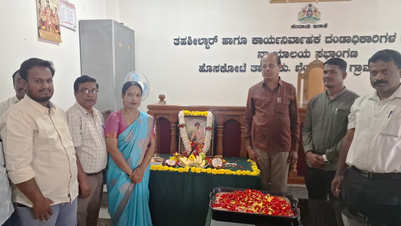 ರೆಡ್ಡಿ ಸಮುದಾಯದ ಮುಖಂಡ ನಿಖಿಲ್ ರೆಡ್ಡಿ, ಅನುಗೊಂಡನಹಳ್ಳಿ ಹಾಗೂ ಜಡಿಗೇನಹಳ್ಳಿ ಹೋಬಳಿ ಮಹಿಳಾ ಕಾಂಗ್ರೆಸ್ ಅಧ್ಯಕ್ಷೆ ಸೋಮಲಾಪುರ ಲತಾ ರೆಡ್ಡಿ, ಗ್ರೇಡ್ -2 ತಹಸೀಲ್ದಾರ್ ಪ್ರಭಾಕರ್, ತಾಲೂಕು ಸಮಾಜ ಕಲ್ಯಾಣಾಧಿಕಾರಿ ಸಿದ್ದರಾಜ್ ಸೇರಿದಂತೆ ವಿವಿಧ ಇಲಾಖೆ ಅಧಿಕಾರಿಗಳು ಹಾಜರಿದ್ದರು.ಫೋಟೋ : 19 ಹೆಚ್ಎಸ್ಕೆ 3ಹೊಸಕೋಟೆ ತಾಲೂಕು ಕಚೇರಿಯಲ್ಲಿ ತಾಲೂಕು ಆಡಳಿತದಿಂದ ಮಹರ್ಷಿ ವೇಮನ ಜಯಂತಿಯಲ್ಲಿ ತಹಸೀಲ್ದಾರ್ ವಿಜಯ್ ಕುಮಾರ್ ಮಹರ್ಷಿ ವೇಮನ ಅವರ ಭಾವಚಿತ್ರಕ್ಕೆ ಪುಷ್ಪ ನಮನ ಸಲ್ಲಿಸಿದರು.