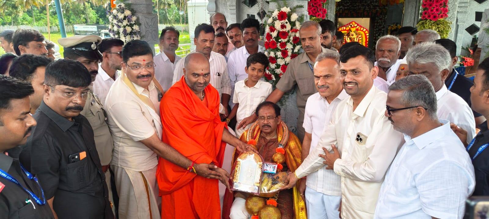 ಪೂರ್ವಜರು ಕಾಪಾಡಿಕೊಂಡು ಬಂದಂತಹ ಸಂಪ್ರದಾಯ, ಆಚಾರ ವಿಚಾರಗಳನ್ನು ಇಂದಿನ ಯುವ ಪೀಳಿಗೆ ಮುಂದುವರೆಸಬೇಕಿದೆ. ಇಲ್ಲವಾದರೆ ಮನುಕುಲ ಅಂತ್ಯ ಕಟ್ಟಿಟ್ಟಬುತ್ತಿ ಎಂದು ಗೃಹಸಚಿವ ಡಾ.ಜಿ. ಪರಮೇಶ್ವರ ತಿಳಿಸಿದರು.ತಾಲೂಕಿನ ಕೋಳಾಲ ಹೋಬಳಿ ಎಲೆರಾಂಪುರ ಗ್ರಾಪಂ ವ್ಯಾಪ್ತಿಯ ಕರಿದುಗ್ಗನಹಳ್ಳಿ ಮತ್ತು ಹನುಮಂತಯ್ಯನಪಾಳ್ಯದ ಗ್ರಾಮದೇವತೆ ಶ್ರೀದೊಡ್ಡಮ್ಮದೇವಿ ಸ್ಥಿರಬಿಂಬ ಪ್ರತಿಷ್ಠಾಪನಾ ಕುಂಭಾಭಿಷೇಕ ಮಹೋತ್ಸವ ಹಾಗೂ ಶ್ರೀಚಂಡಿಕಾ ಹೋಮ ಧಾರ್ಮಿಕ ಕಾರ್ಯಕ್ರಮದಲ್ಲಿ ಪಾಲ್ಗೊಂಡು ದೇವಿಕ ಪೂಜೆ ಸಲ್ಲಿಸಿ ಕಾರ್ಯಕ್ರಮ ಉದ್ಧೇಶಿಸಿ ಮಾತನಾಡಿದರು.ಮನುಷ್ಯನಲ್ಲಿ ಹಣ ಮತ್ತು ಎಲ್ಲಾ ರೀತಿಯ ಸೌಲಭ್ಯ ಇದ್ದ ಮಾತ್ರಕ್ಕೆ ದೇವಾಲಯ ನಿರ್ಮಿಸಲು ಸಾಧ್ಯವಿಲ್ಲ. ಅದಕ್ಕೆ ದೇವಿಯ ಅನುಗ್ರಹ ಕೂಡ ಬೇಕಿದೆ. ನನ್ನ ತಾಯಿ ಕಲಿಸಿದ ಸಂಸ್ಕೃತಿ, ಸಂಪ್ರಾದಾಯದಿಂದ ಇಂದು ಉನ್ನತ ಸ್ಥಾನದಲ್ಲಿದ್ದೇನೆ. ಉದ್ಯಮಿ ನಿಲೇಶ್ ಮತ್ತು ಶಶಿಧರ್ ದುಬೈನಲ್ಲಿದ್ದರೂ ಉದ್ಯಮದ ಜೊತೆಗೆ ಬಡ ಮಕ್ಕಳ ಶೈಕ್ಷಣಿಕ ಪ್ರಗತಿಗೆ ಸಹಕಾರ ನೀಡುತ್ತಾ ಸಂಸ್ಕೃತಿ, ಆಚರಣೆಯನ್ನು ಮರೆಯದಿರುವುದು ಖುಷಿಯ ವಿಚಾರ ಎಂದು ಶ್ಲಾಘೀಸಿದರು.ತುಮಕೂರು ಗ್ರಾಮಾಂತರ ಶಾಸಕ ಸುರೇಶ್ಗೌಡ ಮಾತನಾಡಿ, ರಾಜಕೀಯದಲ್ಲಿ ಟೀಕೆ ಟಿಪ್ಪಣಿಗಳು ಸಹಜ, ರಾಜಕೀಯ ಹೊರತುಪಡಿಸಿದರೆ ನಾನು ಮತ್ತೆ ಗೃಹ ಸಚಿವರು ಸಹೋದರರಿದ್ದಂತೆ ಎಂದರು.ಕಾರದೇಶ್ವರ ಮಠದ ವೀರ ಬಸವಲಿಂಗ ಸ್ವಾಮೀಜಿ, ಸಿದ್ದರಬೆಟ್ಟದ ಶ್ರೀವೀರಭದ್ರ ಶಿವಾಚಾರ್ಯ ಸ್ವಾಮೀಜಿ, ಎಲೆರಾಂಪುರ ಡಾ.ಹನುಮಂತನಾಥ ಸ್ವಾಮೀಜಿ, ನರಸೀಪುರ ವಿರಕ್ತಮಠದ ಶ್ರೀಗೌರಿಶಂಕರ ಸ್ವಾಮೀಜಿ, ಅಟವಿ ಮಠದ ಚೆನ್ನಬಸವೇಶ್ವರ ಸ್ವಾಮೀಜಿ, ಬಸವ ರಮಾನಂದ ಸ್ವಾಮೀಜಿ, ಕುಣಿಗಲ್ ಹರಿಶಂಕರ ಮಠದ ಸಿದ್ದರಾಮ ಚೈತನ್ಯ ಸ್ವಾಮೀಜಿ ದಿವ್ಯ ಸಾನಿಧ್ಯದಲ್ಲಿ 3 ದಿನದ ಧಾರ್ಮಿಕ ಪೂಜಾ ಕಾರ್ಯಕ್ರಮ ಯಶಸ್ವಿ ಕಂಡಿತು.ಶನಿವಾರ ಸಂಜೆ ಗ್ರಾಮಕ್ಕೆ ಭೇಟಿ ನೀಡಿದ ಸಿದ್ದಗಂಗಾ ಮಠಾಧ್ಯಕ್ಷ ಸಿದ್ದಲಿಂಗ ಸ್ವಾಮೀಜಿ ಮಾತನಾಡಿ, ಭಾರತೀಯ ಸಂಸ್ಕೃತಿಯಲ್ಲಿ ಹಿಂದೂ ದೇವಾಲಯಗಳಿಗೆ ವಿಶೇಷ ಸ್ಥಾನವಿದೆ. ಆದ್ದರಿಂದ ನಮ್ಮಲ್ಲಿ ಇಡೀ ವಿಶ್ವದಲ್ಲಿಯೇ ಹೆಚ್ಚು ದೇವಾಲಯ ಇದೆ. ನಿತ್ಯವೂ ನಾವು ಮನಸ್ಸನ್ನು ಶುದ್ಧವಾಗಿಟ್ಟುಕೊಳ್ಳಲು ದೇವಾಲಯಗಳಿಗೆ ಬರಬೇಕಿದೆ. ನಾವು ದೇವರನ್ನು ಪೂಜಿಸುವಂತೆ ನಮ್ಮ ಹೆತ್ತ ತಾಯಿಯನ್ನು ಆರಾಧಿಸಬೇಕು ಎಂದರು.ಮೈಸೂರಿನ ಸುತ್ತೂರು ಮಠದ ಶಿವರಾತ್ರಿ ದೇಶಿಕೇಂದ್ರ ಸ್ವಾಮೀಜಿ ಮಾತನಾಡಿ, ಲೌಕಿಕ ಮತ್ತು ಆಧ್ಯಾತ್ಮಿಕ ಎರಡನ್ನು ನಮ್ಮ ಬದುಕಿನಲ್ಲಿ ನಾವು ಅನುಸರಿಸಬೇಕಿದೆ. ಮನಸ್ಸನ್ನು ಸ್ಥಿರವಾಗಿಟ್ಟುಕೊಳ್ಳಬೇಕು ಚಂಚಲವಾಗಲು ಬಿಡಬಾರದು, ಭಗವಂತನ ಸೇವೆಯನ್ನು ಎಲ್ಲರೂ ಶ್ರದ್ಧೆ ಮತ್ತು ಭಕ್ತಿಯಿಂದ ಮಾಡಬೇಕಿದೆ ಎಂದರು.ತುಮಕೂರಿನ ವಿದ್ಯೋದಯ ಕಾಲೇಜಿನ ಕಾರ್ಯದರ್ಶಿ ಪ್ರದೀಪ್, ಉದ್ಯಮಿ ಶಶಿಧರ್, ಶಿಕ್ಷಕ ಹರೀಶ್,ವಿಜಯ್, ಗ್ರಾಮದ ಹಿರಿಯ ಮುಖಂಡ ಹನುಮಂತರಾಯಪ್ಪ ಸೇರಿದಂತೆ ಗ್ರಾಮದ ಗೌಡರು, ಹಲವು ಸಂಘ ಸಂಸ್ಥೆಗಳ ಪದಾಧಿಕಾರಿಗಳು ಸೇರಿದಂತೆ ಹಲವು ಸ್ಥಳೀಯ ಮುಖಂಡರು ಹಾಜರಿದ್ದರು.ಕ್ಯಾಪ್ಶನ್.....ಗೃಹ ಸಚಿವ ಡಾ. ಜಿ. ಪರಮೇಶ್ವರ್ ಅವರನ್ನು ಗೌರವಿಸಲಾಯಿತು.ಕ್ಯಾಪ್ಶನ್...2ಹನುಮಂತಯ್ಯನಪಾಳ್ಯಕ್ಕೆ ಭೇಟಿ ನೀಡಿದ ಸುತ್ತೂರು ಹಾಗೂ ಸಿದ್ಧಗಂಗಾ ಶ್ರೀಗಳಿಗೆ ಭಕ್ತಿ ಸಮರ್ಪಣೆ