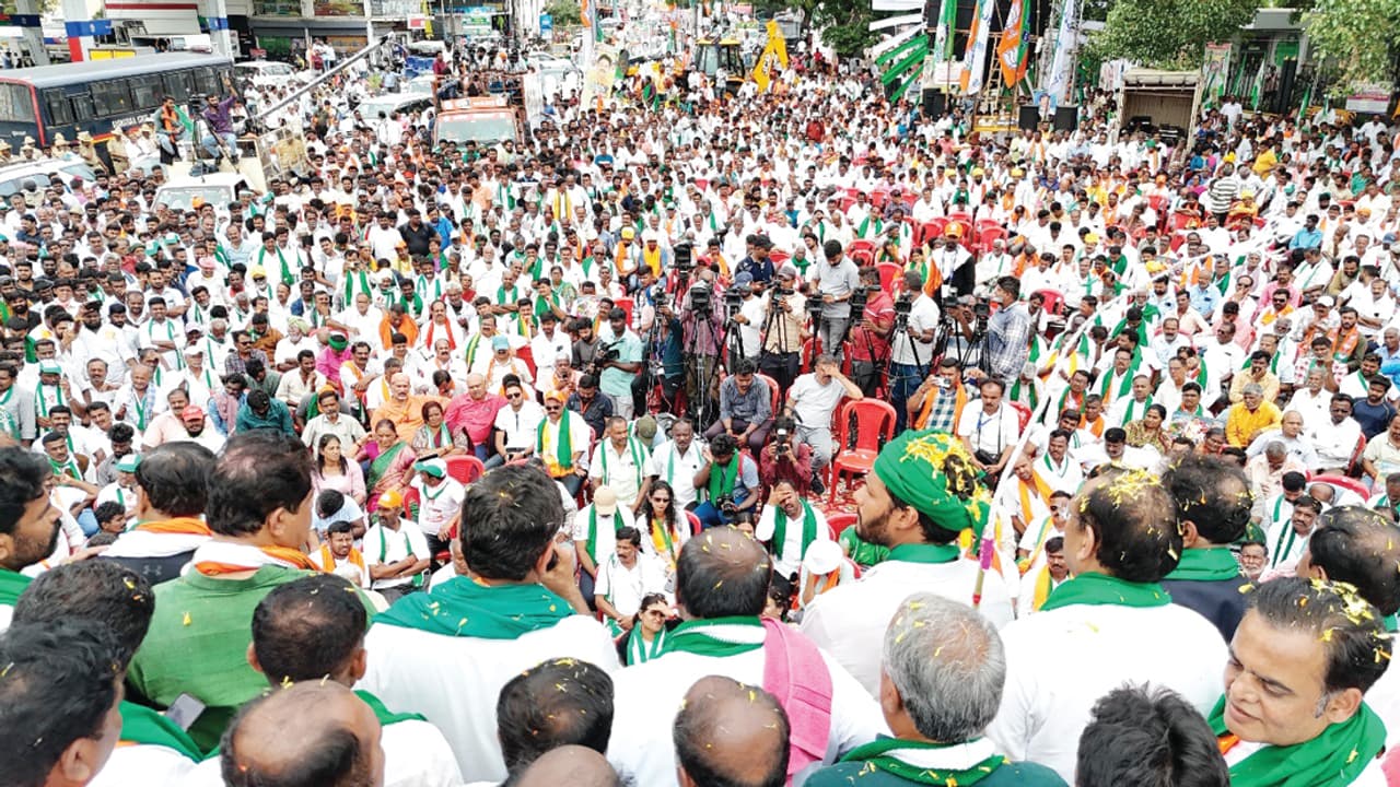 ಬಿಜೆಪಿ ರಾಜ್ಯಾಧ್ಯಕ್ಷ ಬಿ.ವೈ.ವಿಜಯೇಂದ್ರ, ಜೆಡಿಎಸ್ ಯುವ ಘಟಕದ ಅಧ್ಯಕ್ಷ ನಿಖಿಲ್ ಕುಮಾರಸ್ವಾಮಿ ನೇತೃತ್ವದಲ್ಲಿ ಸಾಗಿದ ಪಾದಯಾತ್ರೆಗೆ ಭಾರೀ ಜನಬೆಂಬಲ ವ್ಯಕ್ತವಾಯಿತು. ಮಧ್ಯಾಹ್ನದ ವೇಳೆಗೆ ನಗರದ ಸಕ್ಕರೆ ವೃತ್ತದಲ್ಲಿ ಕೇಂದ್ರ ಸಚಿವ ಎಚ್.ಡಿ.ಕುಮಾರಸ್ವಾಮಿ ಕೂಡ ಪಾದಯಾತ್ರೆಗೆ ಸೇರ್ಪಡೆಯಾದರು.