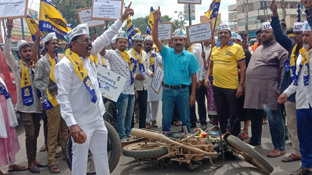 ಅಸಮರ್ಪಕ ಗ್ಯಾರಂಟಿ ಯೋಜನೆಗಳನ್ನು ಜಾರಿ ಮಾಡಿ ಸಂಕಷ್ಟಕ್ಕೆ ಸಿಲುಕಿರುವ ಕಾಂಗ್ರೆಸ್ ಸರ್ಕಾರ ಪೆಟ್ರೋಲ್, ಡೀಸೆಲ್ ಮೇಲಿನ ತೆರಿಗೆ ಏರಿಕೆ ಮಾಡುವ ಮೂಲಕ ಜನಸಾಮಾನ್ಯರ ಮೇಲೆ ತೆರಿಗೆ ಭಾರವನ್ನು ಹೊರಿಸಿದೆ ಎಂದು ಕಿಡಿಕಾರಿದರು.ರಾಜ್ಯ ಕಾರ್ಯದರ್ಶಿ ಸುರೇಶ್ ಮಾತನಾಡಿ, ದೆಹಲಿಯ ಮುಖ್ಯಮಂತ್ರಿ ಅರವಿಂದ ಕೇಜ್ರಿವಾಲ್ ಅವರ ಜನಪ್ರಿಯ ಯೋಜನೆಗಳನ್ನು ನಕಲು ಮಾಡಿದ ಸಿದ್ದರಾಮಯ್ಯ ಅಧ್ಯಯನ ರಹಿತವಾಗಿ ತರಾತುರಿಯಲ್ಲಿ ಅನುಷ್ಠಾನಗೊಳಿಸಿದ್ದರಿಂದ, ನಿರಂತರವಾಗಿ ನಡೆಯುತ್ತಿರುವ ಭ್ರಷ್ಟಾಚಾರ ತಡೆಯುವಲ್ಲಿ ವಿಫಲಗೊಂಡಿರುವುದರಿಂದ ರಾಜ್ಯ ಸರ್ಕಾರದ ಬೊಕ್ಕಸ ಖಾಲಿಯಾಗಿದೆ. ಹಾಗಾಗಿ ಮದ್ಯ ಮತ್ತು ಪೆಟ್ರೋಲ್, ಡೀಸೆಲ್ ದರವನ್ನು ಭಾರಿ ಪ್ರಮಾಣದಲ್ಲಿ ಏರಿಕೆ ಮಾಡಲಾಗಿದೆ ಎ₹ದರು.