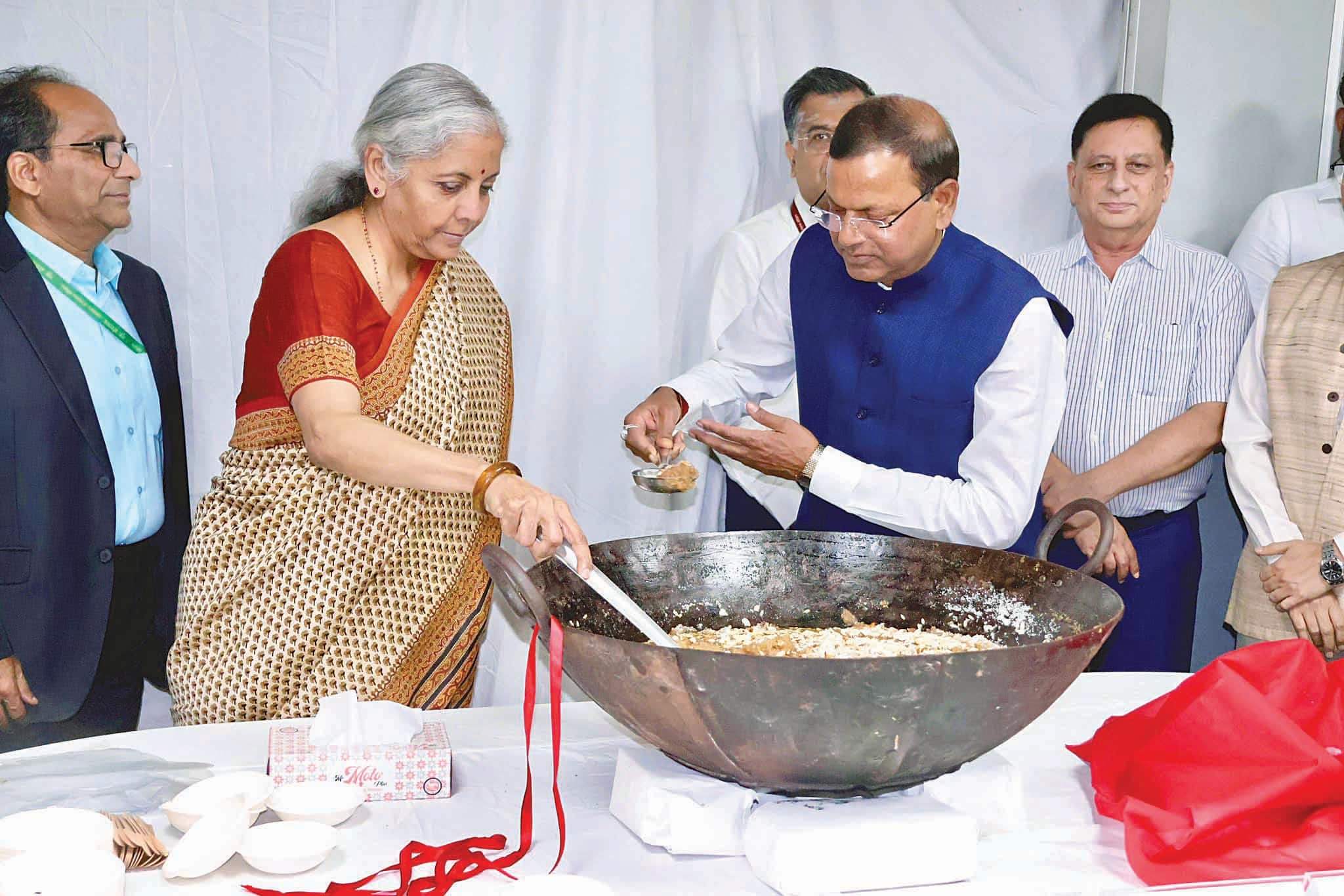 ಬಜೆಟ್ ಸಿದ್ಧತೆ ಪೂರ್ಣ: ಹಲ್ವಾ ಸಮಾರಂಭದಲ್ಲಿ ಸಚಿವೆ ನಿರ್ಮಲಾ ಭಾಗಿ