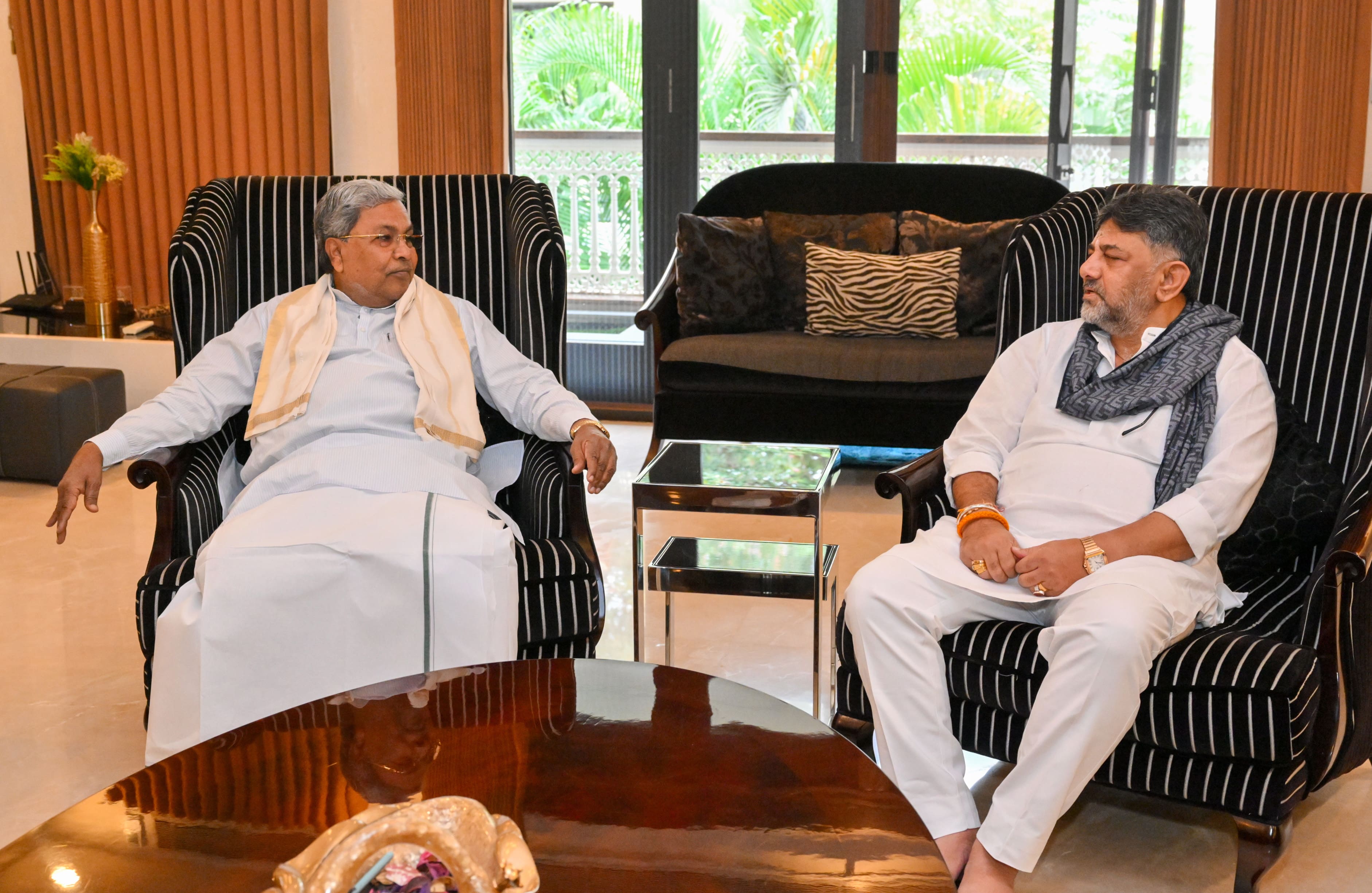 ಮೊದಲಿಗೆ ಸದಾಶಿವನಗರದ ಡಿ.ಕೆ.ಶಿವಕುಮಾರ್ ಅವರ ನಿವಾಸದಲ್ಲಿ ಉಪಹಾರ ಸೇವಿಸಿ ಸುದ್ದಿಗಾರರೊಂದಿಗೆ ಮಾತನಾಡಿದ ಸಿದ್ದರಾಮಯ್ಯ, ‘ಹೈಕಮಾಂಡ್ ನಿರ್ಧಾರದಂತೆ ನಡೆದುಕೊಳ್ಳುವುದಾಗಿ ಮೊದಲಿನಿಂದಲೂ ಹೇಳುತ್ತಿದ್ದೇನೆ. ನಾನು ಮತ್ತು ಡಿ.ಕೆ.ಶಿವಕುಮಾರ್ ಯಾವಾಗಲೂ ಒಟ್ಟಾಗಿದ್ದೇವೆ. ಇಂದು, ಮೊನ್ನೆ ಅಂತಲ್ಲ ಯಾವಾಗಲೂ ಜತೆಯಾಗಿ ಕೆಲಸ ಮಾಡುತ್ತಿದ್ದೇವೆ. ನಾವು ಎಂದಿಗೂ ಸಹೋದರರೇ. ಒಂದೇ ಪಕ್ಷ, ಒಂದೇ ಸಿದ್ಧಾಂತದ ಅಡಿ ಕೆಲಸ ಮಾಡುತ್ತಿದ್ದು, 2028ಕ್ಕೂ ಒಟ್ಟಿಗೆ ಕೆಲಸ ಮಾಡಿ ಪಕ್ಷವನ್ನು ಮತ್ತೆ ಅಧಿಕಾರಕ್ಕೆ ತರುತ್ತೇವೆ’ ಎಂದು ಹೇಳಿದರು.ಡಿ.ಕೆ.ಶಿವಕುಮಾರ್ ಯಾವಾಗ ಮುಖ್ಯಮಂತ್ರಿ ಆಗುತ್ತಾರೆ ಎಂಬ ಪ್ರಶ್ನೆಗೆ, ‘ಹೈಕಮಾಂಡ್ ಹೇಳಿದಾಗ ಶಿವಕುಮಾರ್ ಮುಖ್ಯಮಂತ್ರಿ ಆಗುತ್ತಾರೆ’ ಎಂದ ಅವರು, ಸಂಪುಟ ಪುನರ್ರಚನೆ ಕುರಿತು ಪ್ರಶ್ನೆಗೂ ಇದೇ ಉತ್ತರ ನೀಡಿದರು.