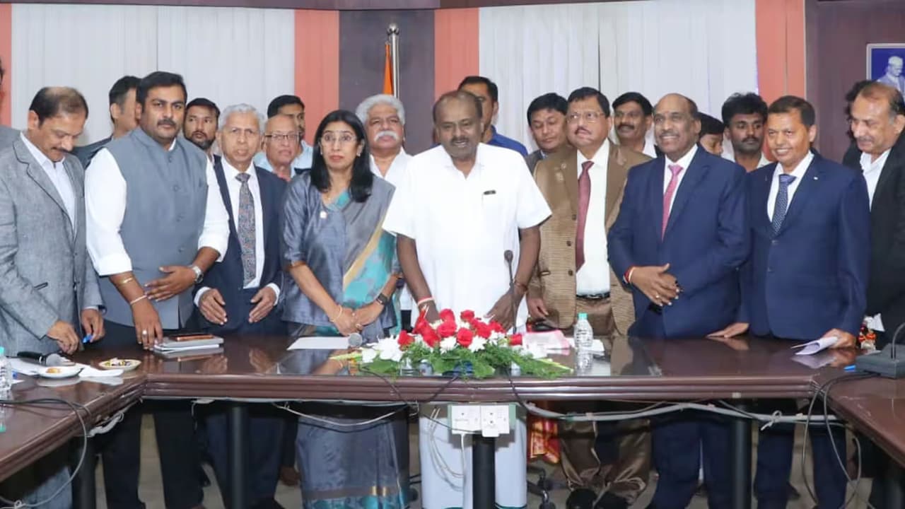 ಬುಧವಾರ ನಗರದ ಎಚ್ಎಂಟಿ ಭವನದಲ್ಲಿನ ತಮ್ಮ ಕಚೇರಿಯಲ್ಲಿ ಕರ್ನಾಟಕ ಕೈಗಾರಿಕೆ ಮತ್ತು ವಾಣಿಜ್ಯ ಮಂಡಳಿ (ಎಫ್ಕೆಸಿಸಿಐ) ಪದಾಧಿಕಾರಿಗಳು ಮತ್ತು ಕೈಗಾರಿಕೋದ್ಯಮಿಗಳೊಂದಿಗೆ ಮಹತ್ವದ ಸಭೆ ನಡೆಸಿದರು.