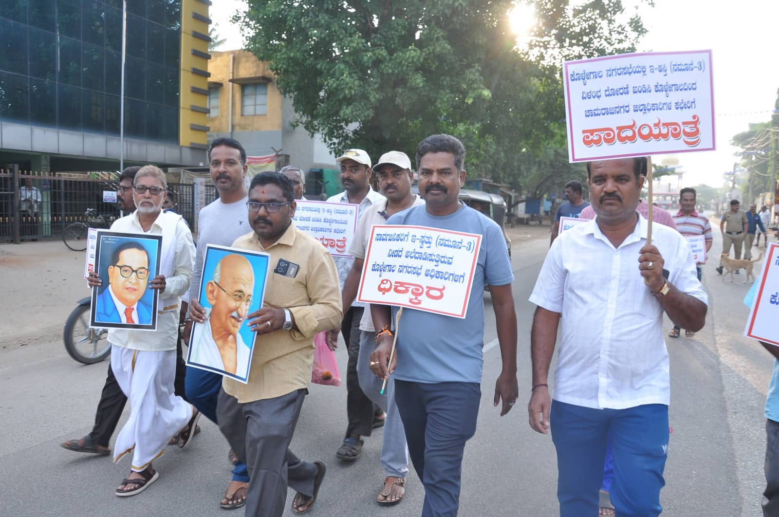 ಶುಕ್ರವಾರ ಡಾ. ಬಿ .ಆರ್. ಅಂಬೇಡ್ಕರ್ ಅವರ ಪ್ರತಿಮೆಗೆ ಮಾಲಾರ್ಪಣೆ ಮಾಡಿ ಪಾದಯಾತ್ರೆ ಆರಂಭಿಸಿದ್ದರು. ನಗರಸಭೆ ಮಾರ್ಗವಾಗಿ ದೇವಲ ಮಹರ್ಷಿ ವೃತ್ತದ ಬಳಿ ಮಹರ್ಷಿ ಪ್ರತಿಮೆಗೆ ಮಾಲಾರ್ಪಣೆ ಮಾಡಿ ಪಾದಯಾತ್ರೆ ಮುಂದುವರಿಸಲು ಅಣಿಯಾದರು. ಇವರ ಪಾದಯಾತ್ರೆಗೆ ನಿವೃತ್ತ ರೈಲ್ವೆ ಇಲಾಖೆ ನೌಕರ ನಿಂಗರಾಜು, ನಗರಸಭೆ ಮಾಜಿ ಸದಸ್ಯ ಕೆ.ಕೆ. ಮೂರ್ತಿ, ಸೋಮು, ವಾಸಿಕ್, ಬಾಸ್ಕರ್, ಲಿಂಗರಾಜು, ಮರಿಸಿದ್ದಯ್ಯ, ಶಂಕರ್, ಕರಣ್ ಸೇರಿ ಇನ್ನಿತರರು ಸಾಥ್ ನೀಡಿದರು. ಮಹರ್ಷಿ ವೃತ್ತದಿಂದ ಪಾದಯಾತ್ರೆ ಮುಂದುವರಿಸಲು ರೇಷ್ಮೆ ಇಲಾಖೆ ಬಳಿ ತೆರಳುತ್ತಿದ್ದ ಪ್ರತಿಭಟನಾಕಾರರನ್ನು ಪೊಲೀಸರು ತಡೆದು ಪಾದಯಾತ್ರೆಗೆ ಅನುಮತಿ ಇಲ್ಲ, ಸ್ಥಳಕ್ಕೆ ನಗರಸಭೆ ಆಯುಕ್ತರು ಬರುತ್ತಾರೆ, ನಿಮ್ಮ ಸಮಸ್ಯೆ ಬಗೆಹರಿಸಿಕೊಳ್ಳಿ, ಸ್ವಲ್ಪ ಕಾಲಾವಕಾಶ ನೀಡಿ ಎಂದು ಪೊಲೀಸರು ಪ್ರತಿಭಟನಾಕಾರರರ ಜೊತೆ ಚರ್ಚಿಸುತ್ತಿದ್ದಂತೆ ಸ್ಥಳಕ್ಕೆ ನಗರಸಭೆ ಆಯುಕ್ತೆ ರುದ್ರಮ್ಮ ಶರಣಯ್ಯ ಆಗಮಿಸಿದರು. 1 ತಿಂಗಳೊಳಗೆ ಪ್ರಾಮಾಣಿಕವಾಗಿ ಸಮರ್ಪಕ ಇ- ಸ್ವತ್ತು ವಿತರಣೆಗೆಕ್ರಮವಹಿಸುವೆ, ಬಾಕಿ ಉಳಿದಿರುವ ಇ- ಸ್ವತ್ತು ತುರ್ತು ವಿತರಣೆಗೂ ಹಂತ ಹಂತವಾಗಿ ಕ್ರಮವಹಿಸುವುದಾಗಿ ಭರವಸೆ ನೀಡಿದ ಹಿನ್ನೆಲೆ ಪಾದಯಾತ್ರೆ ಮೊಟಕುಗೊಳಿಸಲಾಯಿತು.