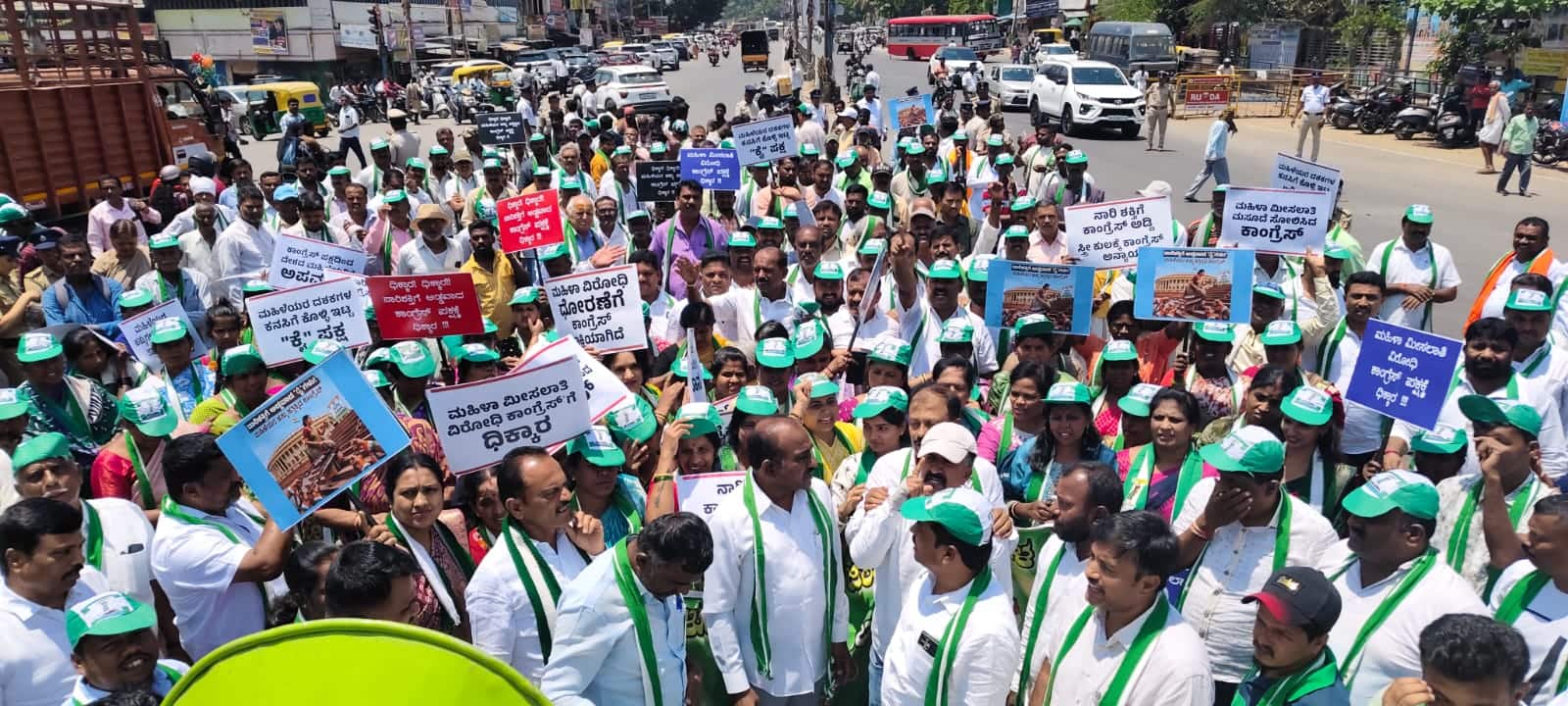 ಲೋಕಸಭೆಯಲ್ಲಿ ಮಹಿಳಾ ಮೀಸಲು ಮಸೂದೆಯನ್ನು ವಿರೋಧ ವ್ಯಕ್ತಪಡಿಸಿದ ಕಾಂಗ್ರೆಸ್ ನೇತೃತ್ವದ ಇಂಡಿಯಾ ಒಕ್ಕೂಟದ ವಿರುದ್ಧ ಜೆಡಿಎಸ್ ಮುಖಂಡರು -ಕಾರ್ಯಕರ್ತರು ನಗರದಲ್ಲಿ ಮಂಗಳವಾರ ಪ್ರತಿಭಟನೆ ನಡೆಸಿದರು.ನಗರದ ಐಜೂರು ವೃತ್ತದಲ್ಲಿ ಸೇರಿದ ಜೆಡಿಎಸ್ ಪಕ್ಷದ ತಾಲೂಕು ಅಧ್ಯಕ್ಷರು-ಉಪಾಧ್ಯಕ್ಷರು, ಪದಾಧಿಕಾರಿಗಳು, ಸ್ಥಳೀಯ ಸಂಸ್ಥೆಗಳ ಪ್ರತಿನಿಧಿಗಳು, ವಿವಿಧ ಘಟಕಗಳ ಪದಾಧಿಕಾರಿಗಳು ಹಾಗೂ ಮಹಿಳಾ ಕಾರ್ಯಕರ್ತೆಯರು ಮಹಿಳಾ ಮಸೂದೆ ವಿರೋಧಿಸುವ ಮೂಲಕ ಕಾಂಗ್ರೆಸ್ ಪಕ್ಷ ಮಹಿಳೆಯರಿಗೆ ಅಗೌರವ ತೋರಿದೆ ಎಂದು ಟೀಕಿಸಿದರು.ಪ್ರತಿಭಟನಾಕಾರರನ್ನು ಉದ್ದೇಶಿಸಿ ಮಾತನಾಡಿದ ಜೆಡಿಎಸ್ ರಾಜ್ಯ ಕೋರ್ ಕಮಿಟಿ ಸದಸ್ಯರು ಆದ ಮಾಜಿ ಶಾಸಕ ಎ.ಮಂಜುನಾಥ್, 1996ರಲ್ಲಿ ಎಚ್.ಡಿ.ದೇವೇಗೌಡರ ನೇತೃತ್ವದ ಸರ್ಕಾರವು ಮಹಿಳೆಯರಿಗೆ ಶೇ.33 ಮೀಸಲಾತಿ ನೀಡಲು ಕ್ರಾಂತಿಕಾರಿ ಮಸೂದೆ ಮಂಡಿಸಿತ್ತು. ಅಂದು ಕಾಂಗ್ರೆಸ್ ಮತ್ತು ಅದರ ಸಹಚರರು ಸಂಘಟಿತವಾಗಿ ಆ ಪ್ರಯತ್ನವನ್ನು ವಿಫಲಗೊಳಿಸಿದ್ದರು. ಈ ಅನ್ಯಾಯವನ್ನು ಸರಿಪಡಿಸಲು ಪ್ರಧಾನಮಂತ್ರಿ ನರೇಂದ್ರ ಮೋದಿ ಅವರು ದಿಟ್ಟ ಹೆಜ್ಜೆ ಇರಿಸಿದ್ದರು. ಈಗಲೂ ಕಾಂಗ್ರೆಸ್ ನೇತೃತ್ವದ ಇಂಡಿಯಾ ಕೂಟದ ಪಕ್ಷಗಳು ಮಸೂದೆಗೆ ತಡೆಯೊಡ್ಡಿವೆ ಎಂದು ಆಕ್ರೋಶ ವ್ಯಕ್ತಪಡಿಸಿದರು. ಕಾಂಗ್ರೆಸ್ ಅವರು ಮಹಿಳಾ ವಿರೋಧಿಗಳು. ಹೆಣ್ಣು ಮಕ್ಕಳು ರಾಜಕೀಯಕ್ಕೆ ಬಾರದಂತೆ ತಡೆಯುತ್ತಿದ್ದಾರೆ. ಕೇವಲ ಒಂದು ಕುಟುಂಬದ ಮಹಿಳೆಯರು ಅಧಿಕಾರದಲ್ಲಿರಬೇಕೆಂಬ ದುರಾಸೆ ಹೊಂದಿದ್ದಾರೆ. ಮಸೂದೆಯನ್ನು ಲೋಕಸಭೆಯಲ್ಲಿ ಮಂಡಿಸಿದಾಗ ವಿರೋಧಿಸುವ ಮೂಲಕ ತನ್ನ ನೀಚ ಸಂಸ್ಕೃತಿ ಪ್ರದರ್ಶಿಸಿದೆ. ಆ ಮೂಲಕ ಪ್ರಜಾಪ್ರಭುತ್ವ ಹಾಗೂ ಮಹಿಳೆಯರಿಗೆ ಅವಮಾನ ಮಾಡಿದೆ . ಮಹಿಳಾ ಮೀಸಲಾತಿಗೆ ಅಡ್ಡಲಾಗಿರುವ ಕಾಂಗ್ರೆಸ್ ವಿರುದ್ಧ ರಾಜ್ಯಾದ್ಯಂತ ಹೋರಾಟ ನಡೆಸಲಾಗುವುದು ಎಂದು ಹೇಳಿದರು.ಪ್ರಧಾನಿ ನರೇಂದ್ರ ಮೋದಿ ದಿಟ್ಟ ನಿರ್ಧಾರಗಳೊಂದಿಗೆ ನಾರಿಶಕ್ತಿಗೆ ನ್ಯಾಯ ದೊರಕಿಸುವ ನಿಟ್ಟಿನಲ್ಲಿ ಶೇ.33ರಷ್ಟು ಮಹಿಳಾ ಮೀಸಲಾತಿಯನ್ನು ಅನುಷ್ಠಾನಕ್ಕೆ ತರಲು ಮುಂದಾಗಿದ್ದರು. ಅದರಂತೆ ದೇಶದ ಮಹಿಳೆಯರು ಖುಷಿಯಲ್ಲಿದ್ದರು. ಆದರೆ ಮಸೂದೆ ವಿರೋಧಿಸಿರುವುದು ಕಾಂಗ್ರೆಸ್ನ ಮಹಿಳಾ ವಿರೋಧಿ ನೀತಿಗೆ ಸಾಕ್ಷಿಯಾಗಿದೆ. ಕಾಂಗ್ರೆಸ್ ನಾಯಕರು ಈ ಮಸೂದೆ ವಿರೋಧಿಸಿ ಜಯ ಸಾಧಿಸಿರುವುದಾಗಿ ಭಾವಿಸುತ್ತಿದ್ದರೂ, ಮುಂದಿನ ದಿನಗಳಲ್ಲಿ ಜನರು ತಕ್ಕ ಪಾಠ ಕಲಿಸುತ್ತಾರೆ ಎಂದು ಎಚ್ಚರಿಕೆ ನೀಡಿದರು.ಶತಮಾನದ ದುರಂತ: ಜೆಡಿಎಸ್ ಜಿಲ್ಲಾಧ್ಯಕ್ಷ ಜಯಮುತ್ತು ಮಾತನಾಡಿ, ಮಹಿಳೆಯರಿಗೆ ರಾಜಕೀಯದಲ್ಲಿ ಶೇಕಡ 33ರಷ್ಟು ಮೀಸಲಾತಿ ಒದಗಿಸಬೇಕೆಂಬುದು ದಶಕಗಳ ಬೇಡಿಕೆ. ಮಹಿಳೆ ಸಬಲೀಕರಣಗೊಂಡರೆ ದೇಶ ಸಬಲೀಕರಣಗೊಳ್ಳುತ್ತದೆ ಎಂಬುದು ಮಸೂದೆಯ ಆಶಯ. ಆದರೆ, ದಶಕಗಳಿಂದಲೂ ಮಹಿಳಾ ವಿರೋಧಿ ನೀತಿಯನ್ನು ಅನುಸರಿಸುತ್ತಿರುವ ಕಾಂಗ್ರೆಸ್ ತನ್ನ ನಿಜ ಬಣ್ಣವನ್ನು ಮತ್ತೊಮ್ಮೆ ಪ್ರದರ್ಶಿಸಿದೆ ಎಂದು ಟೀಕಿಸಿದರು.ಪ್ರಧಾನಿ ಮೋದಿ ನೇತೃತ್ವದ ಎನ್ಡಿಎ ಸರ್ಕಾರ ಮಸೂದೆಯ ಅಂಗೀಕಾರಕ್ಕೆ ಪ್ರಾಮಾಣಿಕ ಪ್ರಯತ್ನ ಮಾಡಿತು. ಆದರೆ, 21ನೇ ಶತಮಾನದ ಭಾರತದಲ್ಲಿ ಮಹಿಳೆಯರನ್ನು ರಾಜಕೀಯ ಕ್ಷೇತ್ರದಿಂದ ಕಾಂಗ್ರೆಸ್ ಪಕ್ಷ ದೂರವಿಟ್ಟಿದ್ದು, ಶತಮಾನದ ದುರಂತ. ಇದಕ್ಕಾಗಿ ಆ ಪಕ್ಷ ಮಹಿಳೆಯರಲ್ಲಿ ಕ್ಷಮೆ ಕೇಳಬೇಕು ಎಂದು ಒತ್ತಾಯಿಸಿದರು.ಪ್ರತಿಭಟನೆಯಲ್ಲಿ ಜೆಡಿಎಸ್ ಪಕ್ಷದ ರಾಮನಗ