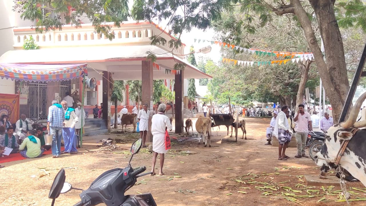 ಬಂಡಿದಾರಿಗಾಗಿ ಆಗ್ರಹಿಸಿ ಜಾನುವಾರುಗಳೊಂದಿಗೆ ಪ್ರತಿಭಟನೆ ನಡೆಸಿದ ರೈತರು ಕನ್ನಡಪ್ರಭ ವಾರ್ತೆ ಗುಂಡ್ಲುಪೇಟೆ ತಾಲೂಕಿನ ಹಿರೀಕಾಟಿ ಗ್ರಾಮದ ರೈತರ ಜಮೀನಿಗೆ ತೆರಳುತ್ತಿದ್ದ ಗುಂಡ್ಲುಪೇಟೆ ತಾಲೂಕಿನ ಹಿರೀಕಾಟಿ ಗ್ರಾಮದ ರೈತಬಮಡಿದಾರಿಒಗಾಗಿರ ಜಮೀನಿಗೆ ತೆರಳುತ್ತಿದ್ದ ಬಂಡಿ ದಾರಿ ಬಿಡಿಸಿಕೊಡಬೇಕು ಎಂದು ಆಗ್ರಹಿಸಿ ರೈತಸಂಘ ಕಾರ್ಯಕರ್ತರ ಪ್ರತಿಭಟನೆ ೨ ನೇ ದಿನಕ್ಕೆ ಕಾಲಿಟ್ಟಿದೆ. ಗುರುವಾರ ಪಟ್ಟಣದ ತಾಲೂಕು ಕಚೇರಿ ಮುಂದೆ ಕೆಲ ಜಾನುವಾರುಗಳನ್ನುಕಟ್ಟಿಕೊಂಡು ಪ್ರತಿಭಟನೆ ನಡೆಸಿದ್ದರು.೨ ನೇ ದಿನವಾದ ಶುಕ್ರವಾರ ಕೂಡ ಆರೇಳು ಜಾನುವಾರುಗಳೊಂದಿಗೆ ಪ್ರತಿಭಟನೆ ನಡೆಸಿದ್ದಾರೆ. ಜಿಲ್ಲಾ ರೈತಸಂಘದ ಉಪಾಧ್ಯಕ್ಷರೂ ಆದ ಶಿವಪುರ ಗ್ರಾಪಂ ಅಧ್ಯಕ್ಷ ಮಹದೇವಪ್ಪ ಮಾತನಾಡಿ ಹಿರೀಕಾಟಿ ಗ್ರಾಮದ ರೈತ ರೇವಣ್ಣನ ಜಮೀನಿಗೆ ತೆರಳಲು 7 ಗುಂಟೆ ಬಂಡಿ ದಾರಿ ಬಿಡುವ ತನಕ ಪ್ರತಿಭಟನೆ ಕೈ ಬಿಡುವುದಿಲ್ಲ ಎಂದರು. ಪ್ರತಿಭಟನೆಯಲ್ಲಿ ಜಿಲ್ಲಾ ರೈತಸಂಘದ ಕಾರ್ಯಾಧ್ಯಕ್ಷ ಟಿ.ಎಸ್.ಶಾಂತಮಲ್ಲಪ್ಪ,ತಾಲೂಕು ಅಧ್ಯಕ್ಷ ಹಂಗಳ ದೀಲೀಪ್,ಮುಖಂಡರಾದ ಮಳವಳ್ಳಿ ಮಹೇಂದ್ರ,ನಾಗರಾಜಪ್ಪ, ಪಾಪಣ್ಣ,ಶಿವಣ್ಣ,ಹಿರೀಕಾಟಿ ಅಶೋಕ್,ರೇವಣ್ಣ,ಮಹದೇವಸ್ವಾಮಿ ಸೇರಿದಂತೆ ಹಲವರಿದ್ದರು. 13ಜಿಪಿಟಿ5 ಗುರುವಾರ ಪಟ್ಟಣದ ತಾಲೂಕು ಕಚೇರಿ ಮುಂದೆ ೨ ನೇ ದಿನವಾದ ಶುಕ್ರವಾರ ಕೂಡ ರೈತರು ಜಾನುವಾರುಗಳೊಂದಿಗೆ ಪ್ರತಿಭಟನೆ ನಡೆಸಿದ್ದಾರೆ. - 13ಜಿಪಿಟಿ5 ಗುಂಡ್ಲುಪೇಟೆ ತಾಲೂಕು ಕಚೇರಿ ಮುಂದೆ ೨ ನೇ ದಿನಕ್ಕೆ ಕಾಲಿಟ್ಟ ಪ್ರತಿಭಟನೆಯಲ್ಲಿ ಜಾನುವಾರುಗಳನ್ನು ಕಟ್ಟಿರುವುದು.