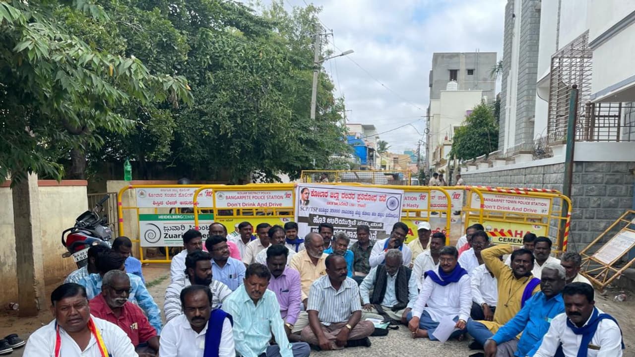 ಬಂಗಾರಪೇಟೆ : ಎಸ್ಸಿಪಿ ಮತ್ತು ಟಿಎಸ್ಪಿ ಅನುದಾನವನ್ನು ಗ್ಯಾರಂಟಿ ಯೋಜನೆಗಳಿಗೆ ಬಳಕೆ ಮಾಡುವ ಮೂಲಕ ದಲಿತರನ್ನು ಕಾಂಗ್ರೆಸ್ ಸರ್ಕಾರ ಶೋಷಣೆ ಮಾಡುತ್ತಿದ್ದು, ದಲಿತರ ಹಣವನ್ನು ದಲಿತರ ಕಲ್ಯಾಣ ಕಾರ್ಯಗಳಿಗೆ ಬಳಸಬೇಕೆಂದು ಒತ್ತಾಯಿಸಿ ಮೀಸಲು ಕ್ಷೇತ್ರದಿಂದ ಆಯ್ಕೆಯಾಗಿರುವ ಶಾಸಕ ಎಸ್.ಎನ್.ನಾರಾಯಣಸ್ವಾಮಿ ಮನೆ ಎದುರು ದಲಿತ ಸಂಘಟನೆಗಳ ಕಾರ್ಯಕರ್ತರು ಪ್ರತಿಭಟಿಸಿದರು.ಪಟ್ಟಣದ ವಿವೇಕಾನಂದ ನಗರದಲ್ಲಿರುವ ಶಾಸಕ ಎಸ್.ಎನ್.ನಾರಾಯಣಸ್ವಾಮಿ ಮನೆ ಮುಂದೆ ದಲಿತ ಸಂಘಟನೆಗಳ ಕಾರ್ಯಕರ್ತರು ಬೆಳಗ್ಗೆಯಿಂದಲೇ ಧರಣಿ ಮಾಡಿದರೂ ಶಾಸಕರು ಮಾತ್ರ ಸ್ಥಳಕ್ಕೆ ಆಗಮಿಸಿ ಪ್ರತಿಭಟನಾಕಾರರ ಮನವಿ ಆಲಿಸಲಿಲ್ಲ ಎಂದು ಪ್ರತಿಭಟನಾಕಾರರು ಆಕ್ರೋಶ ವ್ಯಕ್ತಪಡಿಸಿದರು.