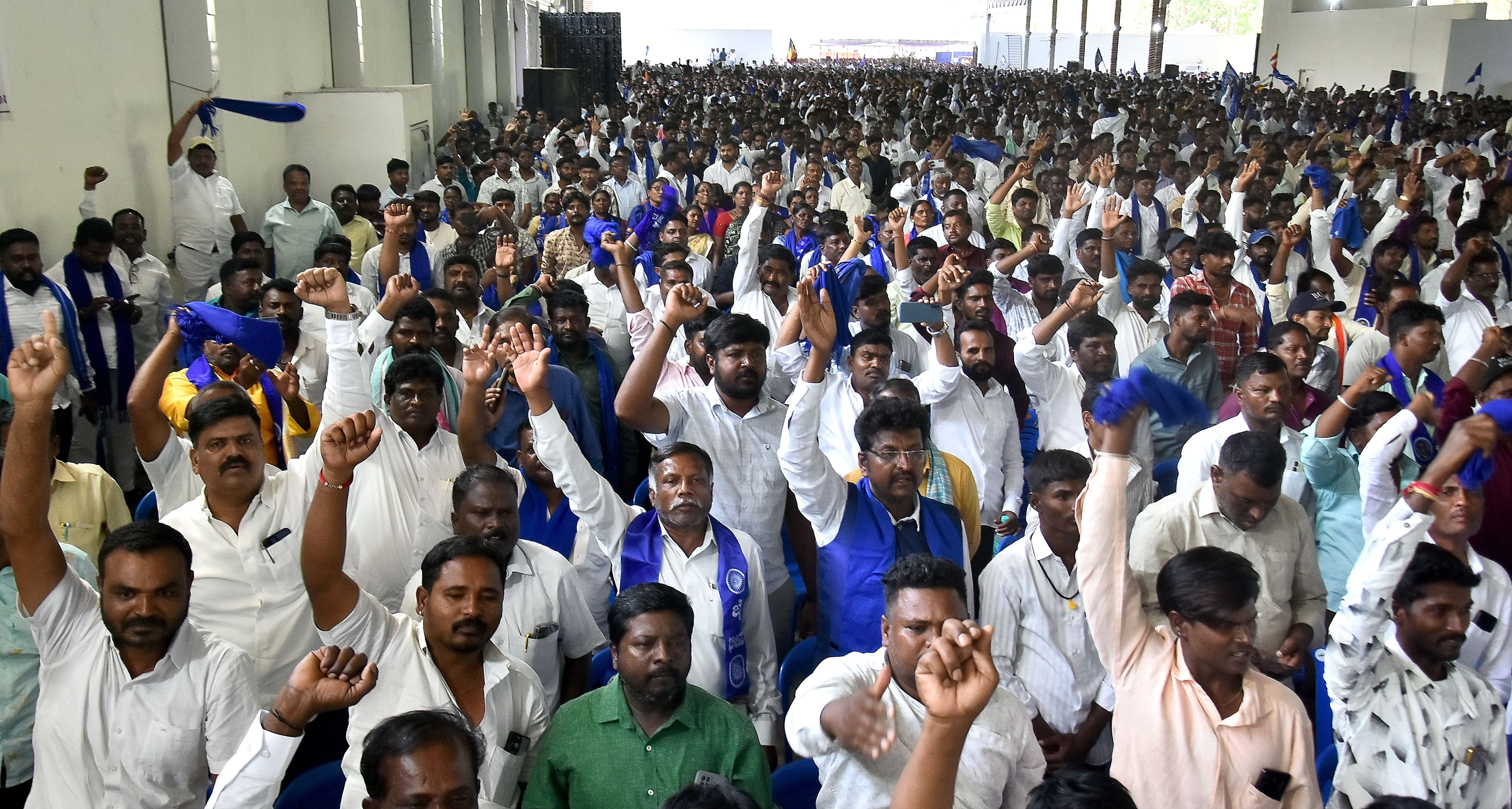 ರಾಜ್ಯದ ವಿವಿಧ ಜಿಲ್ಲೆಗಳಿಂದ ನೂರಾರು ಬಸ್ಗಳಲ್ಲಿ ಆಗಮಿಸಿದ್ದ ಸಾವಿರಾರು ಜನರು ಸ್ವಾತಂತ್ರ್ಯ ಉದ್ಯಾನದಲ್ಲಿ ಸೇರಿದ್ದರು.