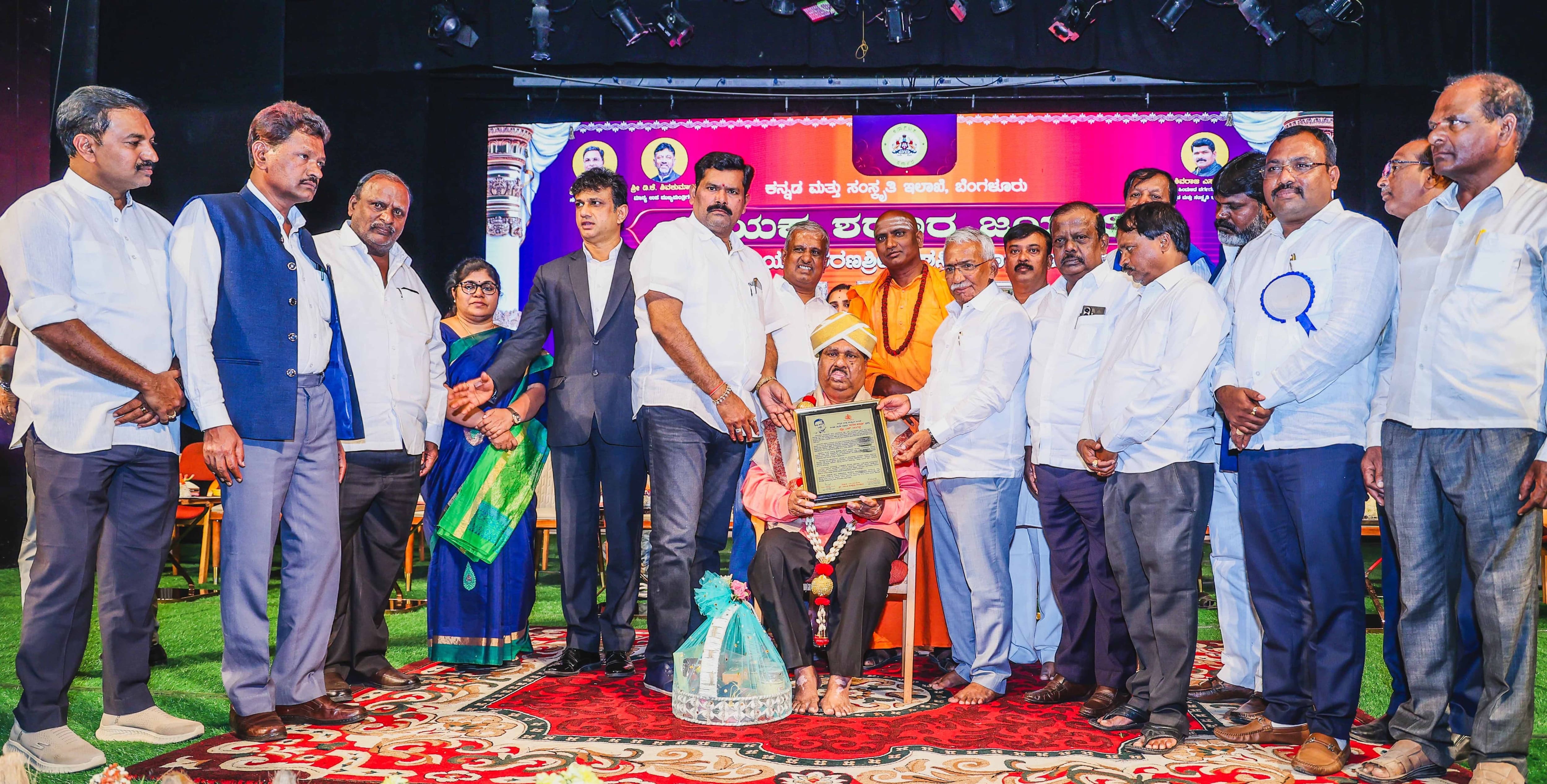 ಮಂಗಳವಾರ ಕನ್ನಡ ಮತ್ತು ಸಂಸ್ಕೃತಿ ಇಲಾಖೆ ವತಿಯಿಂದ ರವೀಂದ್ರ ಕಲಾಕ್ಷೇತ್ರದಲ್ಲಿ ಶ್ರೀ ಬಸವಹರಳಯ್ಯ ಸ್ವಾಮೀಜಿ ಅವರ ಸಾನ್ನಿಧ್ಯದಲ್ಲಿ ನಡೆದ ಕಾಯಕ ಶರಣರ ಜಯಂತಿಯಲ್ಲಿ ಪ್ರೊ.ಎಚ್.ಲಿಂಗಪ್ಪ ಅವರಿಗೆ ಕಾಯಕ ಶರಣಶ್ರೀ ಪ್ರಶಸ್ತಿ ಪ್ರದಾನ ಮಾಡಿ ಮಾತನಾಡಿದರು.