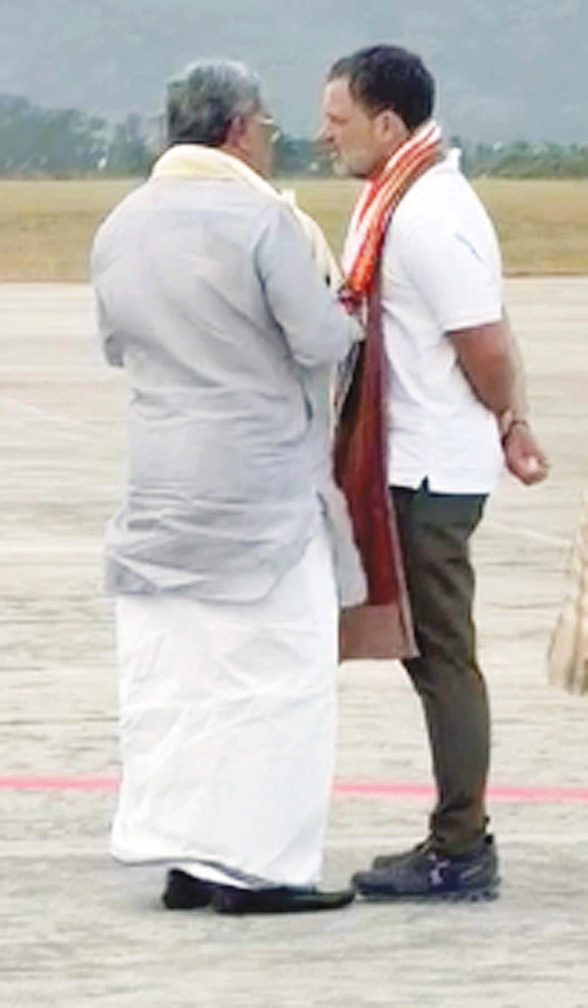 ತಮಿಳುನಾಡಿನ ಕಾರ್ಯಕ್ರಮವೊಂದಕ್ಕೆ ಆಗಮಿಸಿದ್ದ ರಾಹುಲ್ ಗಾಂಧಿ ಅವರು ಮಾರ್ಗ ಮಧ್ಯೆ ಮೈಸೂರು ವಿಮಾನ ನಿಲ್ದಾಣಕ್ಕೆ ಆಗಮಿಸಿದ್ದಾರೆ. ಈ ವೇಳೆ ಬೆಳಗ್ಗೆ ಉಭಯ ನಾಯಕರು ಕೇವಲ ಸ್ವಾಗತ ಮಾಡಿದ್ದಾರೆ. ನಂತರ ತಮಿಳುನಾಡಿನಿಂದ ಹಿಂತಿರುಗಿ, ದೆಹಲಿಗೆ ತೆರಳಲು ಮತ್ತೆ ಮೈಸೂರು ವಿಮಾನ ನಿಲ್ದಾಣಕ್ಕೆ ರಾಹುಲ್ ಆಗಮಿಸಿದ್ದಾರೆ.