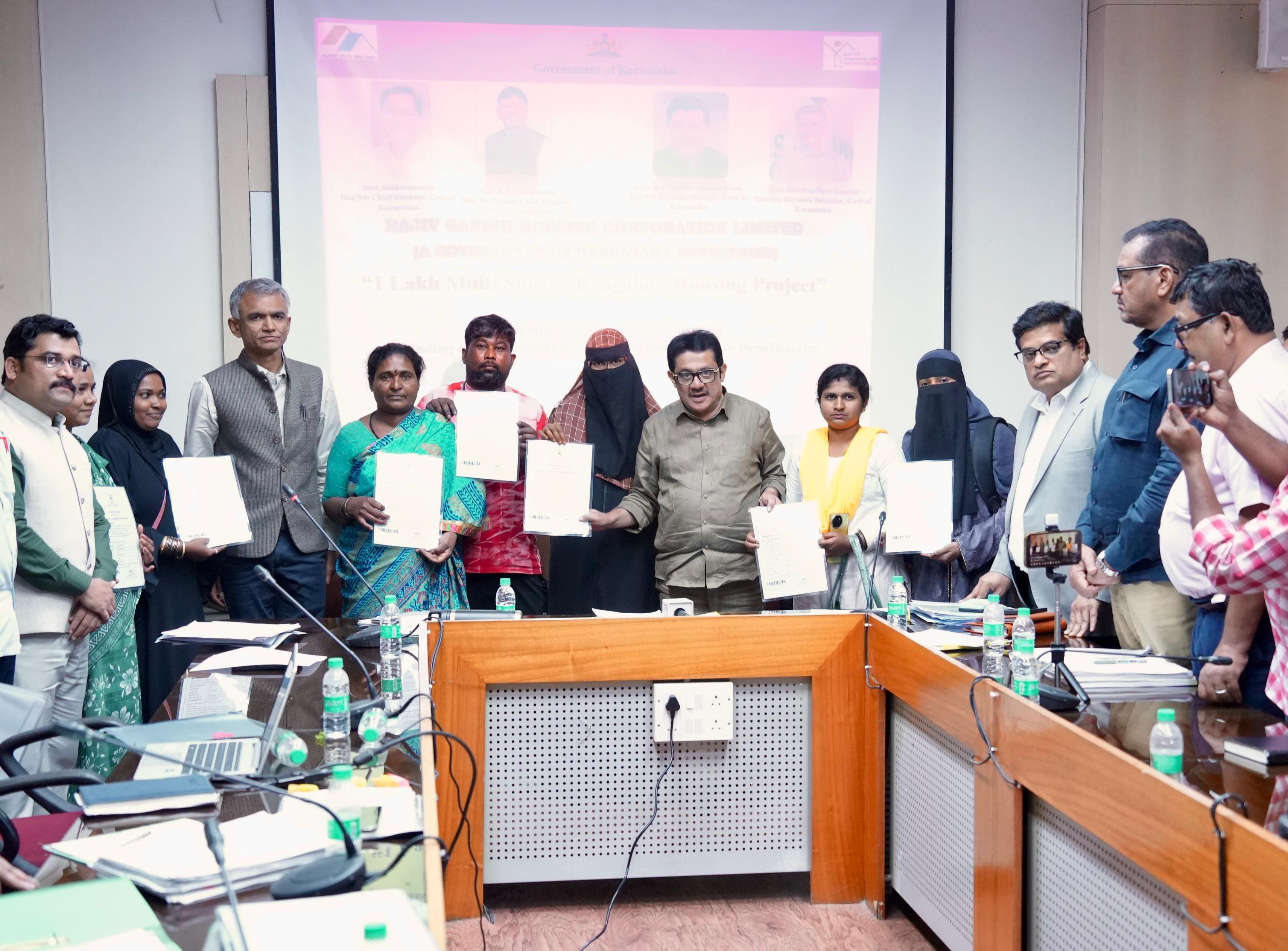 ವಿಕಾಸಸೌಧದಲ್ಲಿ ನಡೆದ ಕಾರ್ಯಕ್ರಮದಲ್ಲಿ ರಾಜೀವ್ಗಾಂಧಿ ವಸತಿ ನಿಗಮದ ಮುಖ್ಯಮಂತ್ರಿ ಅವರ 1 ಲಕ್ಷ ವಸತಿ ಯೋಜನೆಯಡಿ ನೇರವಾಗಿ ಅರ್ಜಿ ಸಲ್ಲಿಸಿದ್ದ 18 ಮಂದಿ ಹಾಗೂ ಕೋಗಿಲು ನಿರಾಶ್ರಿತರಾದ 12 ಮಂದಿಗೆ ಹಕ್ಕುಪತ್ರ ವಿತರಿಸಲಾಯಿತು.ಈ ವೇಳೆ ಸುದ್ದಿಗಾರರೊಂದಿಗೆ ಮಾತನಾಡಿದ ಜಮೀರ್ ಅಹಮದ್ಖಾನ್, ಬ್ಯಾಟರಾಯನಪುರ ವಿಧಾನಸಭೆ ಕ್ಷೇತ್ರದ ಕೋಗಿಲು ಬಂಡೆ ವ್ಯಾಪ್ತಿಯಲ್ಲಿ ಅನಧಿಕೃತವಾಗಿ ನೆಲೆಸಿದ್ದ 165 ಕುಟುಂಬಗಳನ್ನು ತೆರವುಗೊಳಿಸಲಾಗಿತ್ತು. ಅವರಲ್ಲಿ ಅರ್ಹರಿಗೆ ವಸತಿ ವ್ಯವಸ್ಥೆ ಕಲ್ಪಿಸುವುದಾಗಿ ಭರವಸೆ ನೀಡಲಾಗಿತ್ತು.