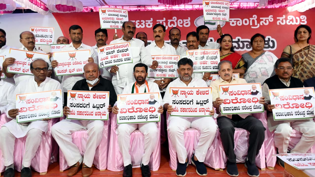 ಪ್ರತಿಭಟನಾಕಾರರನ್ನು ಉದ್ದೇಶಿಸಿ ಉಪ ಮುಖ್ಯಮಂತ್ರಿ ಡಿ.ಕೆ.ಶಿವಕುಮಾರ್ ಮಾತನಾಡಿ, ನೂತನ ಸಂಸತ್ ಭವನದಲ್ಲಿ ನಡೆದ ದಾಳಿಯ ಬಗ್ಗೆ ವಿವರಣೆ ಕೇಳಿದರೆ 146 ಸಂಸದರನ್ನು ಅಮಾನತು ಮಾಡುವ ಪ್ರಜಾಪ್ರಭುತ್ವ ವಿರೋಧಿ ನಿಲುವನ್ನು ಕೈಗೊಳ್ಳಲಾಗಿದೆ. ಕೇಂದ್ರ ಸರ್ಕಾರ ಸಂವಿಧಾನ ವಿರೋಧಿ ನೀತಿ ಅನುಸರಿಸುತ್ತಿದೆ ಎಂದು ಆಕ್ರೋಶ ವ್ಯಕ್ತಪಡಿಸಿದರು.ವಿರೋಧ ಪಕ್ಷದ ಸಂಸದರ ವಿರುದ್ಧ ದಾಳಿ, ಕೇಂದ್ರ ಸರ್ಕಾರದ ದುರಾಡಳಿತ, ಸಂವಿಧಾನ ವಿರೋಧಿ ನೀತಿ ಖಂಡಿಸಿ ಸಂಸತ್ ಆವರಣದ ಮಹಾತ್ಮ ಗಾಂಧಿ ಅವರ ಪ್ರತಿಮೆ ಮುಂದೆ ನಮ್ಮ ಸಂಸತ್ ಸದಸ್ಯರು ಪ್ರತಿಭಟನೆ ನಡೆಸಿದ್ದಾರೆ. ಕೇಂದ್ರ ಸರ್ಕಾರದ ಜನವಿರೋಧಿ ನೀತಿ ಖಂಡಿಸಿ ದೇಶದಾದ್ಯಂತ ಕಾಂಗ್ರೆಸ್ ಪಕ್ಷ ಪ್ರತಿಭಟನೆ ನಡೆಸುತ್ತಿದೆ ಎಂದು ವಿವರಿಸಿದರು.