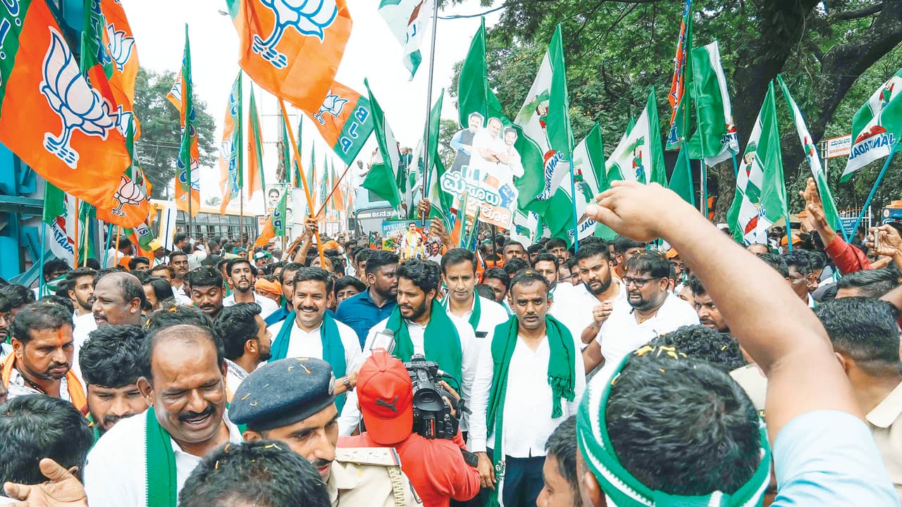ಮಂಡ್ಯದಲ್ಲಿ ನಡೆದ ಬಿಜೆಪಿ-ಜೆಡಿಎಸ್ ನೇತೃತ್ವದ ಮೈಸೂರು ಚಲೋ ಪಾದಯಾತ್ರೆಯಲ್ಲಿ ಹಾಸನ ಕ್ಷೇತ್ರದ ಪ್ರೀತಂಗೌಡ ಭಾಗವಹಿಸಿದ್ದಕ್ಕೆ ಜೆಡಿಎಸ್ ಕಾರ್ಯಕರ್ತರು ಅಸಮಾಧಾನ ಆಕ್ರೋಶ ವ್ಯಕ್ತಪಡಿಸಿದರು.