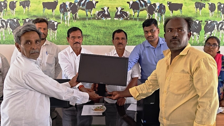 ಹಾಲಿನ ಗುಣಮಟ್ಟವನ್ನು ನಿಖರವಾಗಿ ಪರಿಶೀಲಿಸಲು ಹಾಗೂ ಸಂಘಗಳ ಆಡಳಿತ ವ್ಯವಸ್ಥೆಯನ್ನು ಡಿಜಿಟಲೀಕರಣ ಮಾಡುವ ಉದ್ದೇಶದಿಂದ ಹಾಲು ಉತ್ಪಾದಕರ ಸಹಕಾರ ಸಂಘಗಳಿಗೆ ಮಿಲ್ಕ್ ಅನಾಲೈಸರ್ಗಳು ಮತ್ತು ಕಂಪ್ಯೂಟರ್ಗಳನ್ನು ವಿತರಣೆ ಮಾಡುತ್ತಿರುವುದಾಗಿ ಚಿಮೂಲ್ ನಿರ್ದೇಶಕ ಕೆಂಚರ್ಲಹಳ್ಳಿ ಕೃಷ್ಣಾರೆಡ್ಡಿ ನುಡಿದರು.ನಗರದ ಕನಂಪಲ್ಲಿಯಲ್ಲಿನ ಶಿಬಿರ ಕಚೇರಿಯಲ್ಲಿ ಚೇಳೂರು ಕ್ಷೇತ್ರ ಹಾಗೂ ಕೈವಾರ ಕ್ಷೇತ್ರಗಳ ಹಾಲು ಉತ್ಪಾದಕರ ಸಹಕಾರ ಸಂಘಗಳಿಗೆ ಮಿಲ್ಕ್ ಅನಾಲೈಸರ್ಗಳು ಹಾಗೂ ಕಂಪ್ಯೂಟರ್ ವಿತರಣಾ ಕಾರ್ಯಕ್ರಮದಲ್ಲಿ ಕೆ.ಎನ್.ಆವುಲಪ್ಪ ಹಾಗೂ ಕೆಂಚಾರ್ಲಹಳ್ಳಿ ಕೆ.ಎನ್.ಕೃಷ್ಣಾರೆಡ್ಡಿ ಭಾಗವಹಿಸಿ ಕೈವಾರ ಕ್ಷೇತ್ರದಲ್ಲಿನ 18 ಸಂಘಗಳಿಗೆ ಹಾಗೂ ಚೇಳೂರು ಕ್ಷೇತ್ರದಲ್ಲಿನ 12 ಸಂಘಗಳಿಗೆ ಮಿಲ್ಕ್ ಅನಾಲೈಸರ್ಗಳು ಮತ್ತು ಕಂಪ್ಯೂಟರ್ಗಳನ್ನು ವಿತರಿಸಿ ಶುಭಕೋರಿದರು.